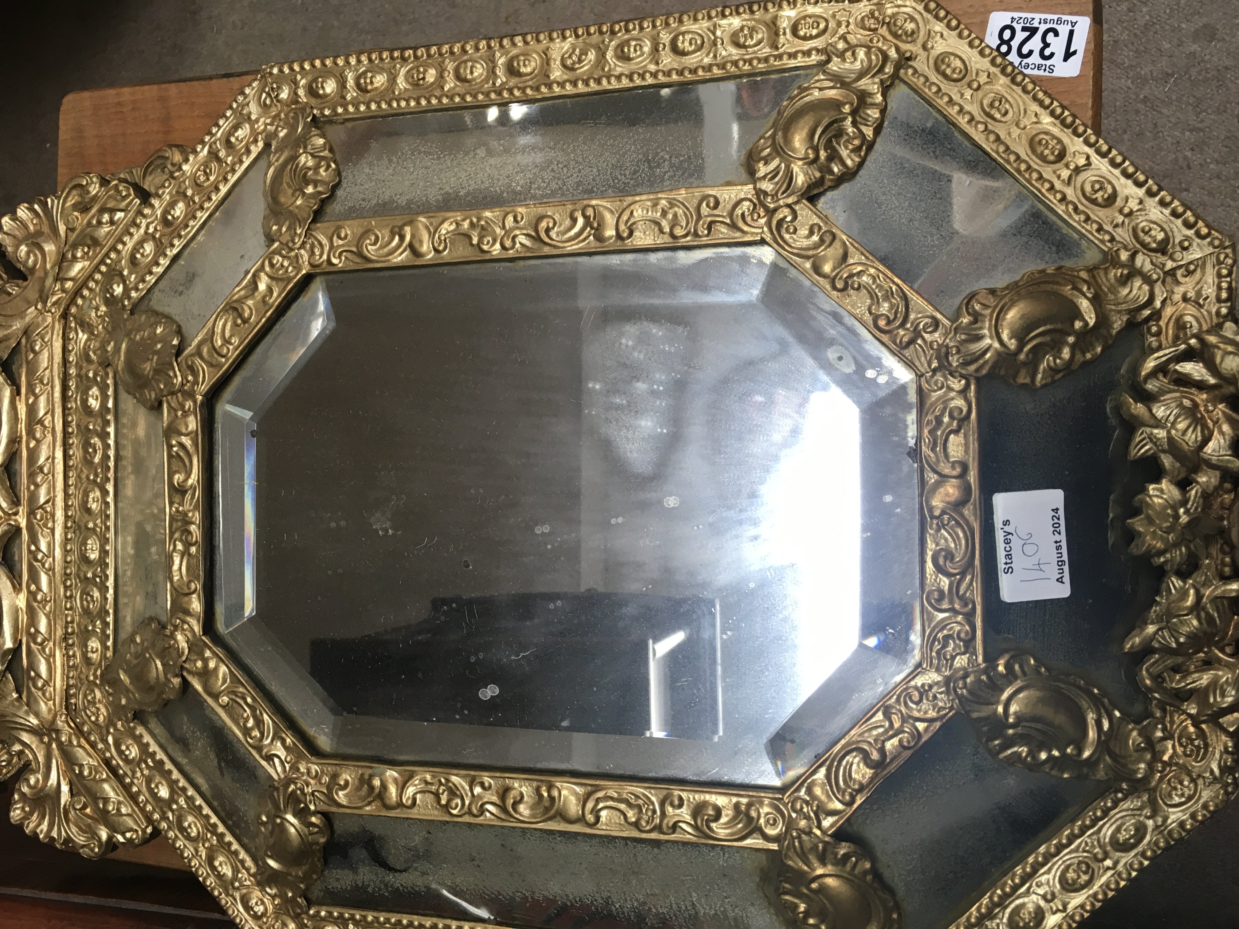 A pair of classical gilt wall mirrors and other wall mirror with bevelled edge .