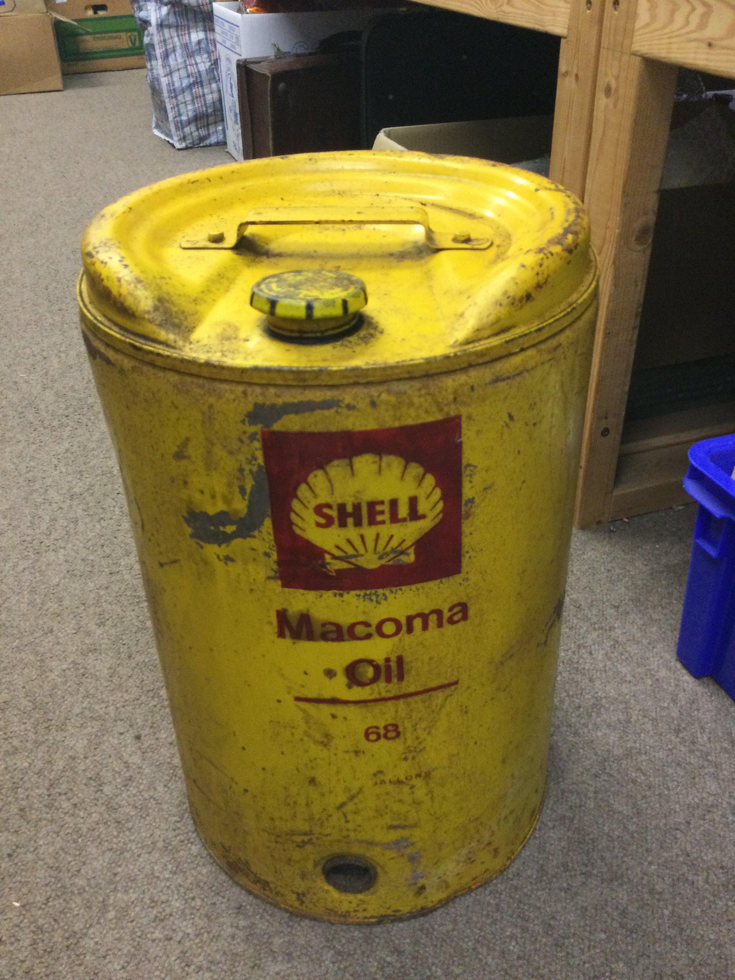 A vintage Shell 5 gallon drum of oil Macoma. NO RESERVE