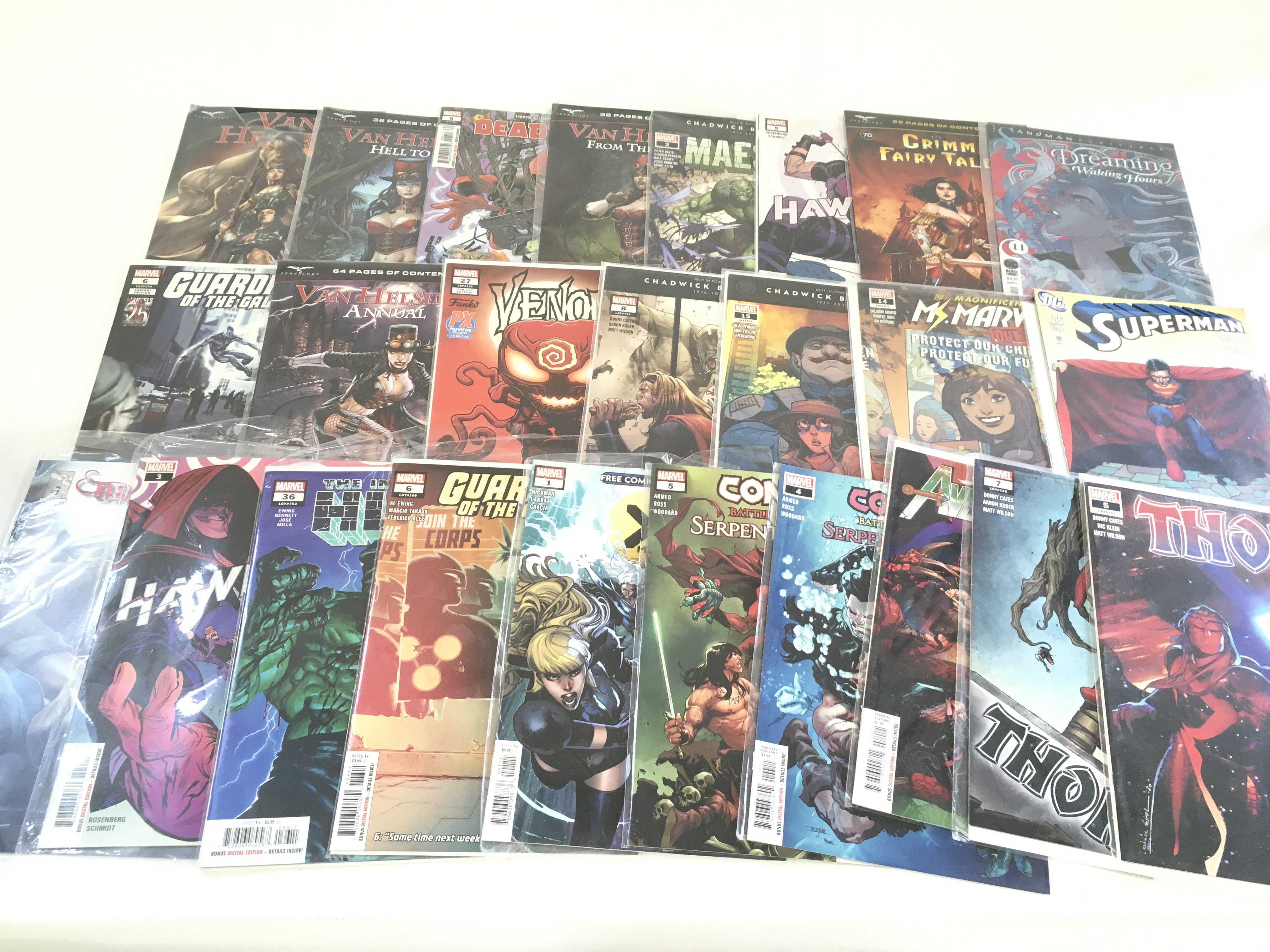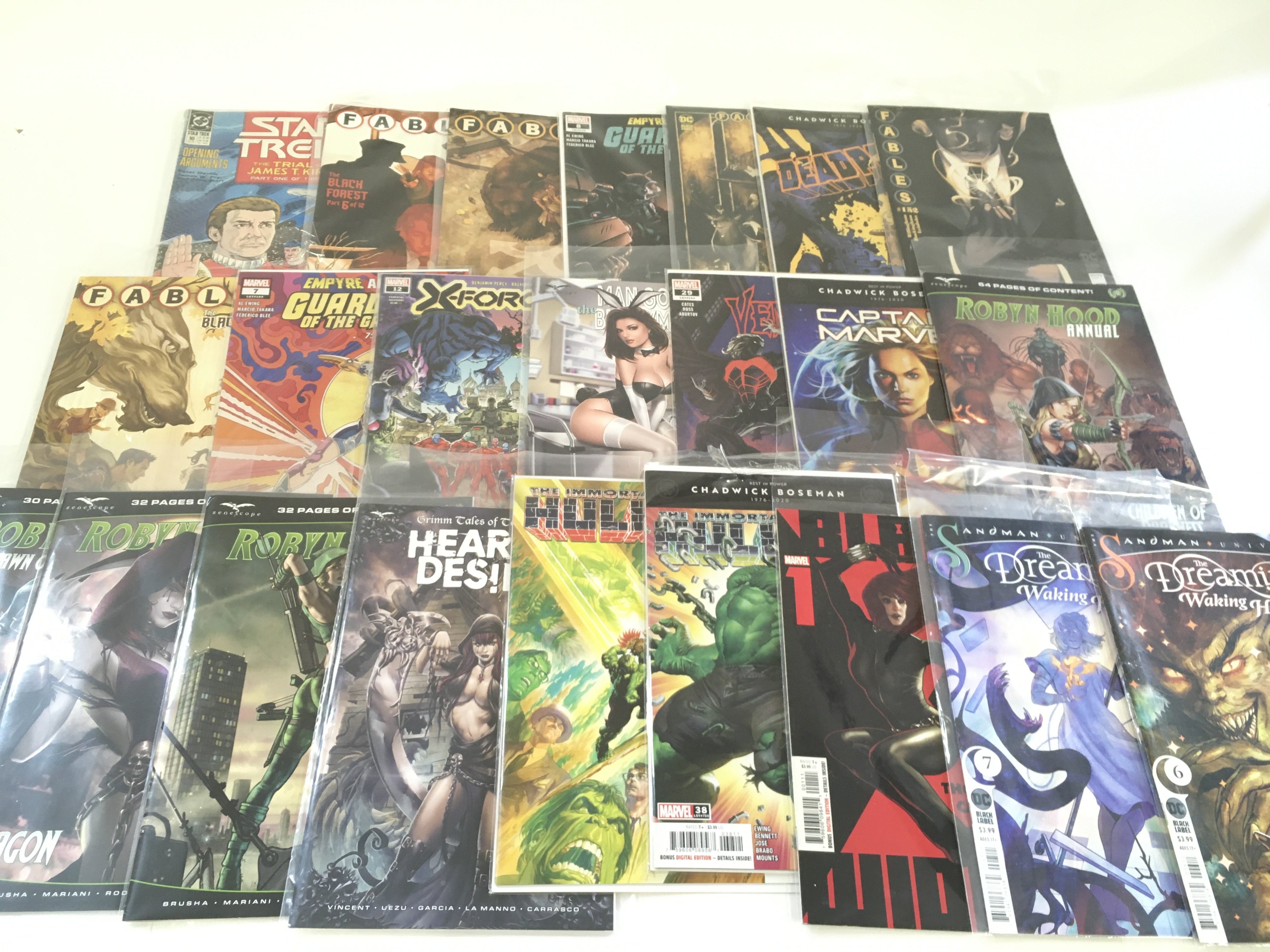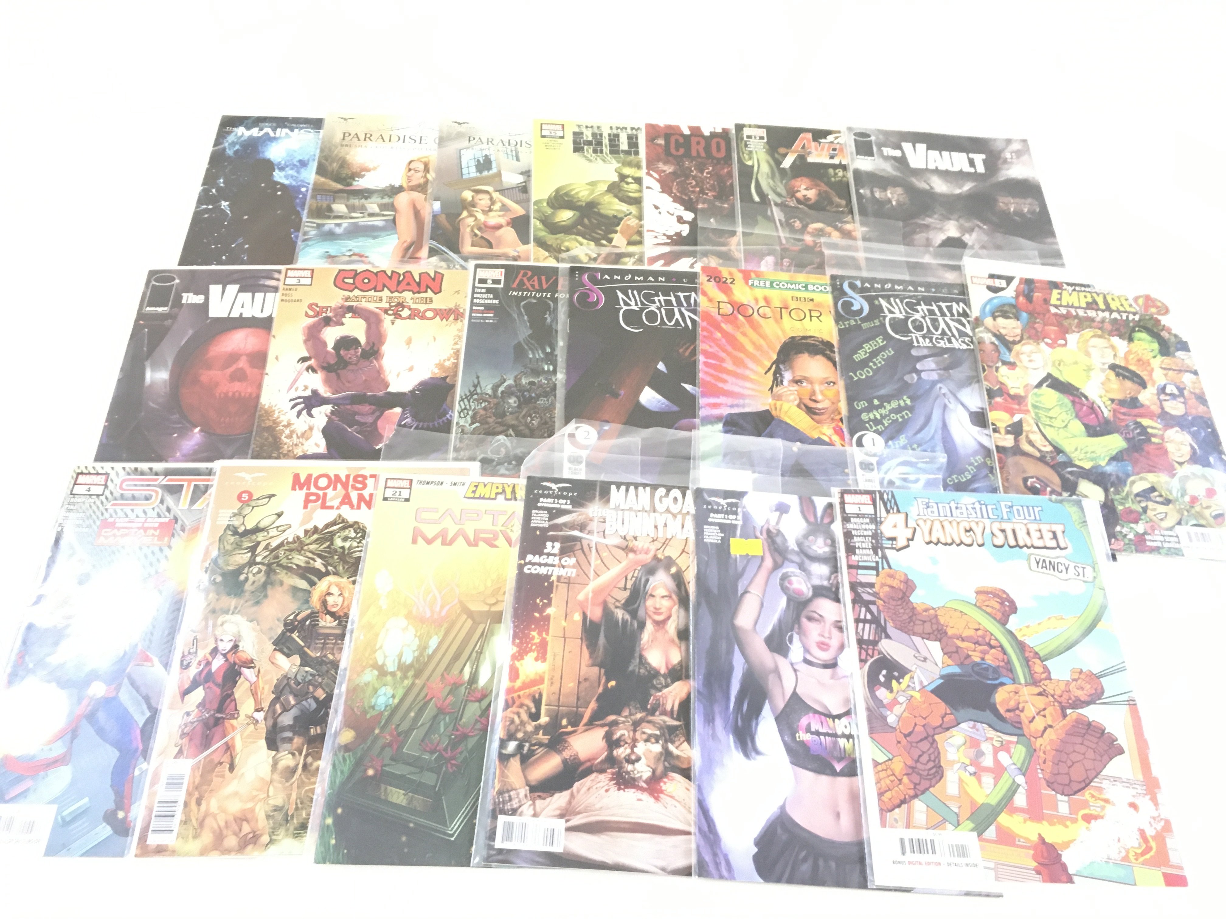 A box containing approximately 250 comics. Various titles to include Marvel and DC. no Reserve.