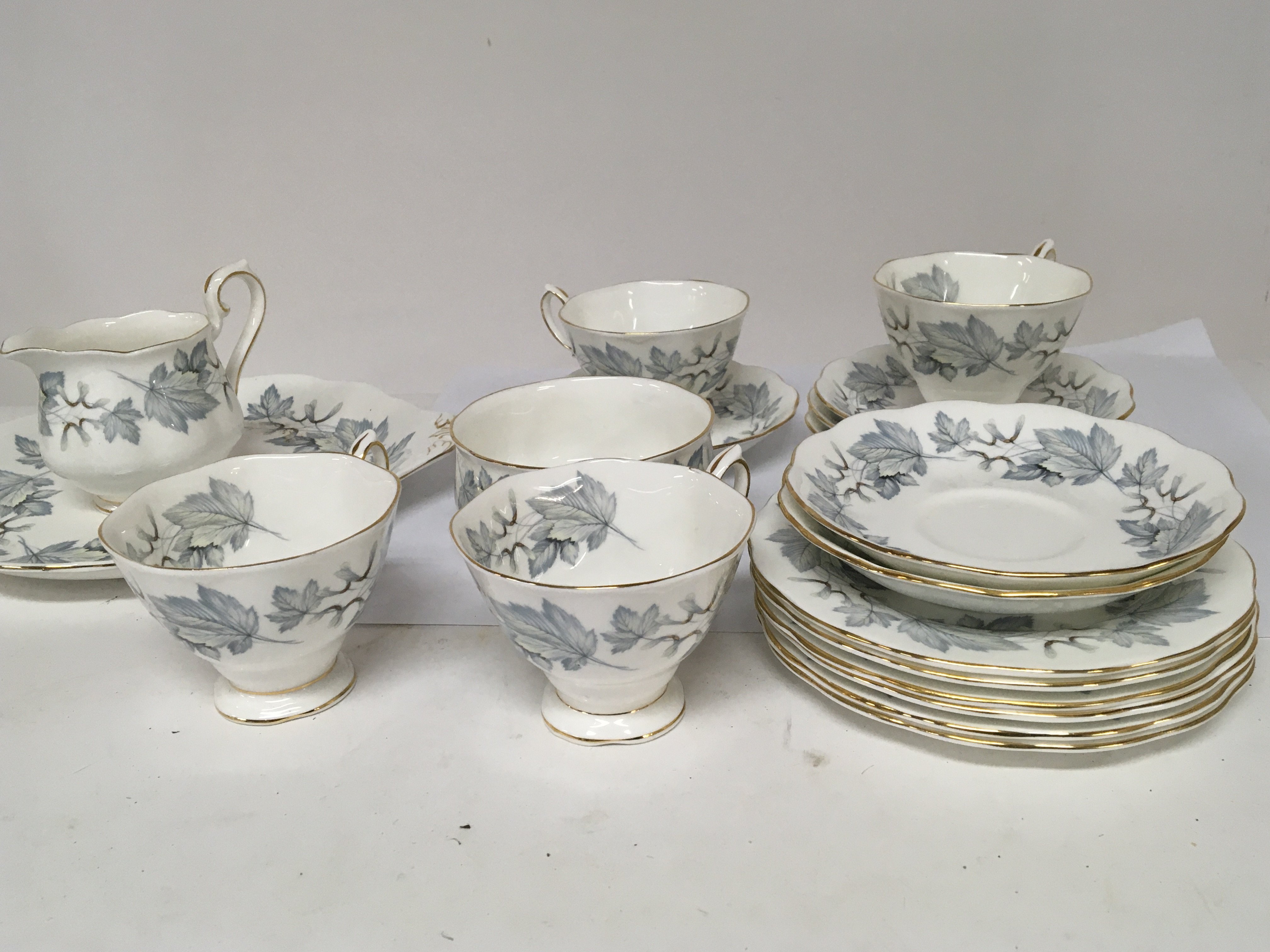 A Royal Albert English Porcelain Bone China part tea set Silver Maple pattern four cups cream jug plates no obvious damage. NO RESERVE