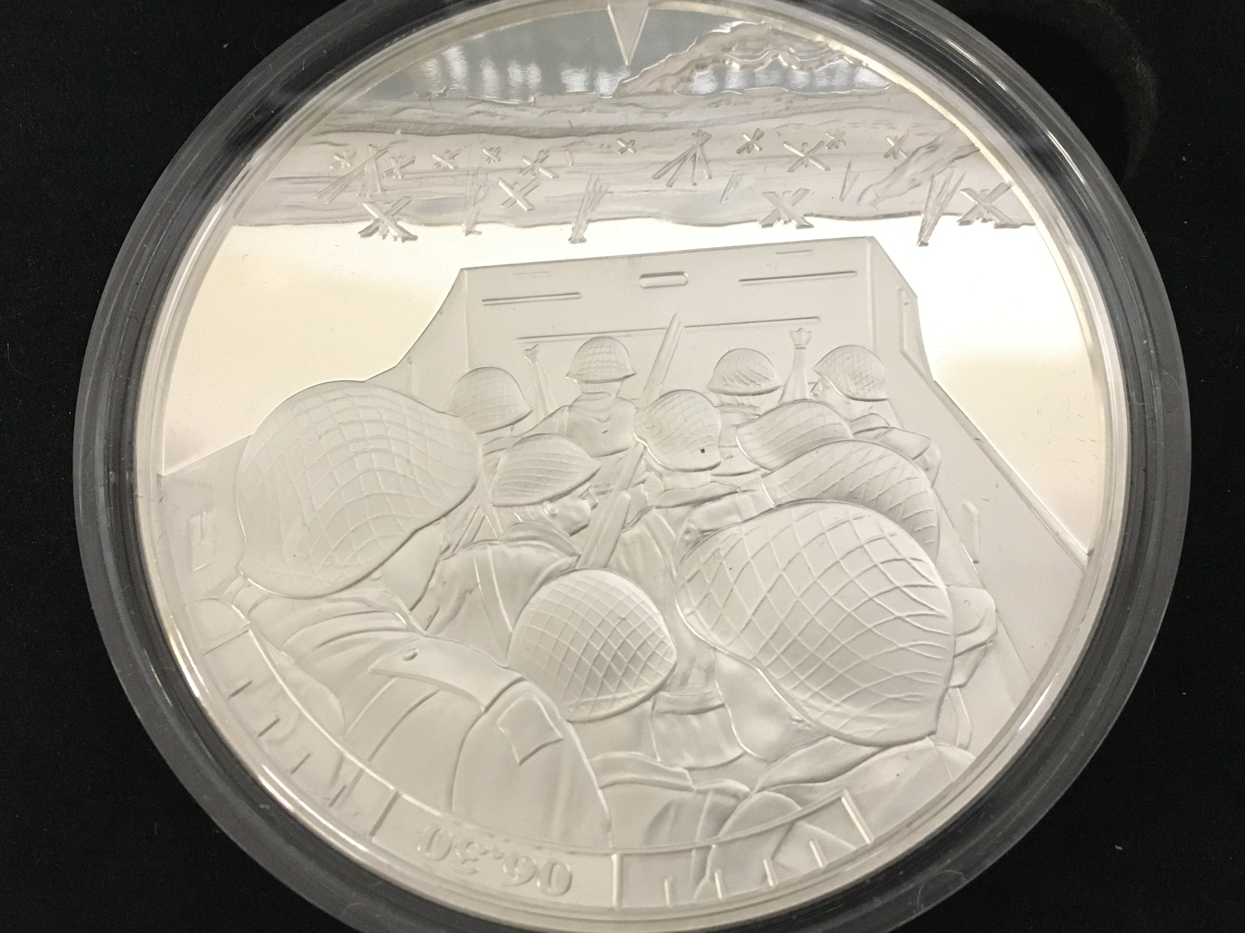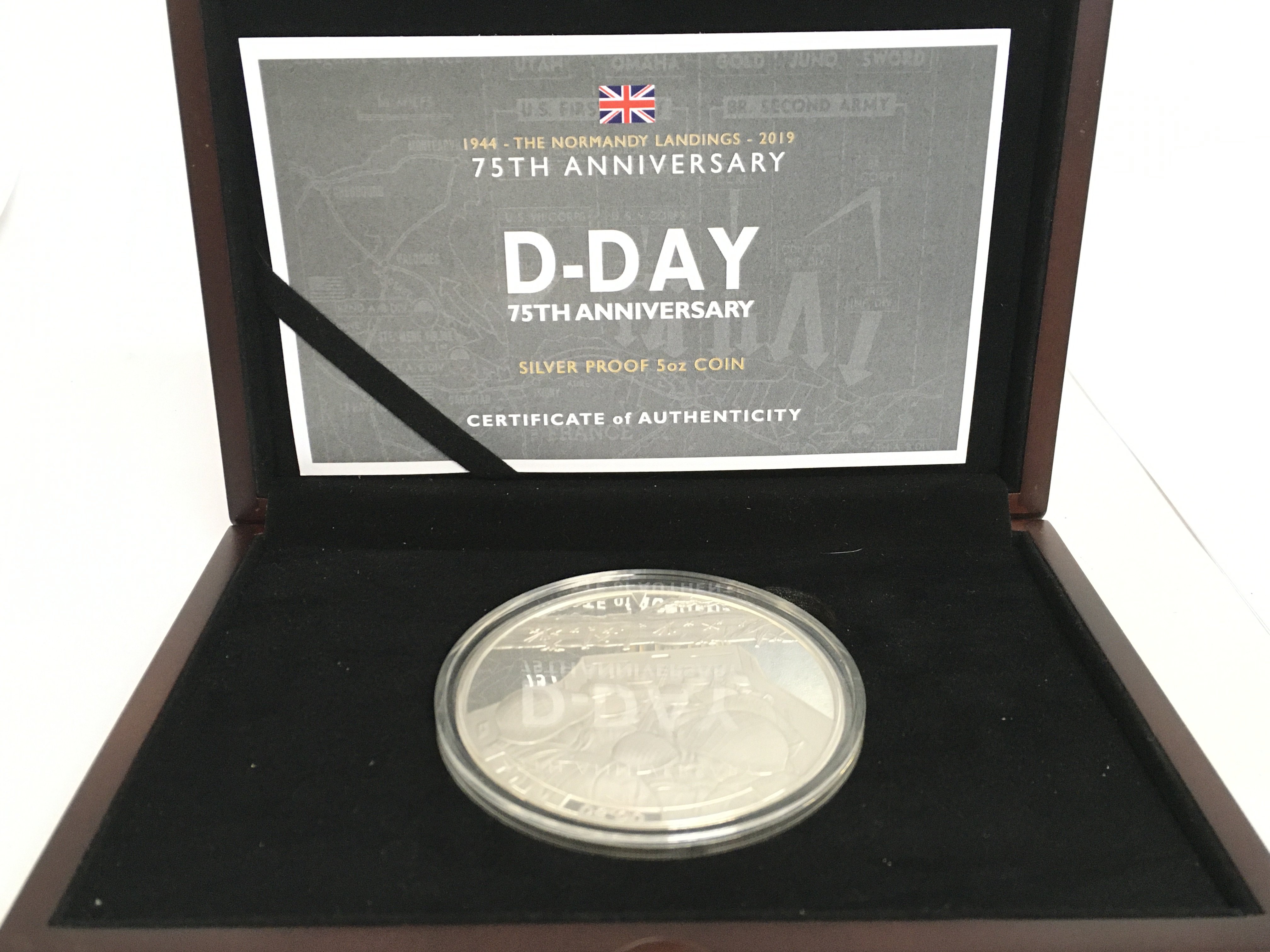 A 2019 D-Day 75th Anniversary silver proof 5oz coin. Postage category B