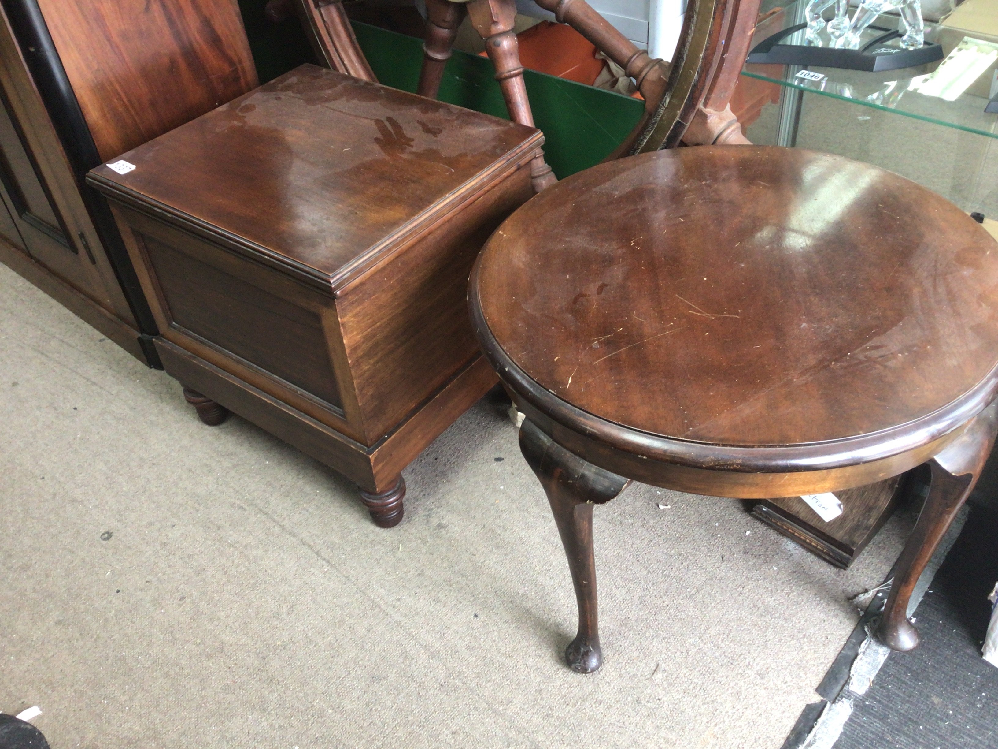 WITHDRAWN - A Victorian commode with a hinged seat and a mahogany occasional table with a circular top.(2) NO RESERVE
