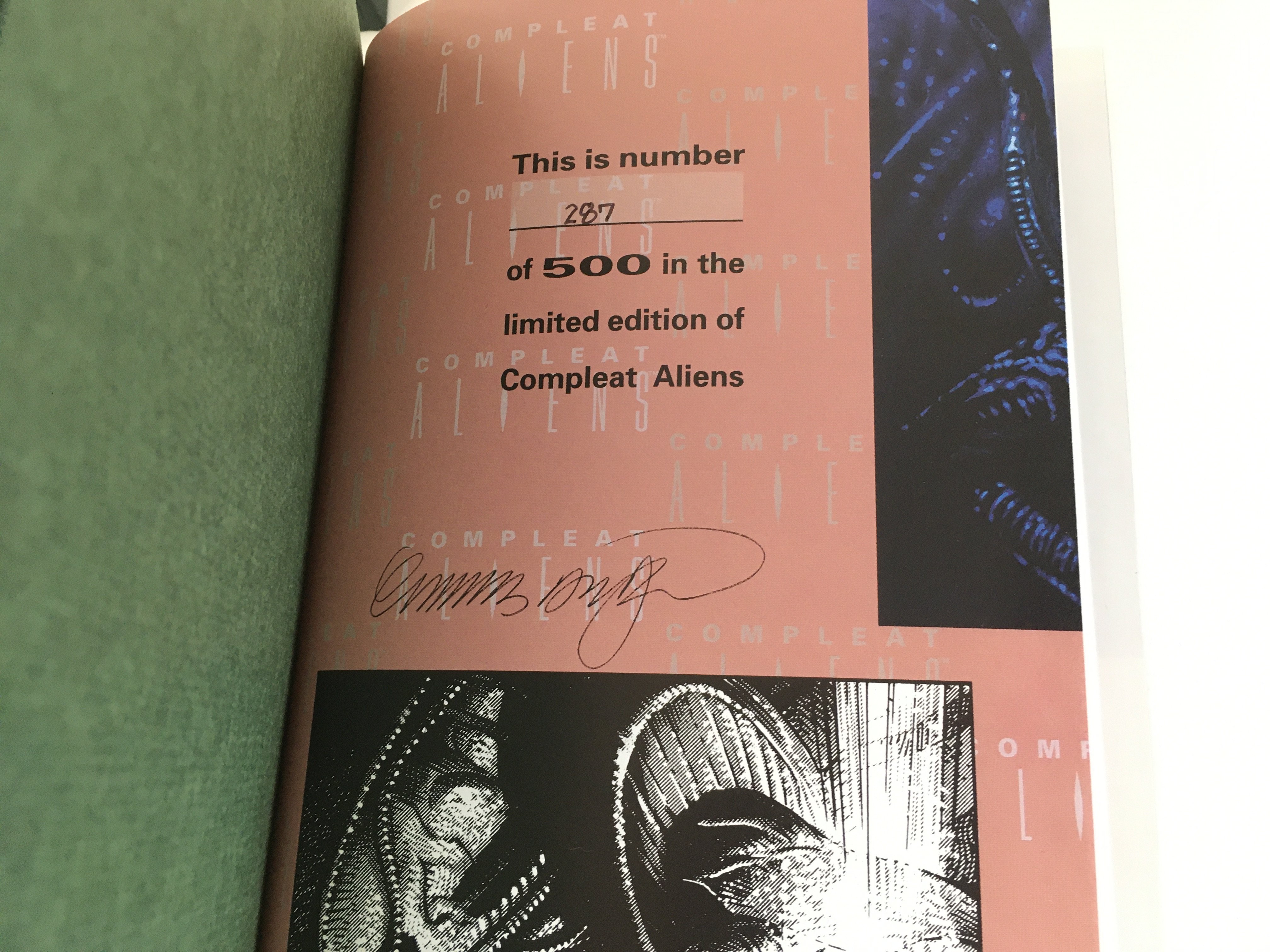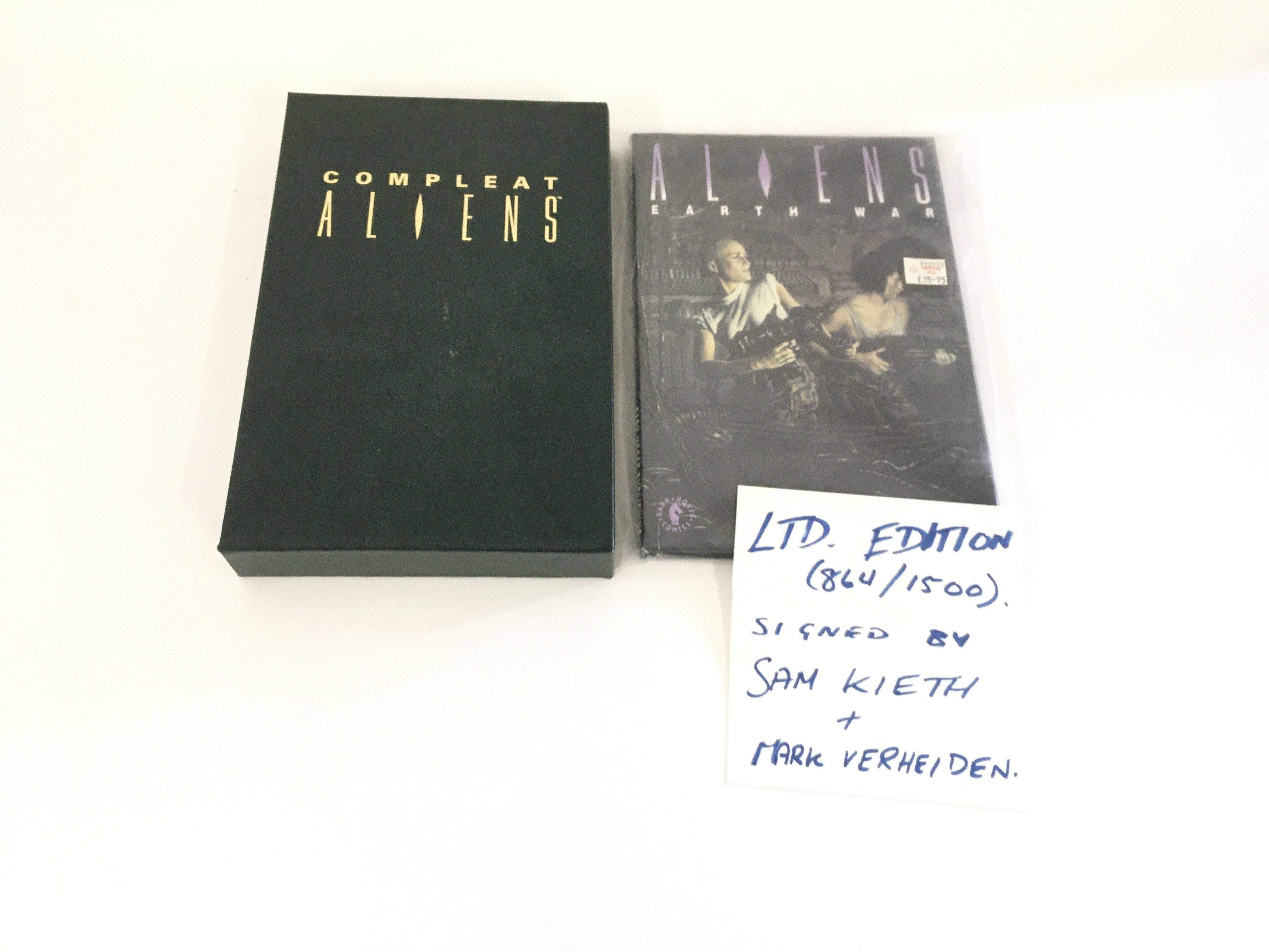 A Signed limited edition Compleat Aliens book, number 287 of 500. Also a signed limited edition Aliens Earth War, number 864 of 1500. No reserve.