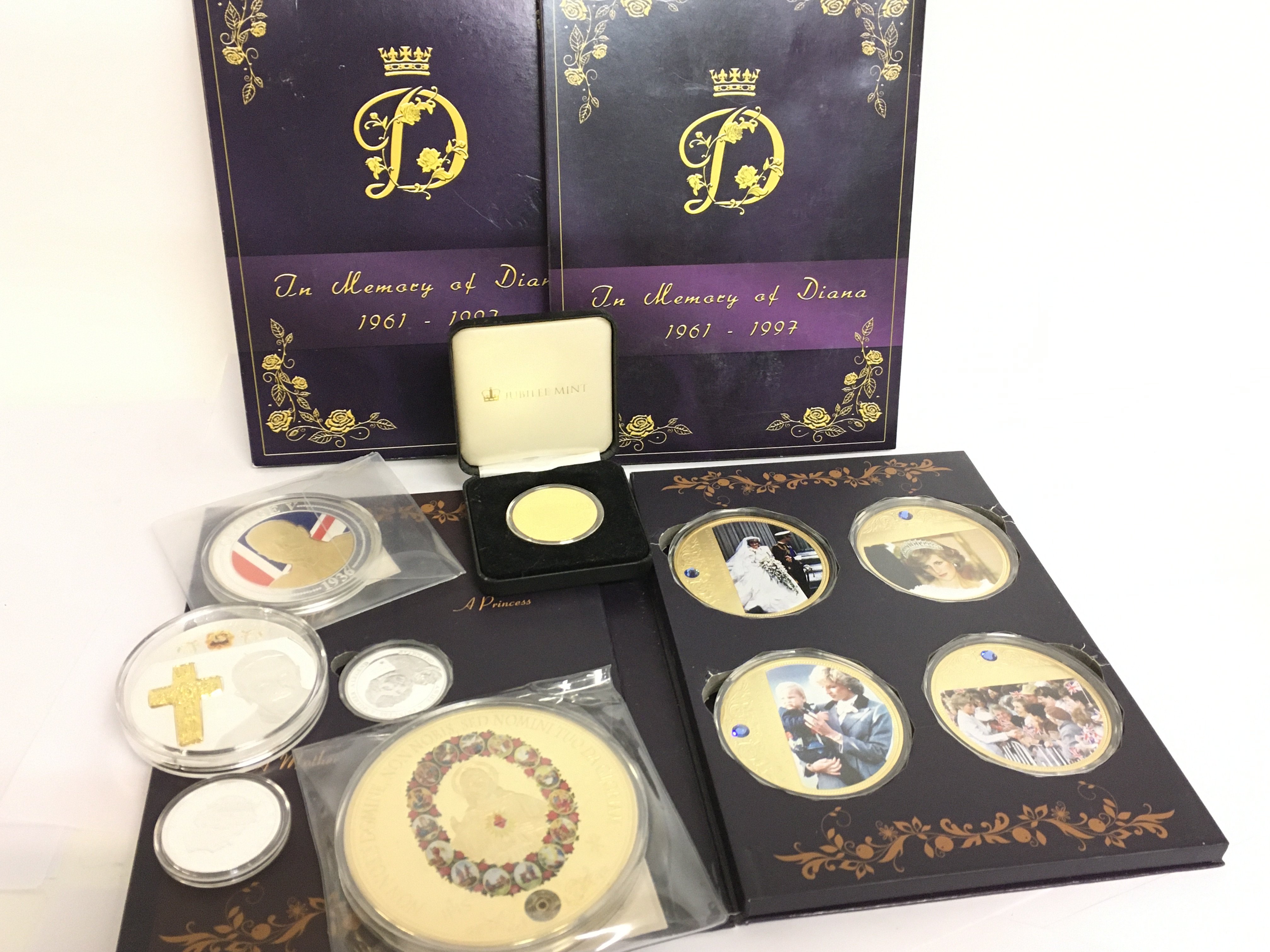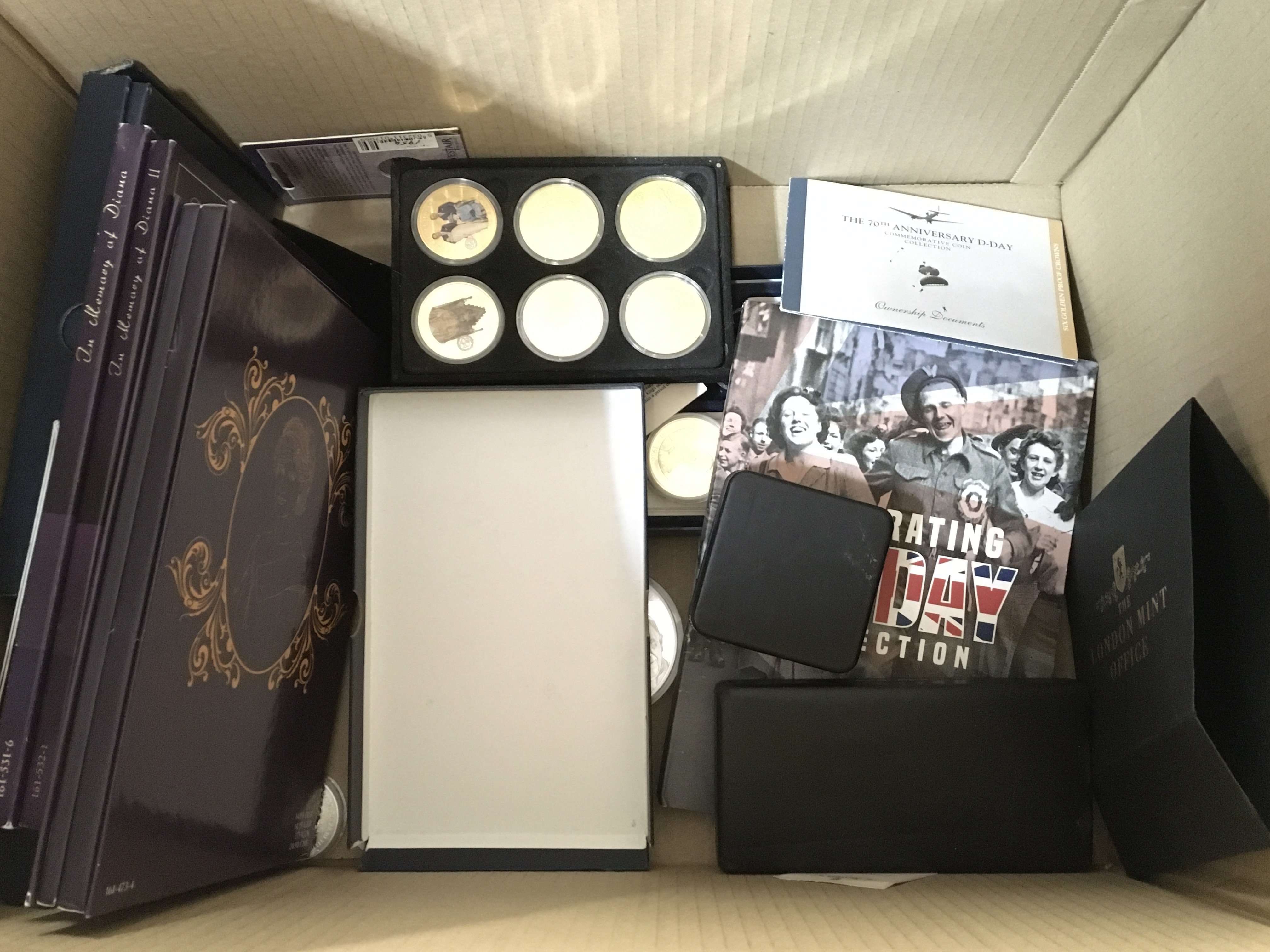 A collection of gold plated and other coin sets including the Memory of Diana 1961-1997 sets, 2014 crowns, VE-Day collection etc. Postage category C
