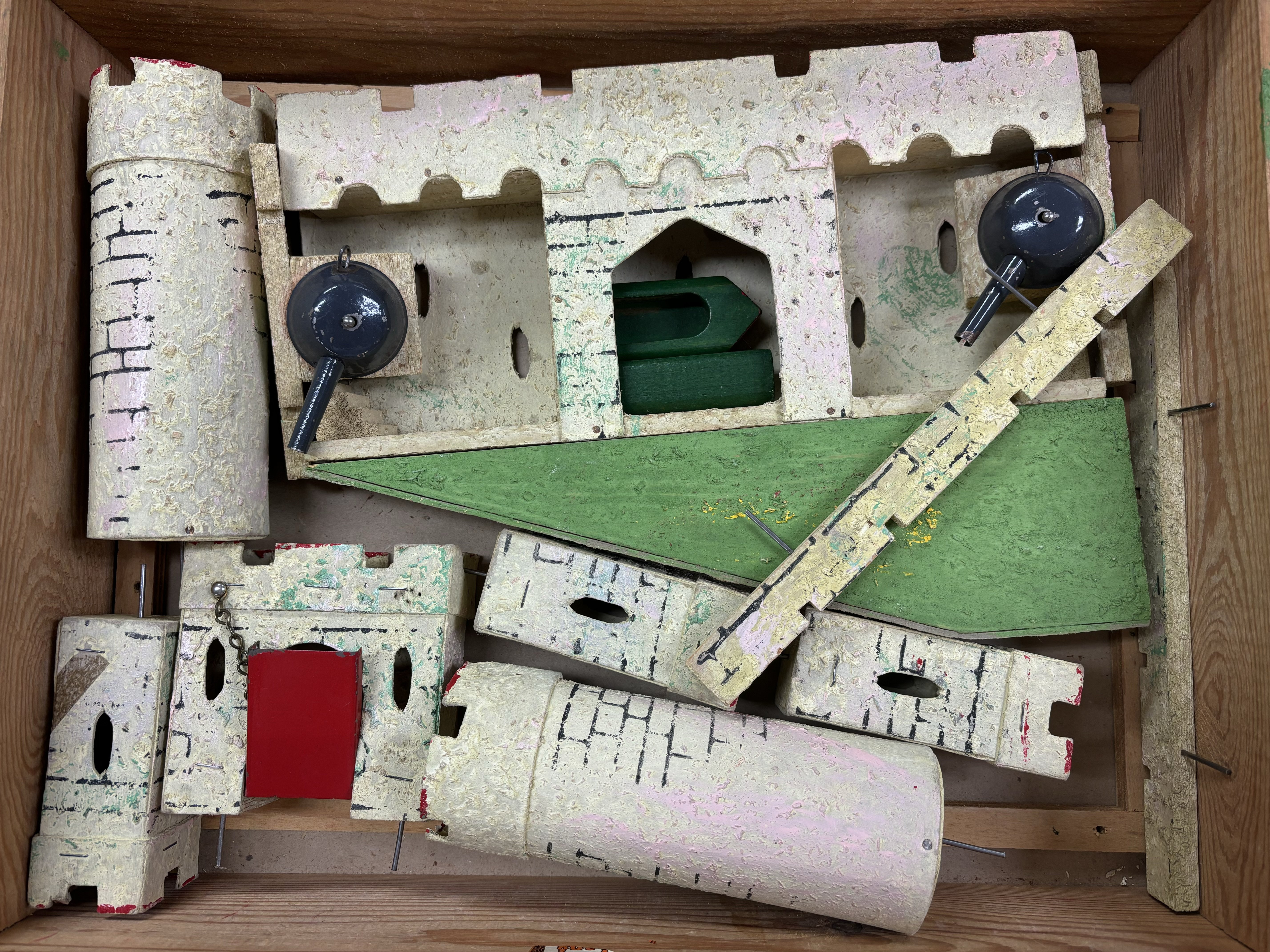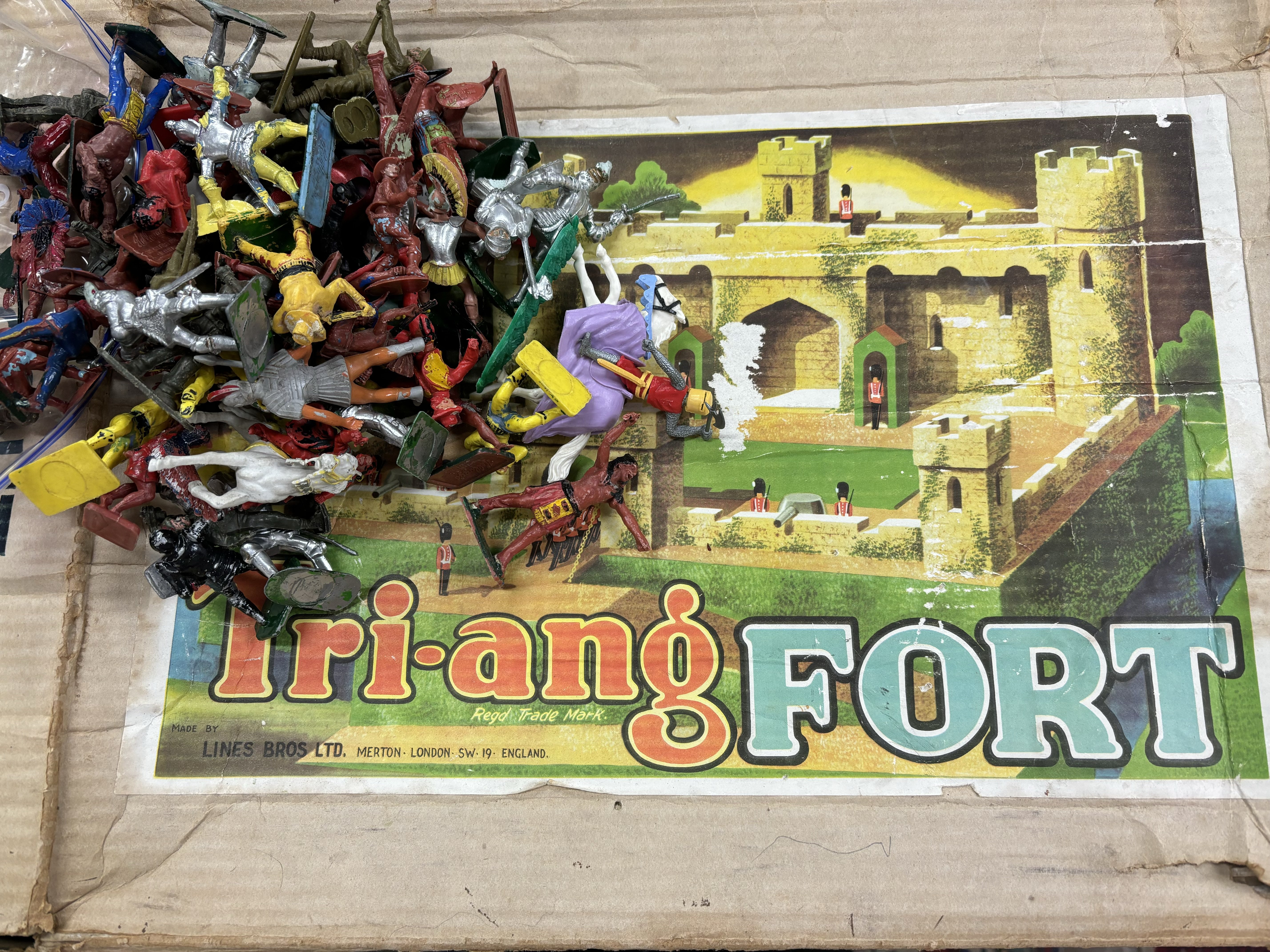 A boxed Triang fort together with a collection of plastic toy soldiers