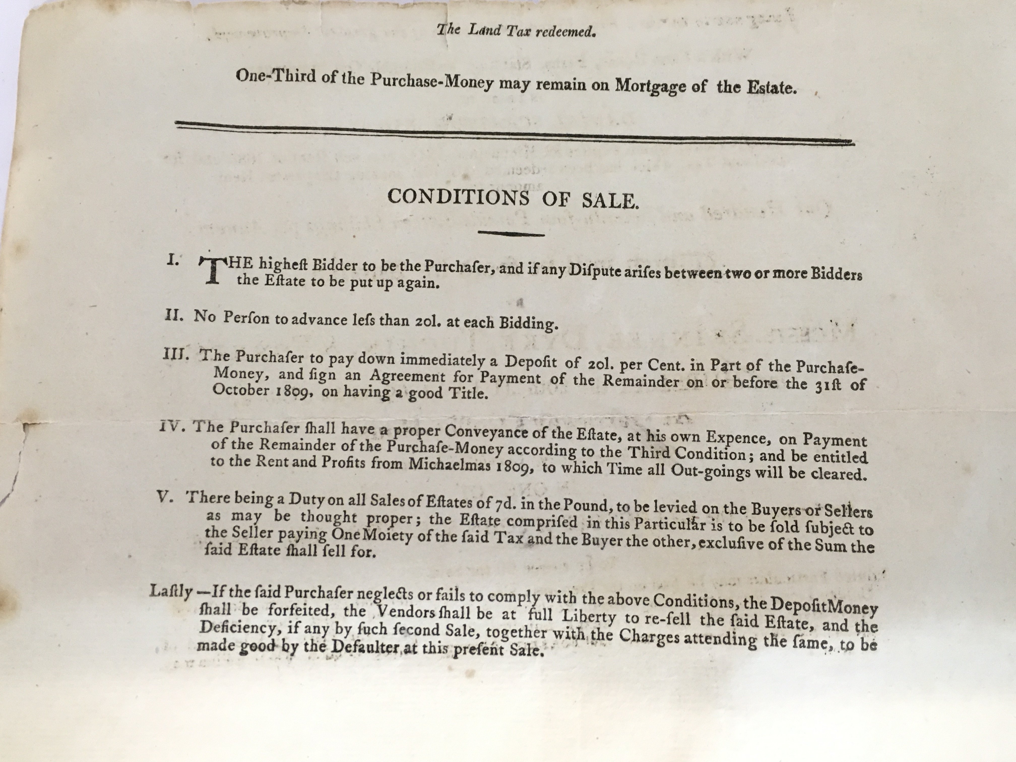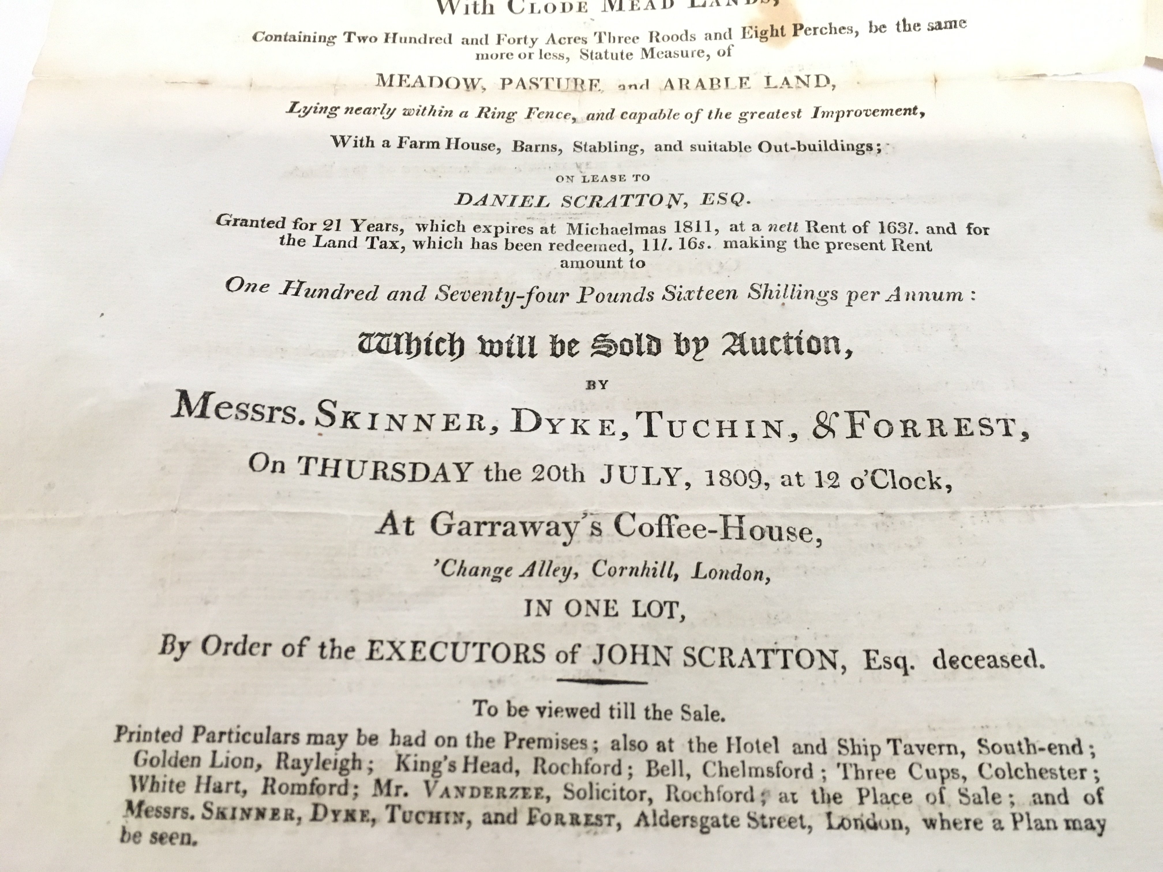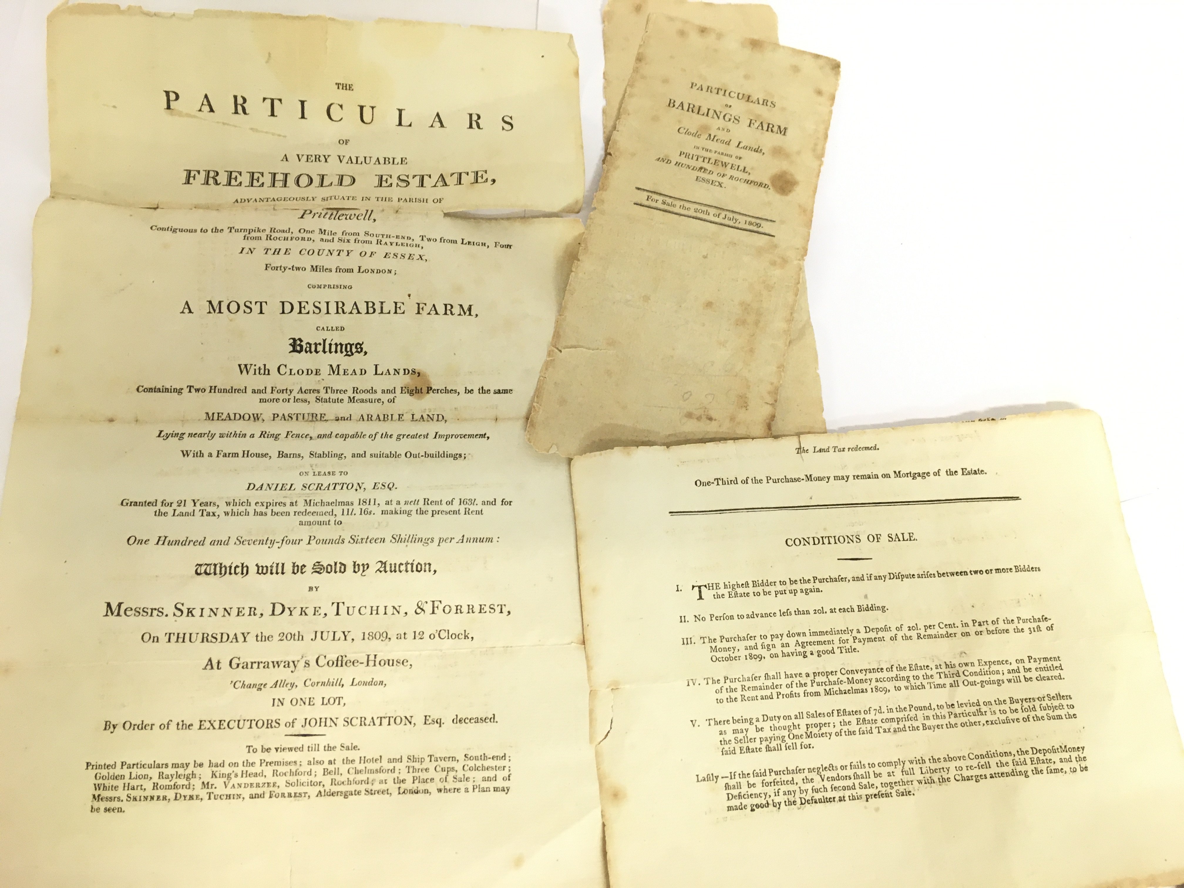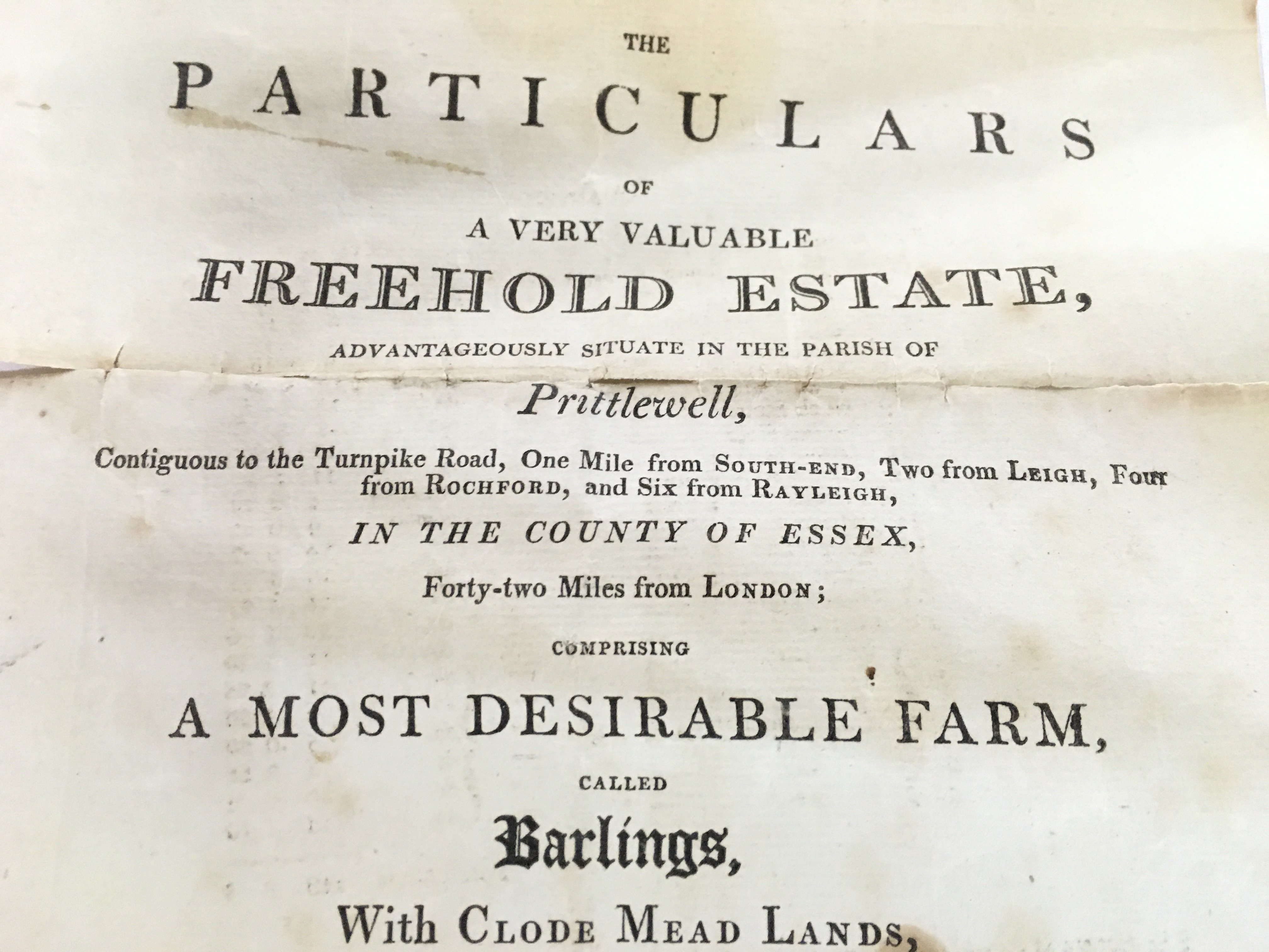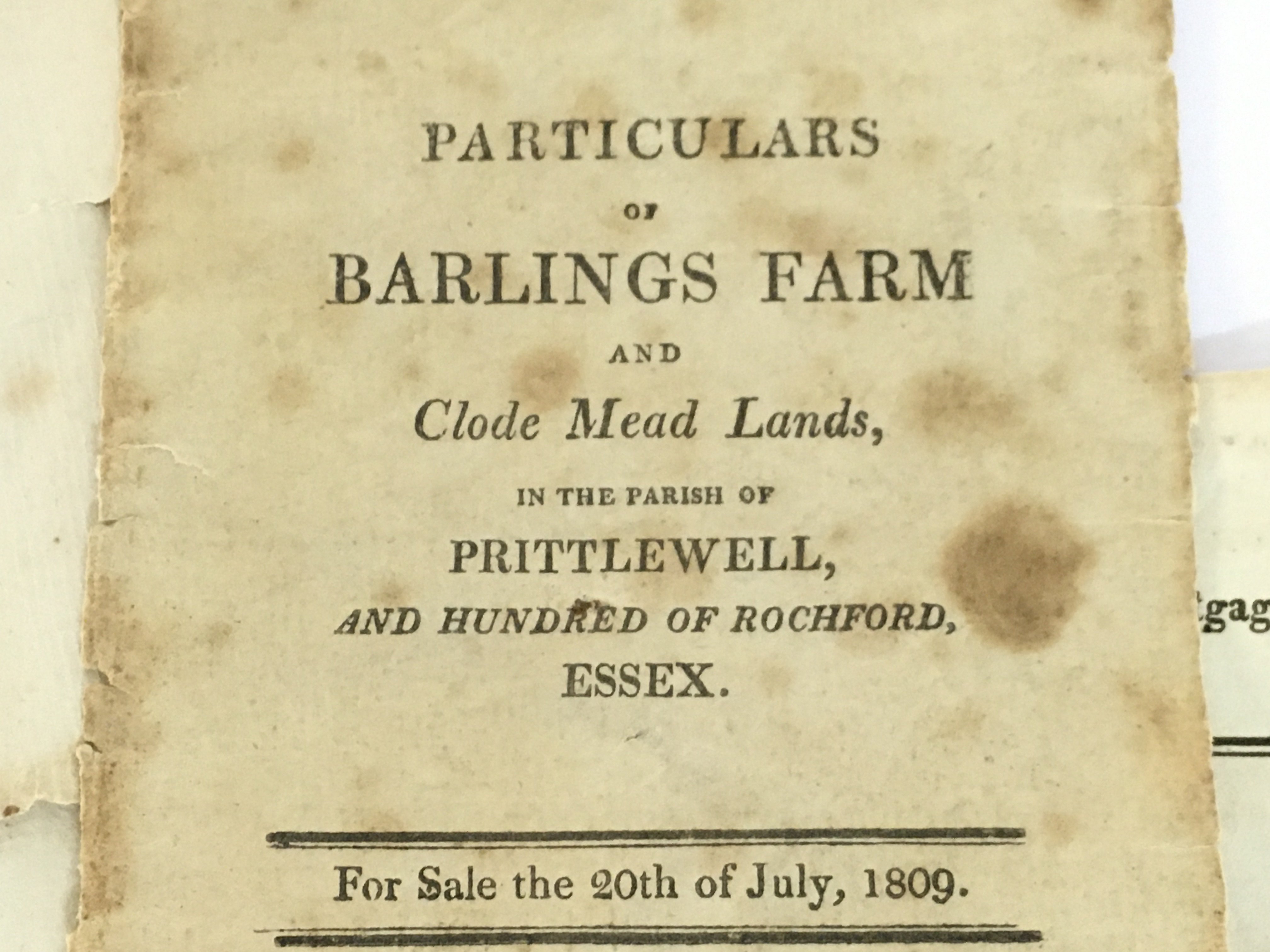 An early 19th century Local history Auction sale sheet of a farm called Barlings in Prittlewell. Postage category A
