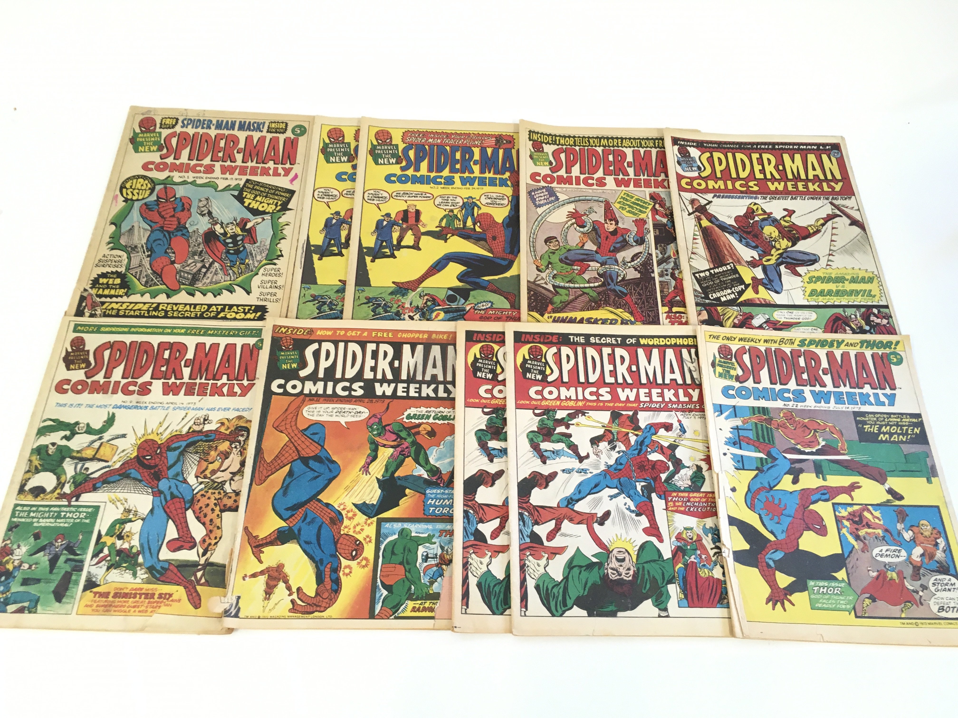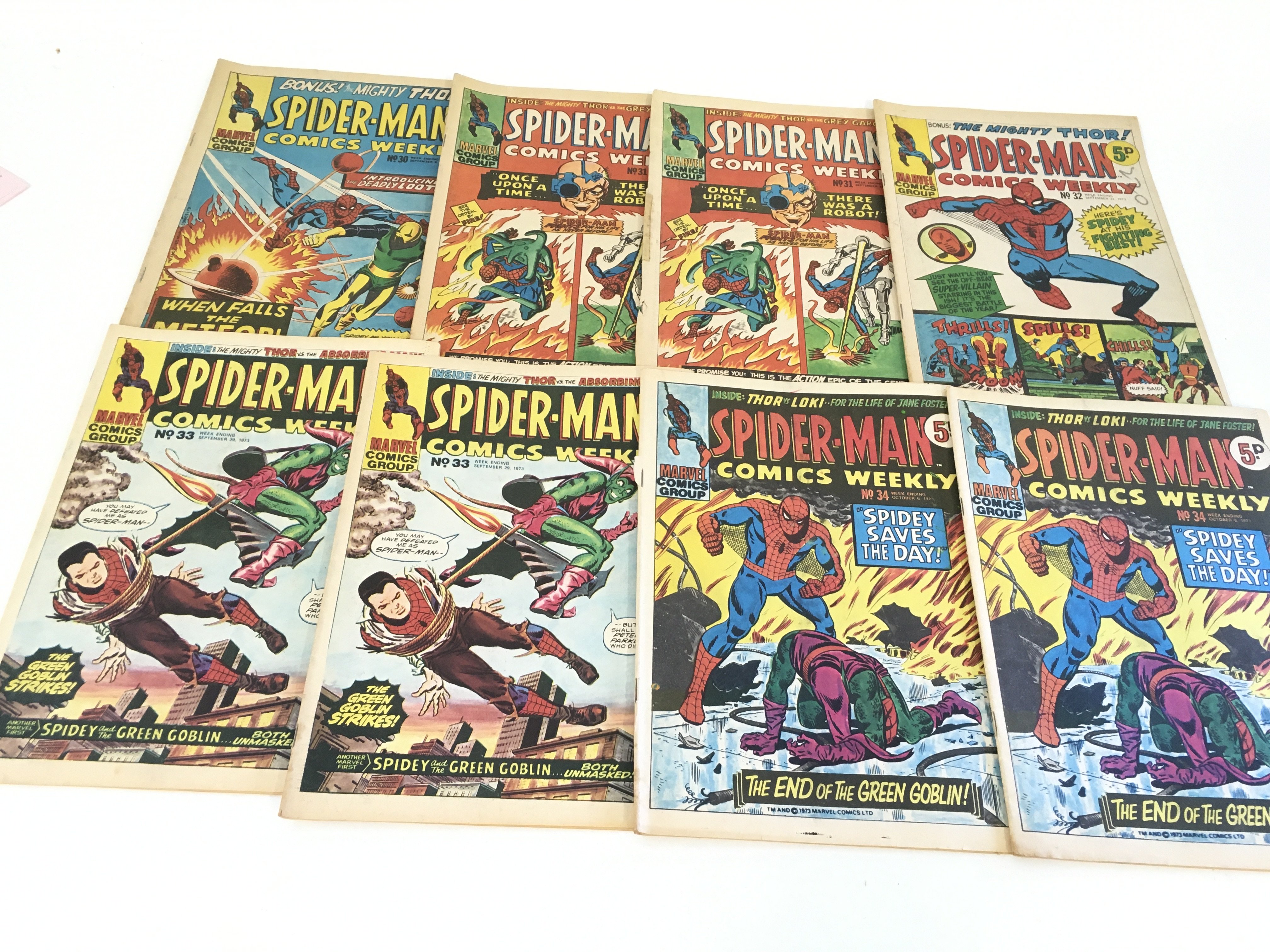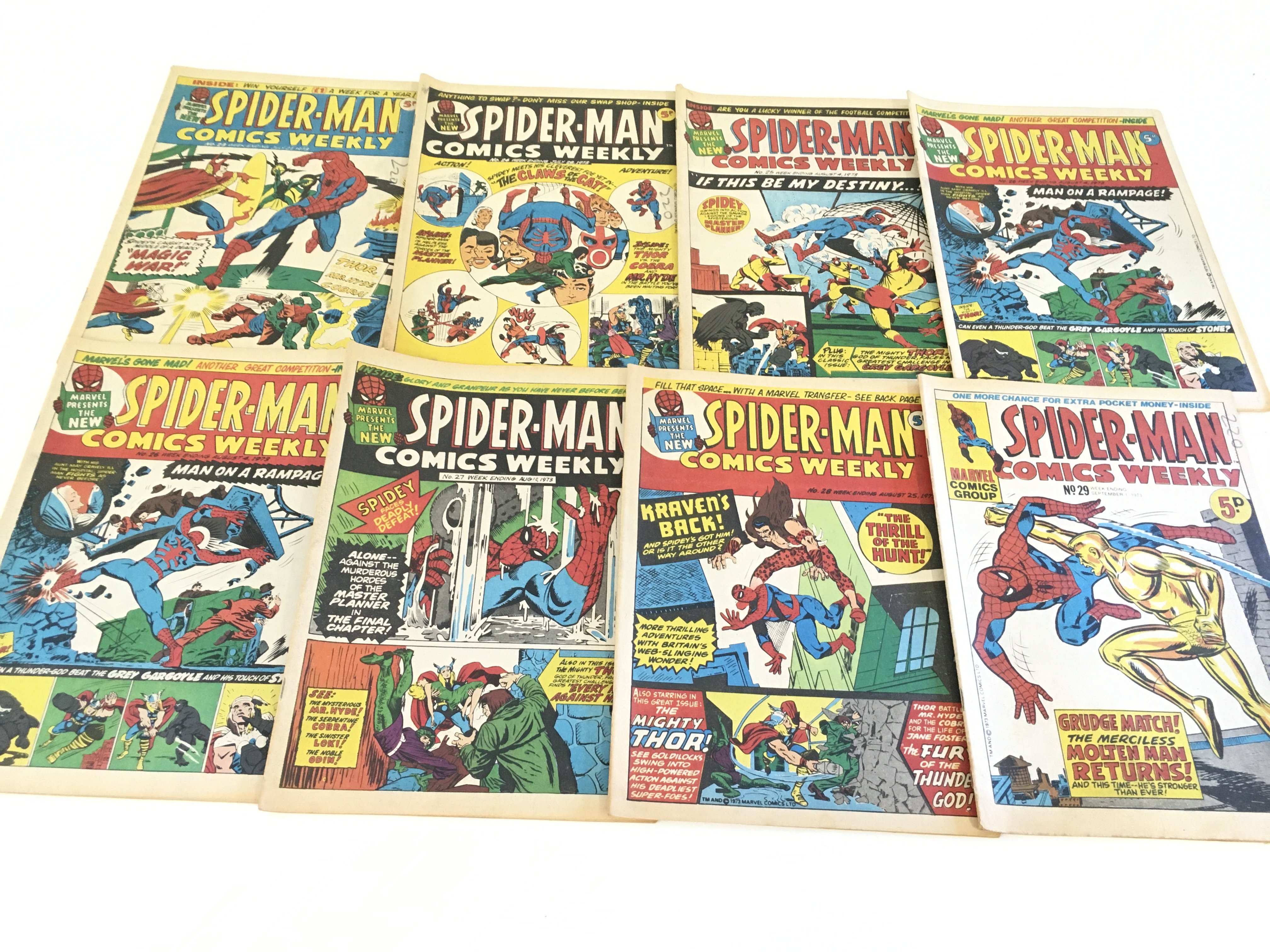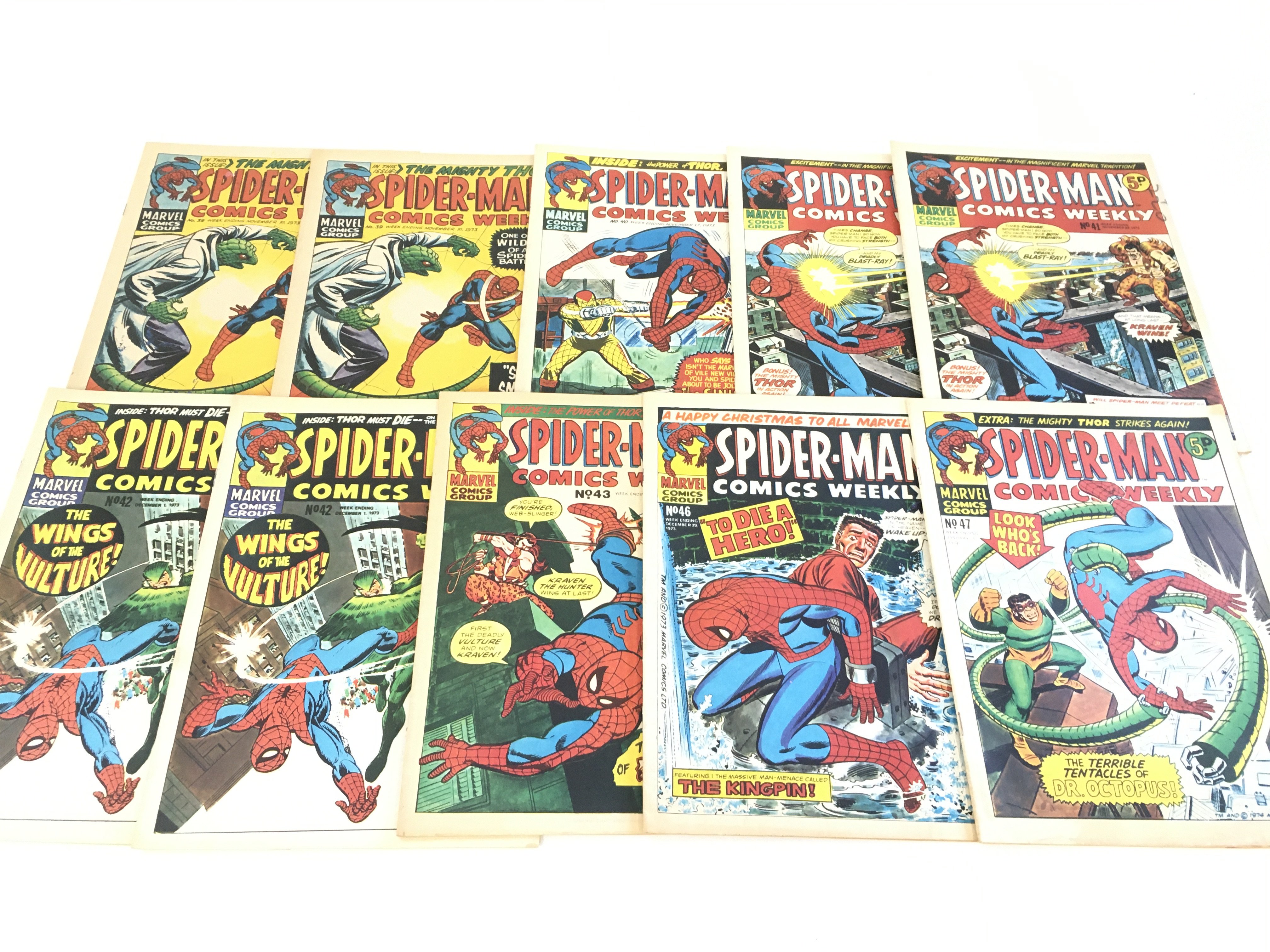 A box containing approximately 45 1970's Spiderman comic weekly. Including first issue. No reserve.