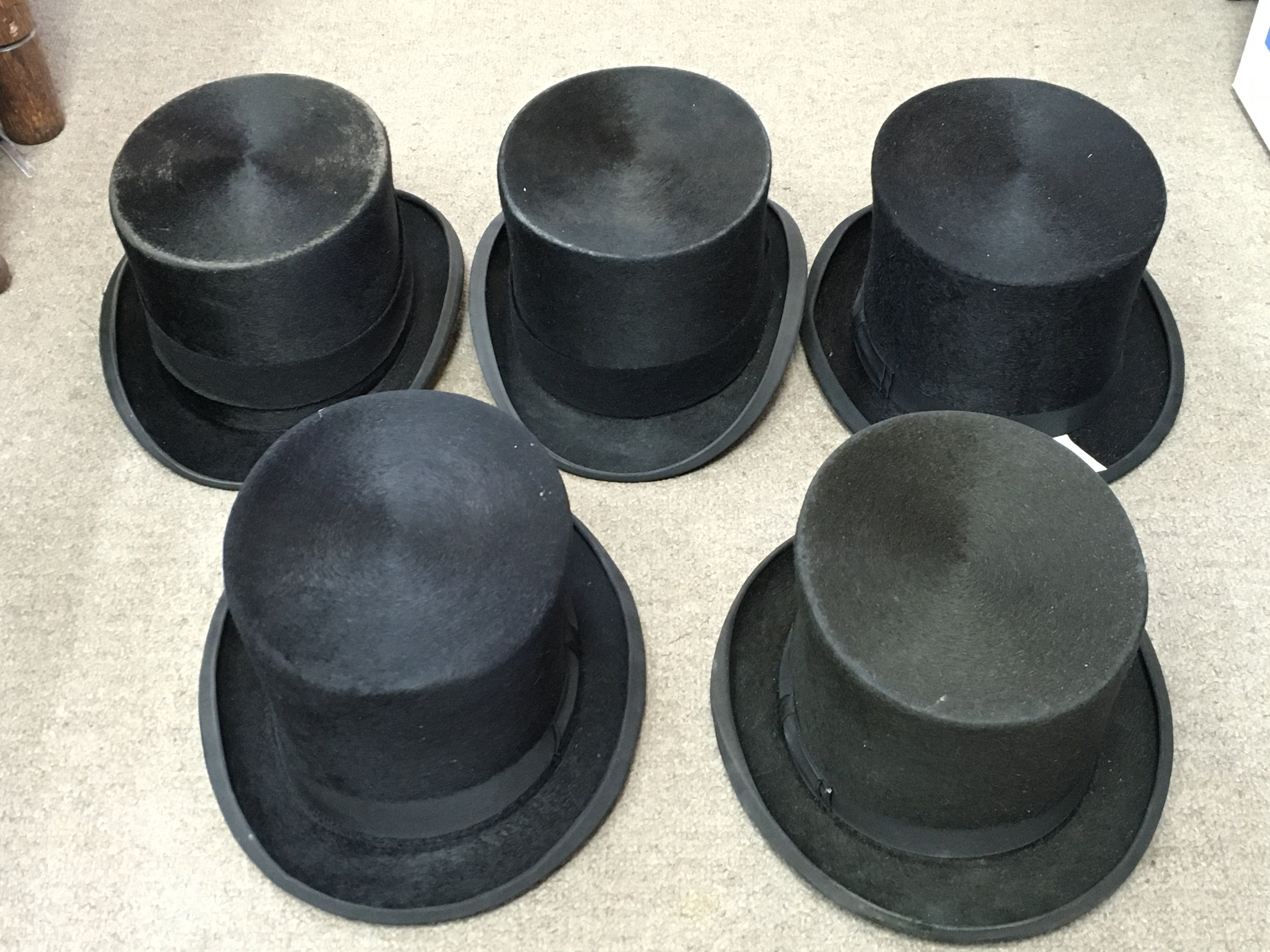 A collection of vintage top hats including Christys, Lyn Oakes etc. This lot cannot be posted