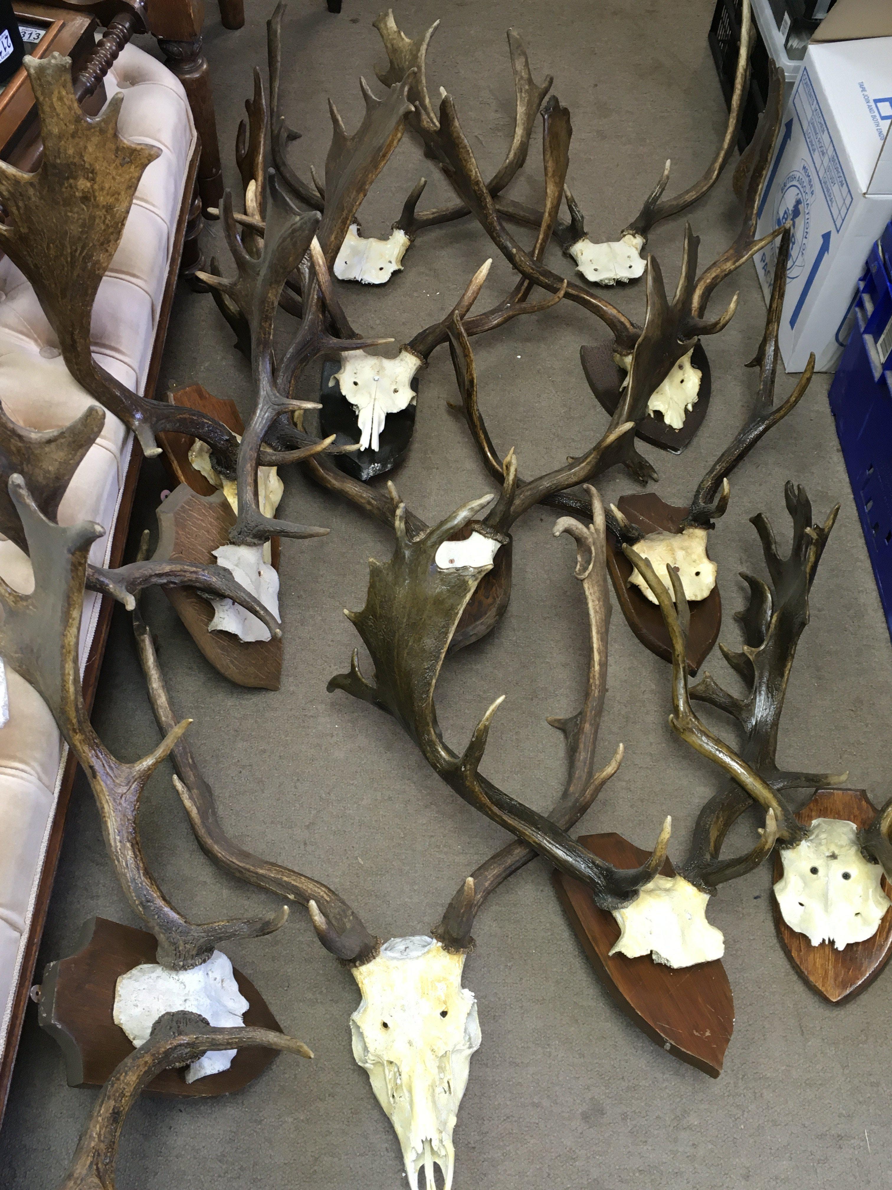 A collection of English deer antlers and skulls. This lot cannot be posted
