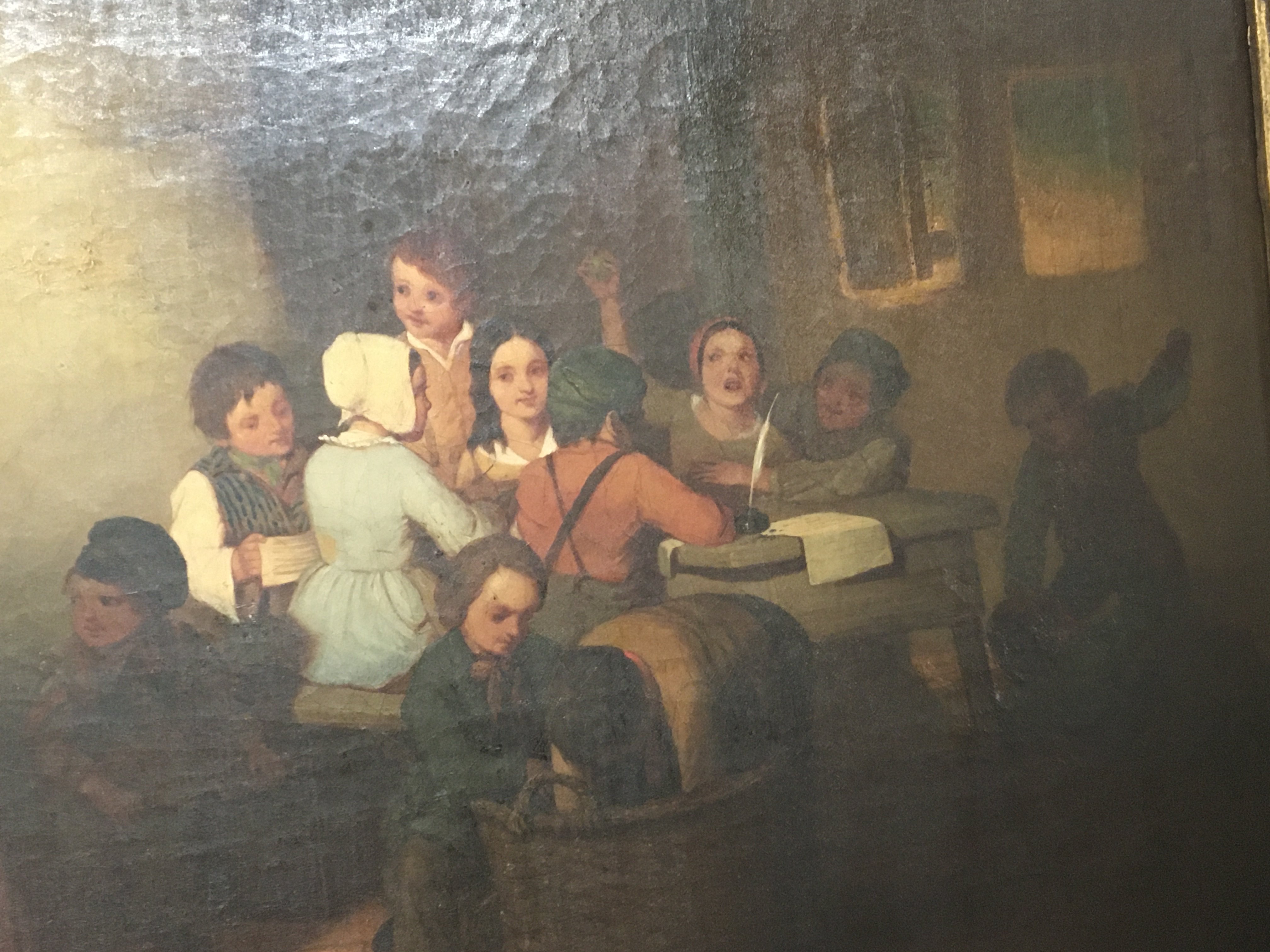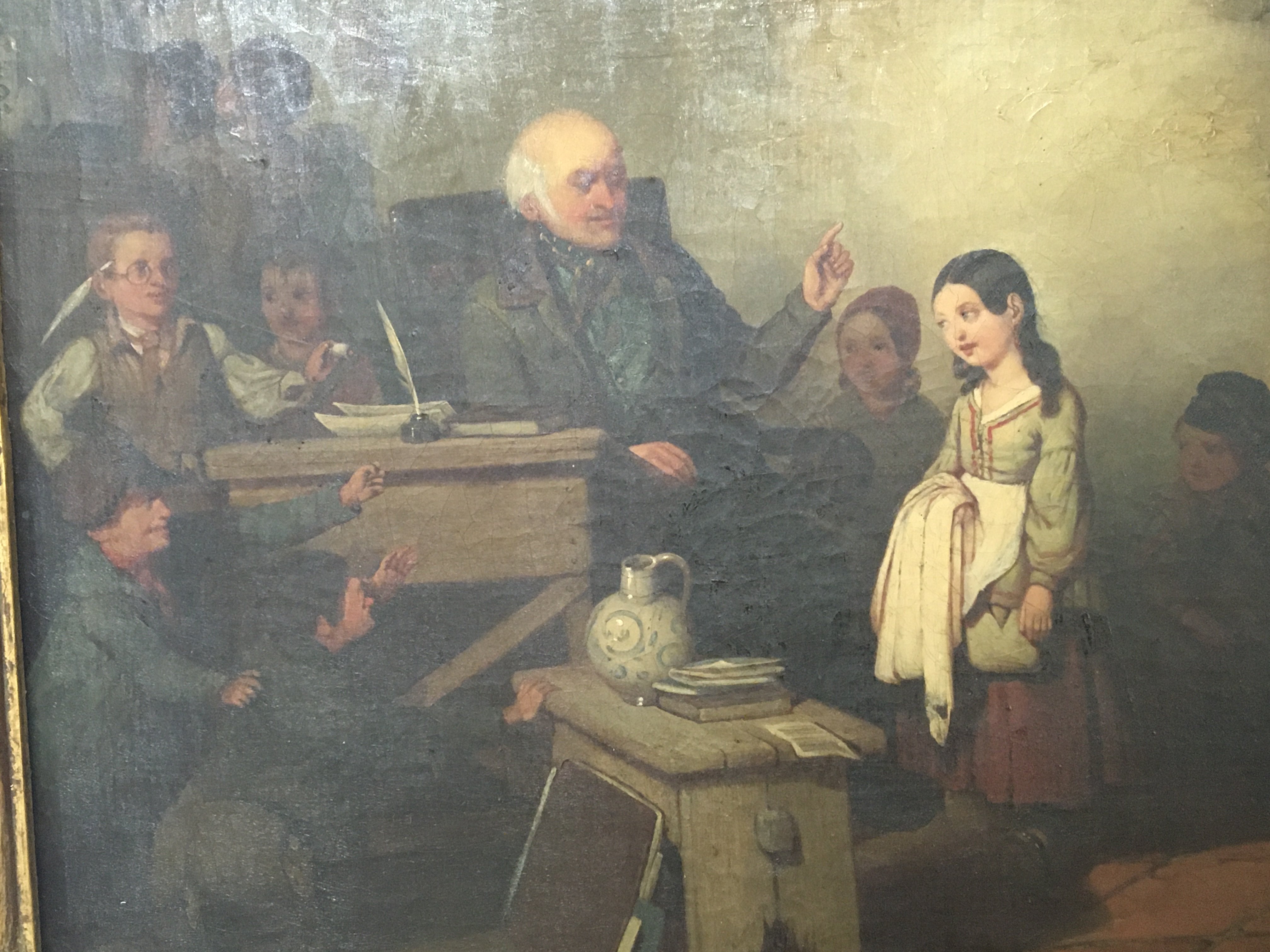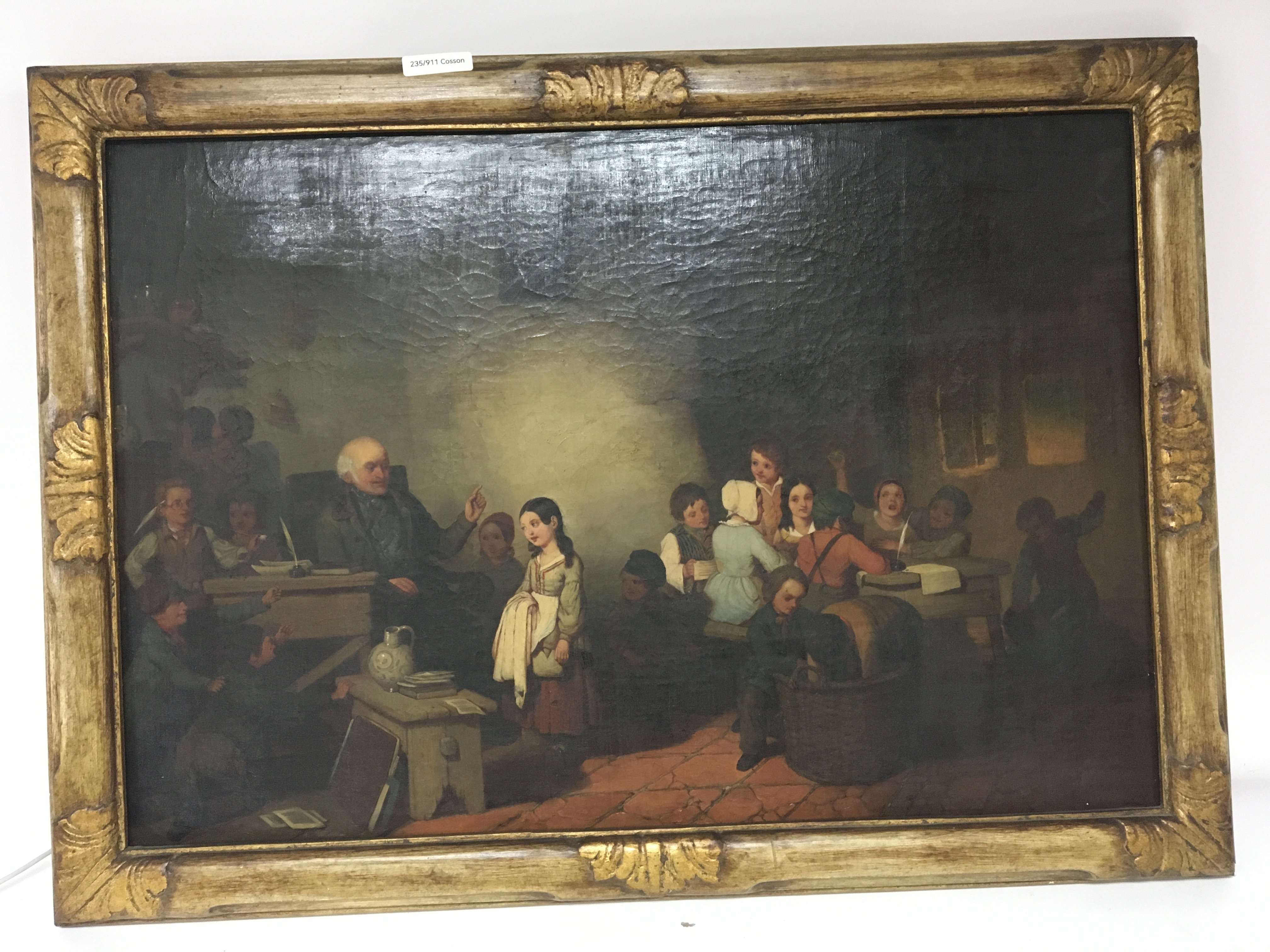 A mid 19th century oil painting on canvas depicting school children in an interior Indistinctly signed and dated 1848. Canvas relined. 51x69cm