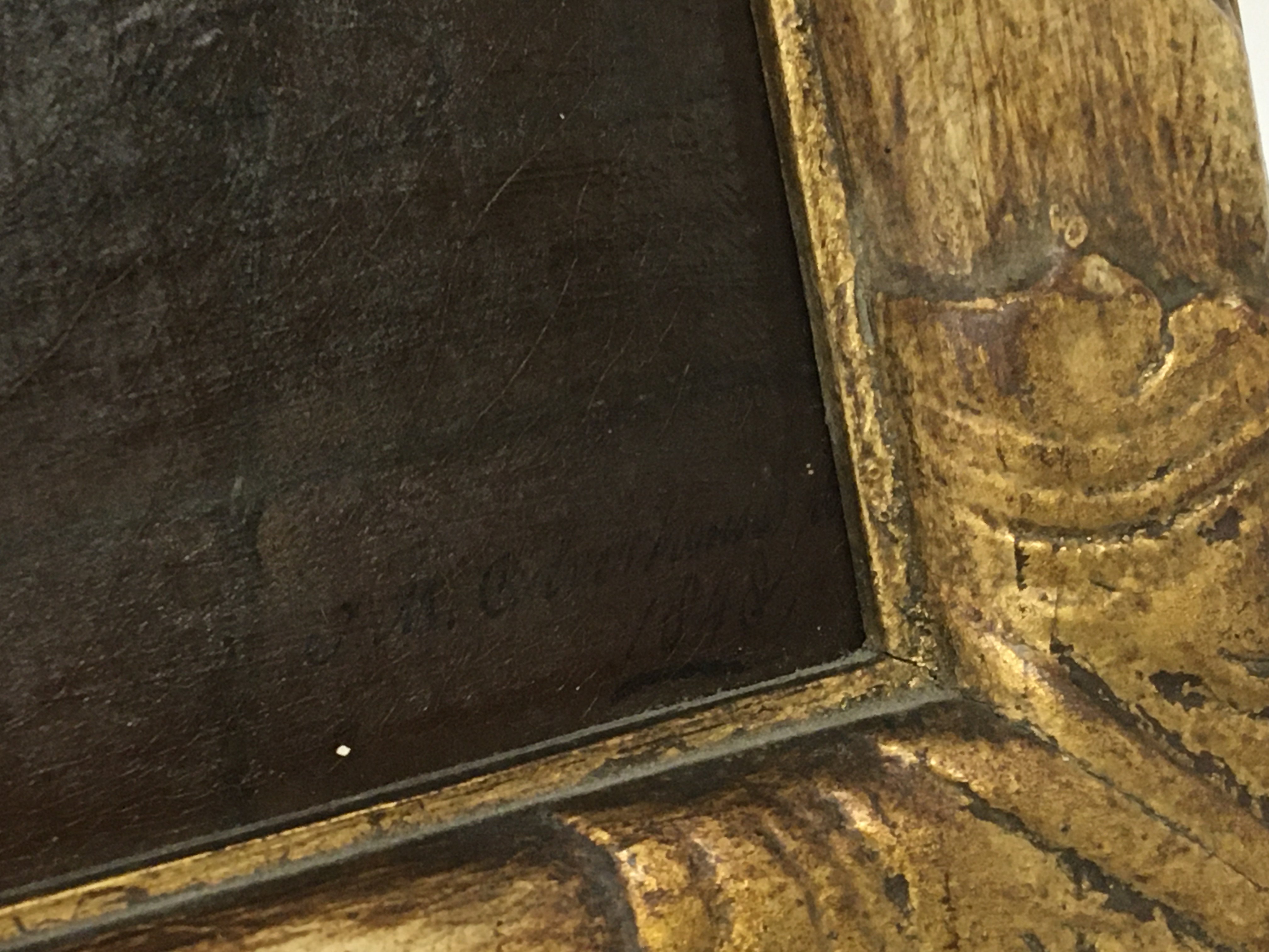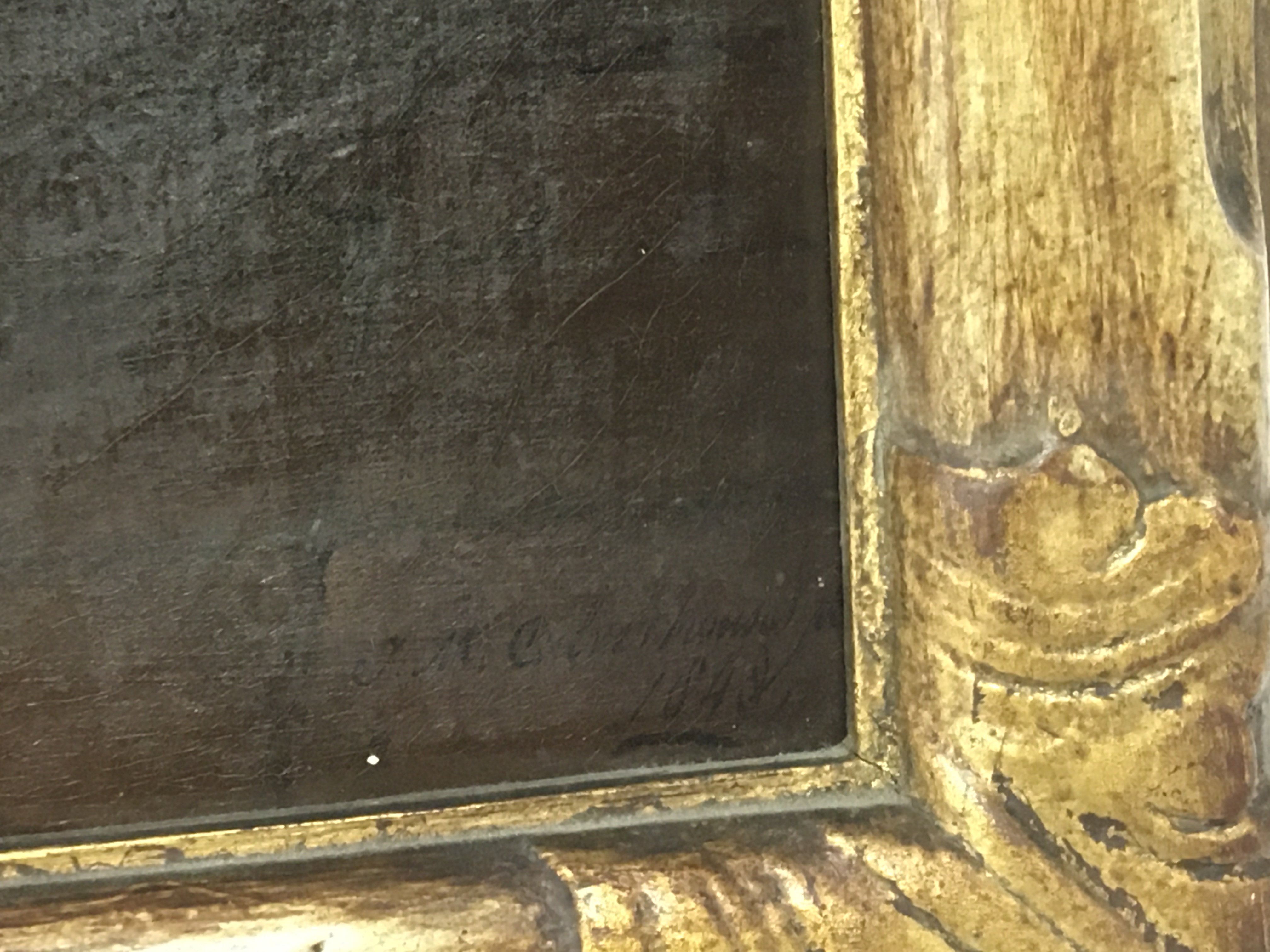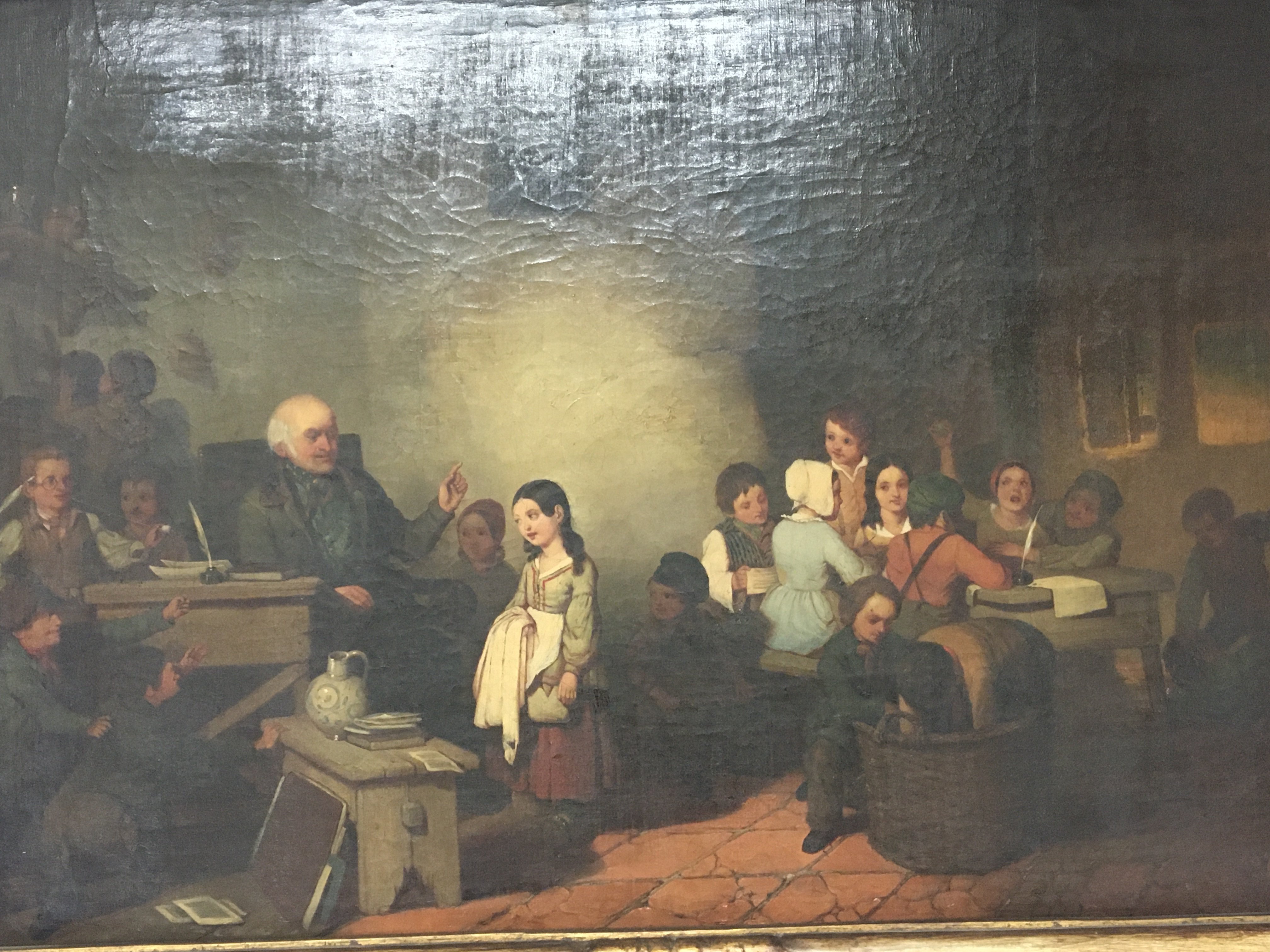 A mid 19th century oil painting on canvas depicting school children in an interior Indistinctly signed and dated 1848. Canvas relined. 51x69cm