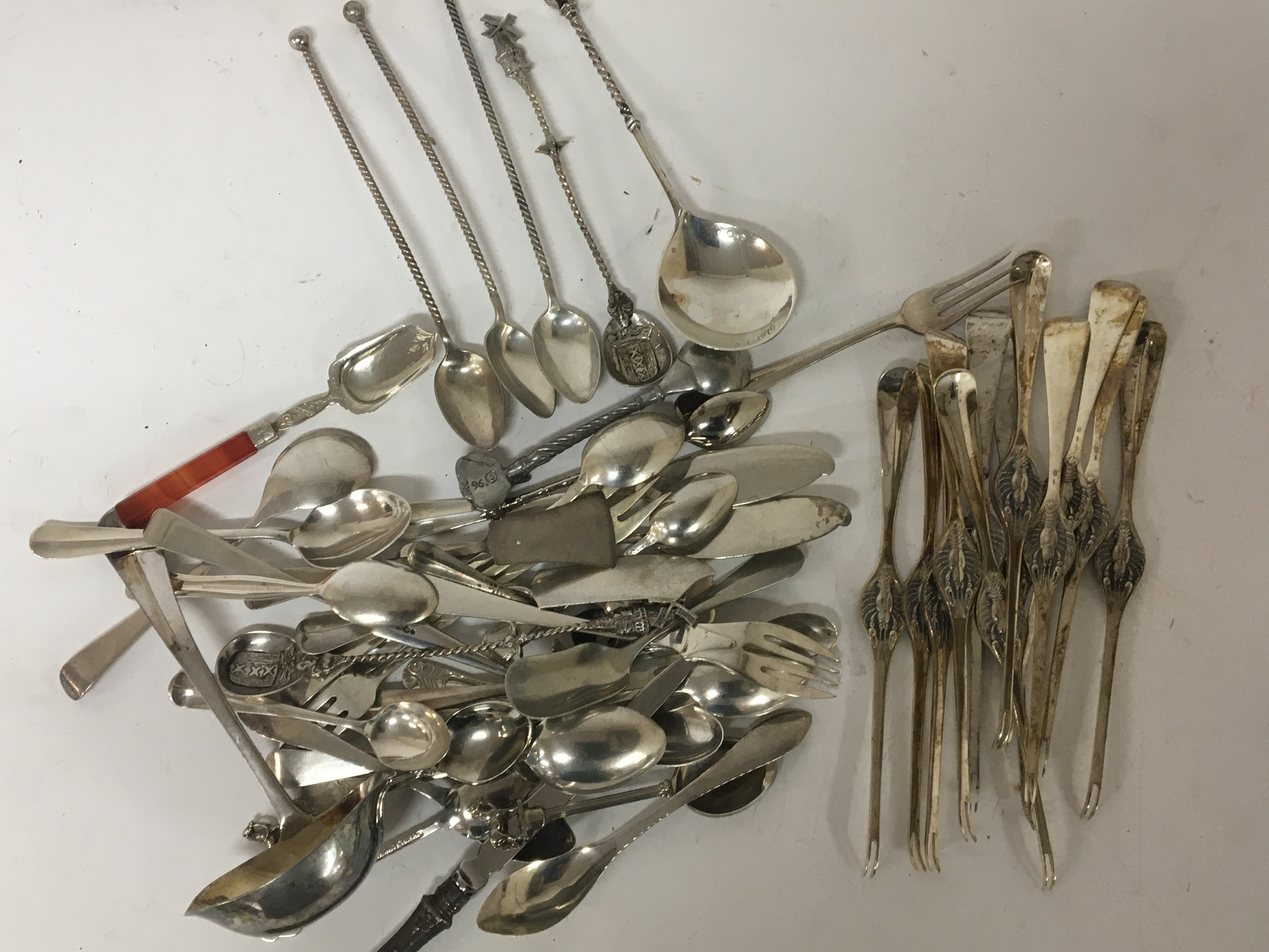 A collection of mixed Dutch silver Cutlery 833/1000 and other cutlery some plated and a set of white metal lobster folks. Total weight 1200g approximately