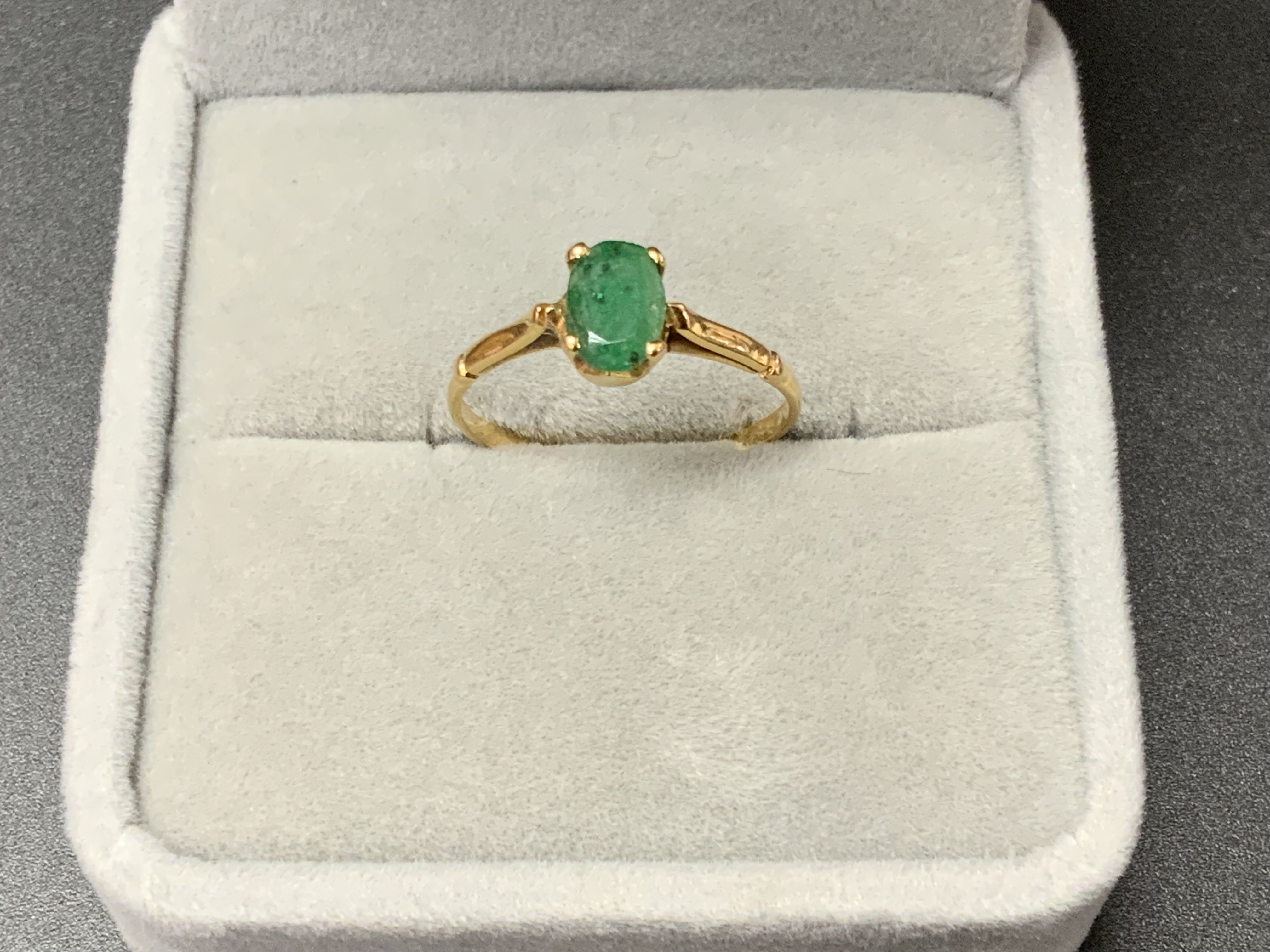 An 18ct gold ring set with an emerald. (Size N), Postage A)