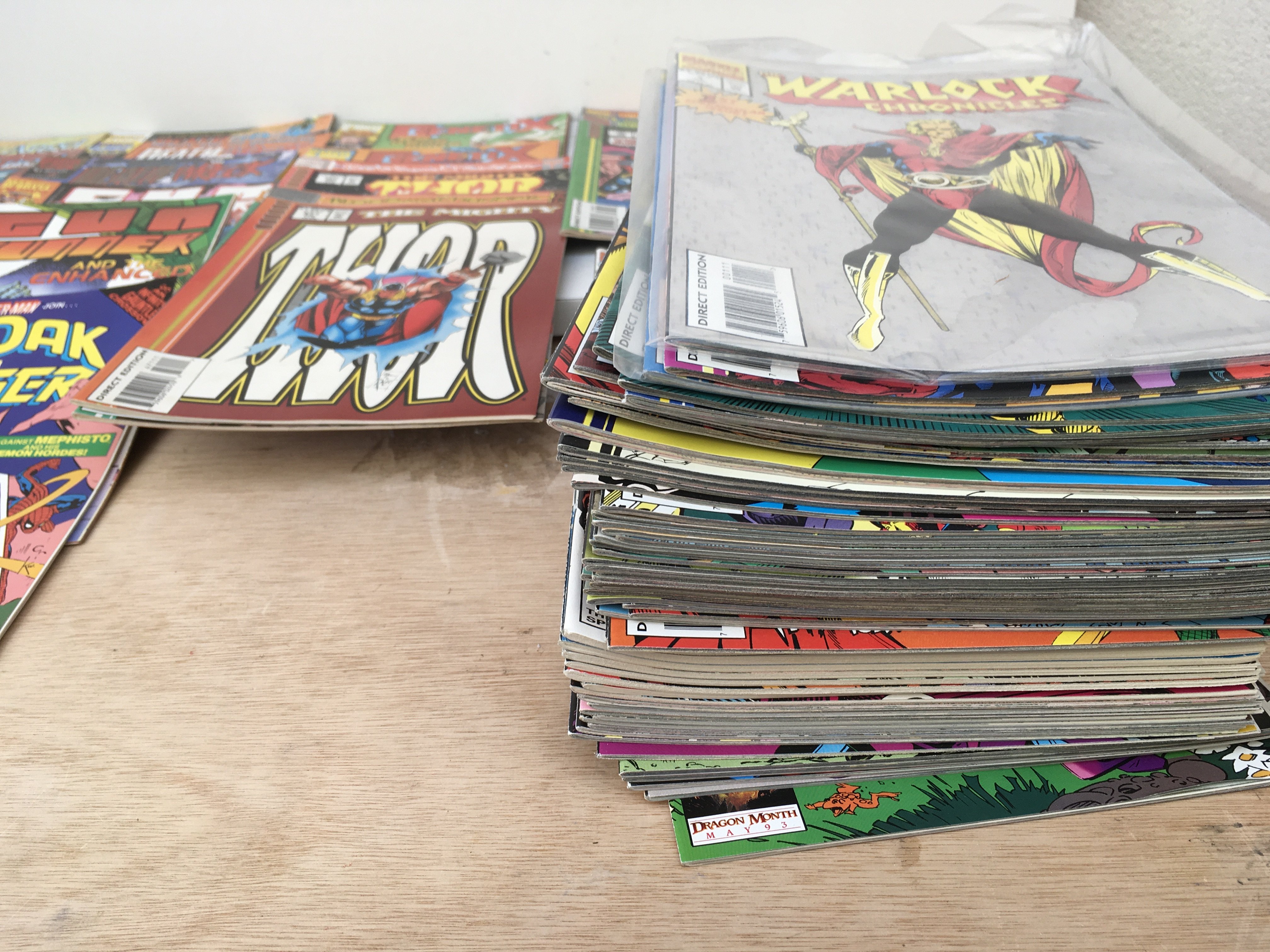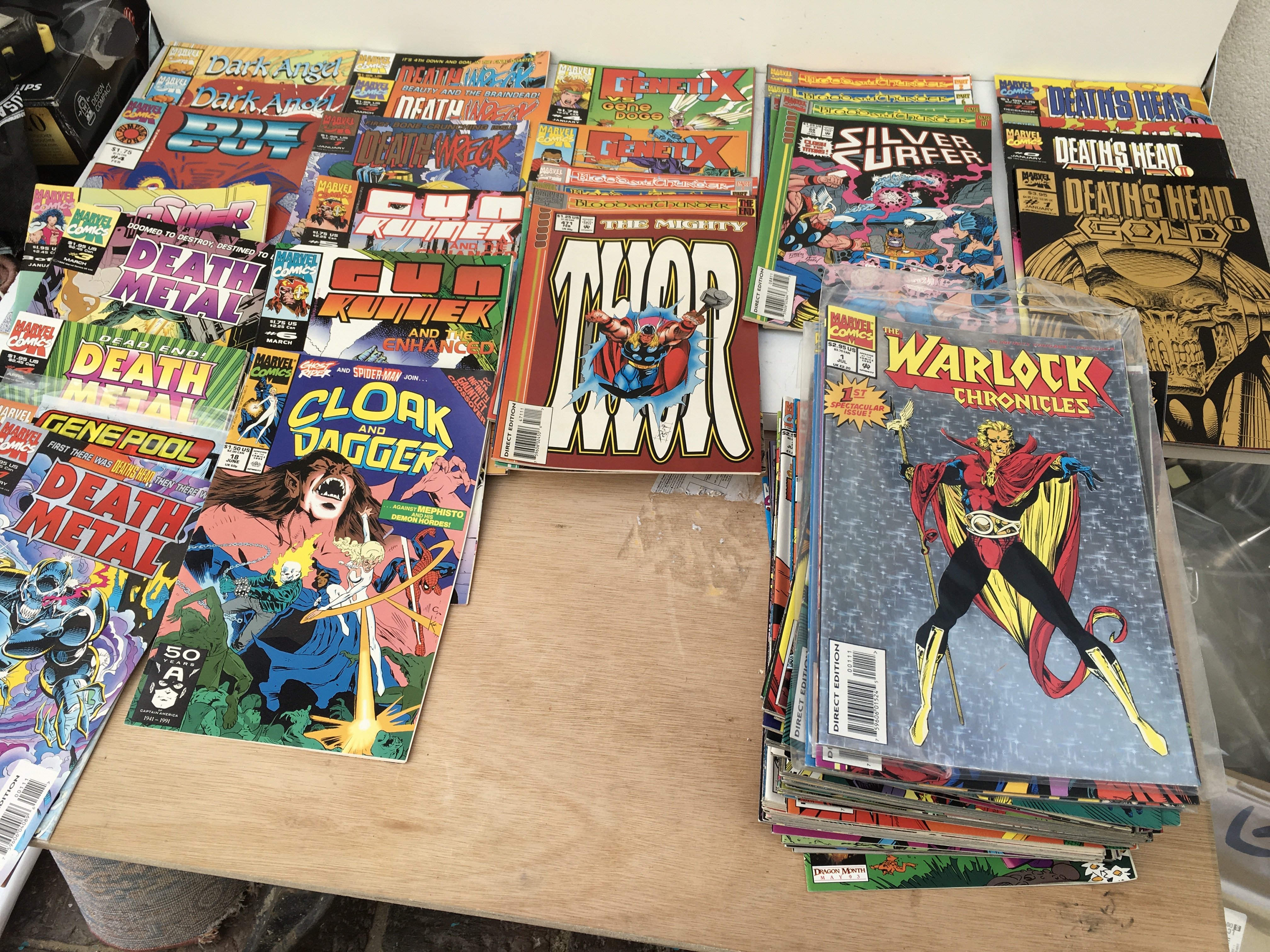 A collection of approximately 80 Marvel comics with different different titles including 50 x WARLOCK with edition number 1..Death Metal including edition number 1..Death Wreck including Edition number 1.. Death Head including edition number 1..