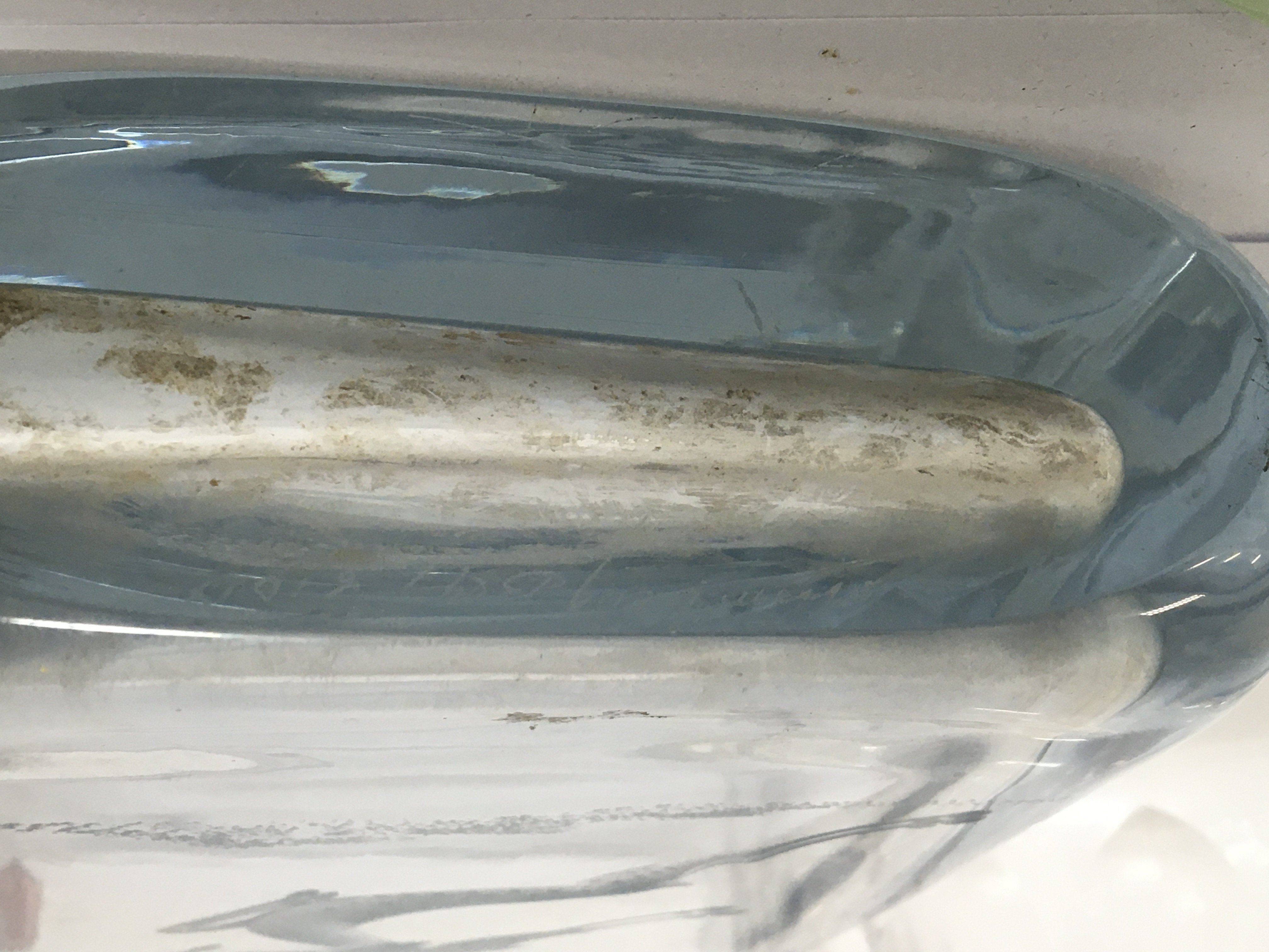 A signed modern design art glass vase with leaping Gazelles signed base a signed cut glass bowl a pair of Staffordshire dogs and an Egyptian influence figure of a Sphinx.