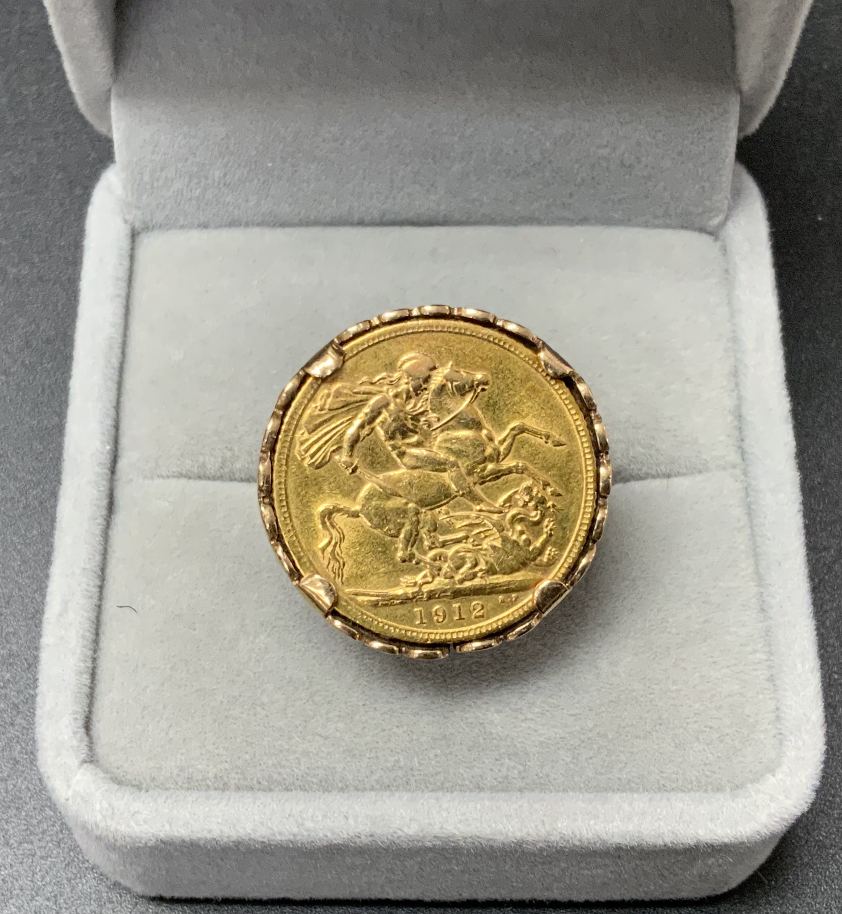 A full 1912 Sovereign and ring mount. (A), 12.2g.