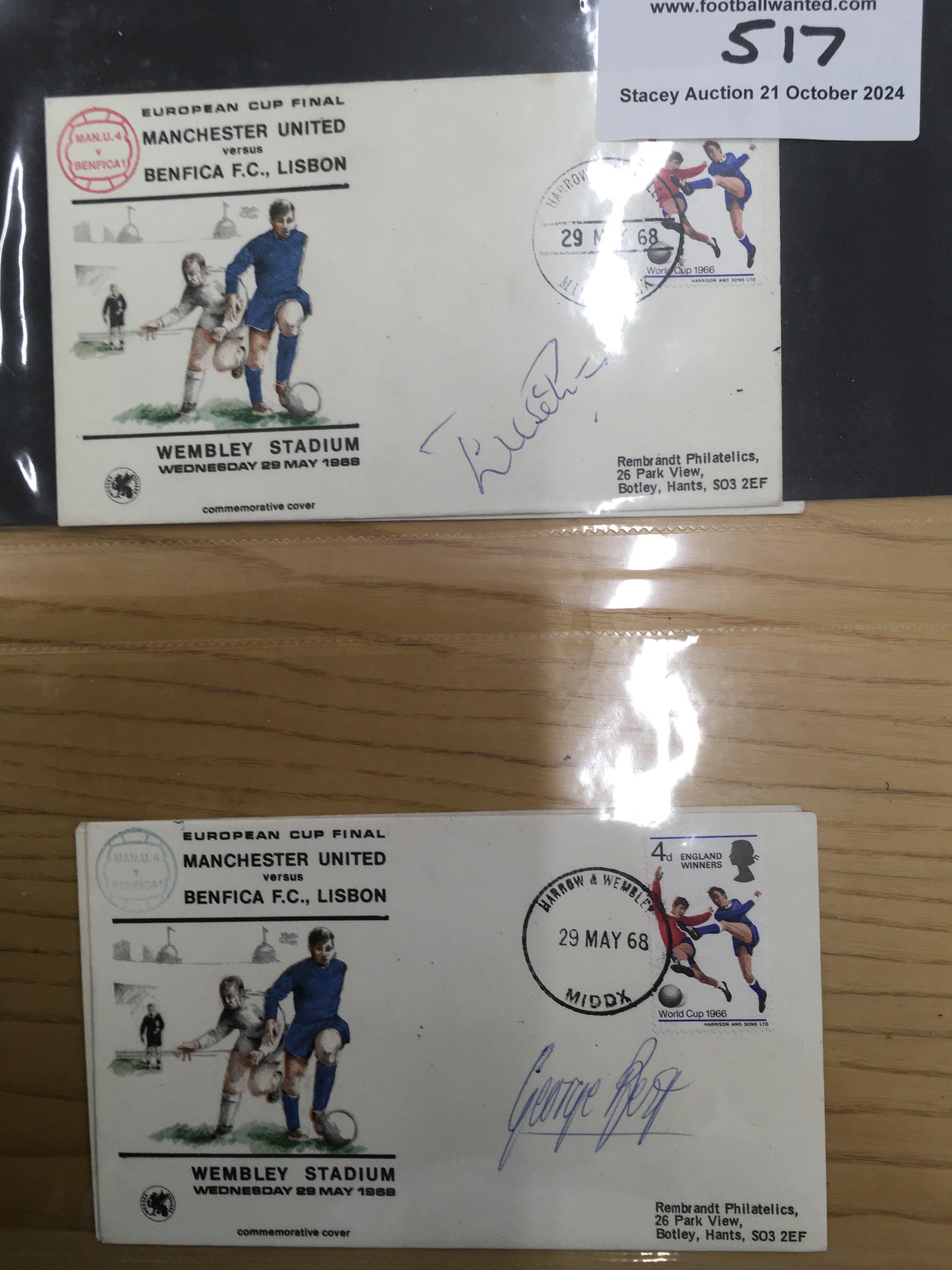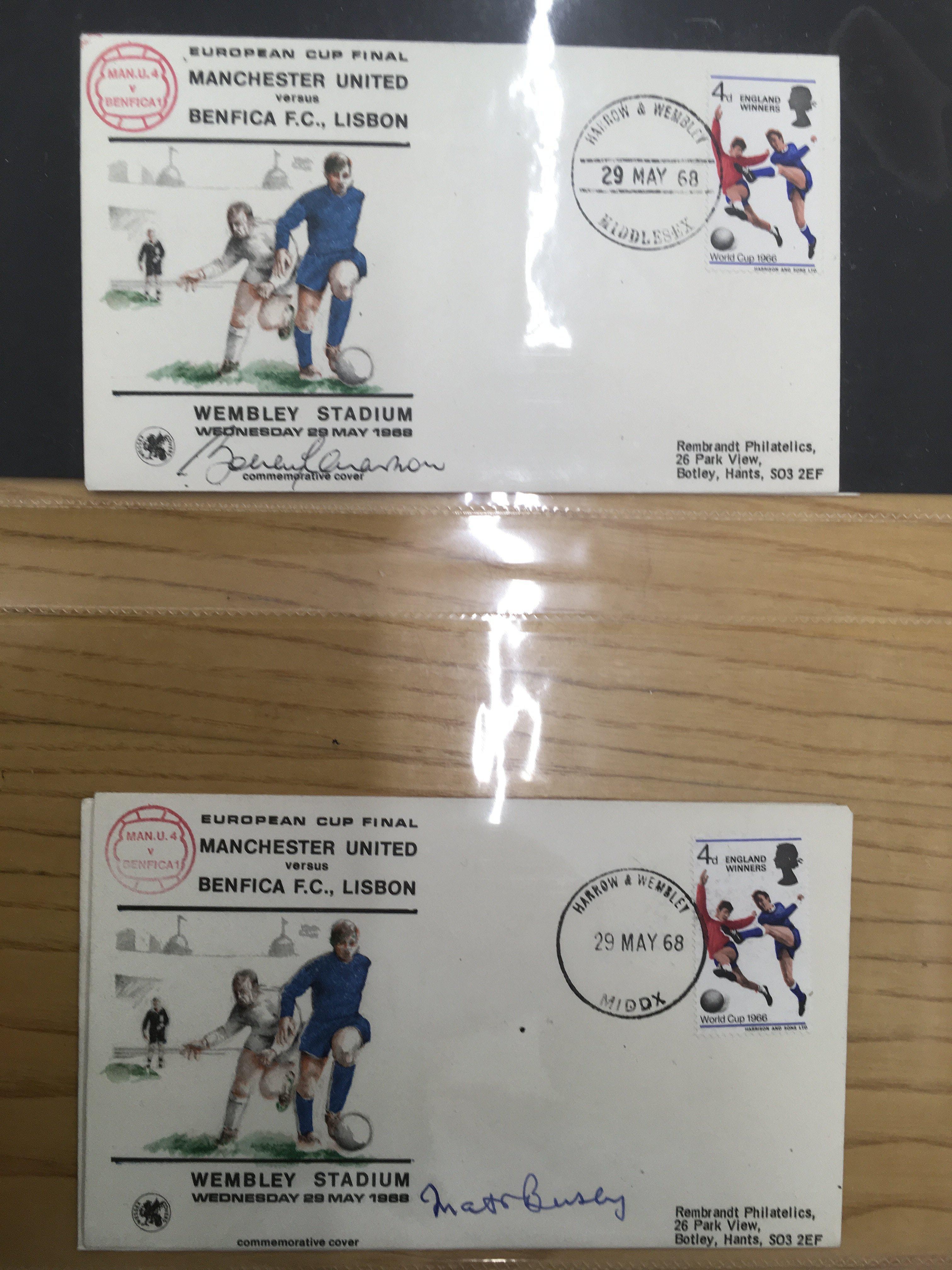 Manchester United 1968 Signed ECF First Day Covers: European Cup final first day covers with postmark of 29 5 1968 the day of the match. All 4 signed are signed by an individual and Include Charlton Best Busby and Benfica star Eusebio. (4)