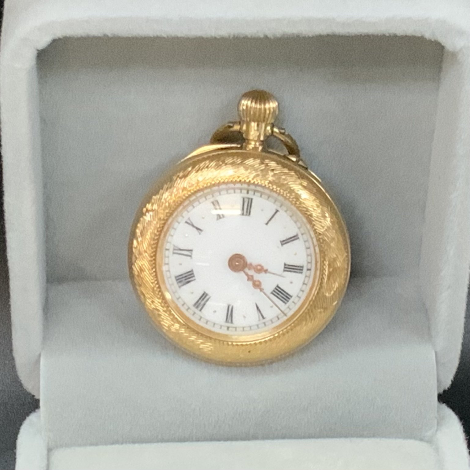 A 14ct gold cased button wind pocket watch. (A)