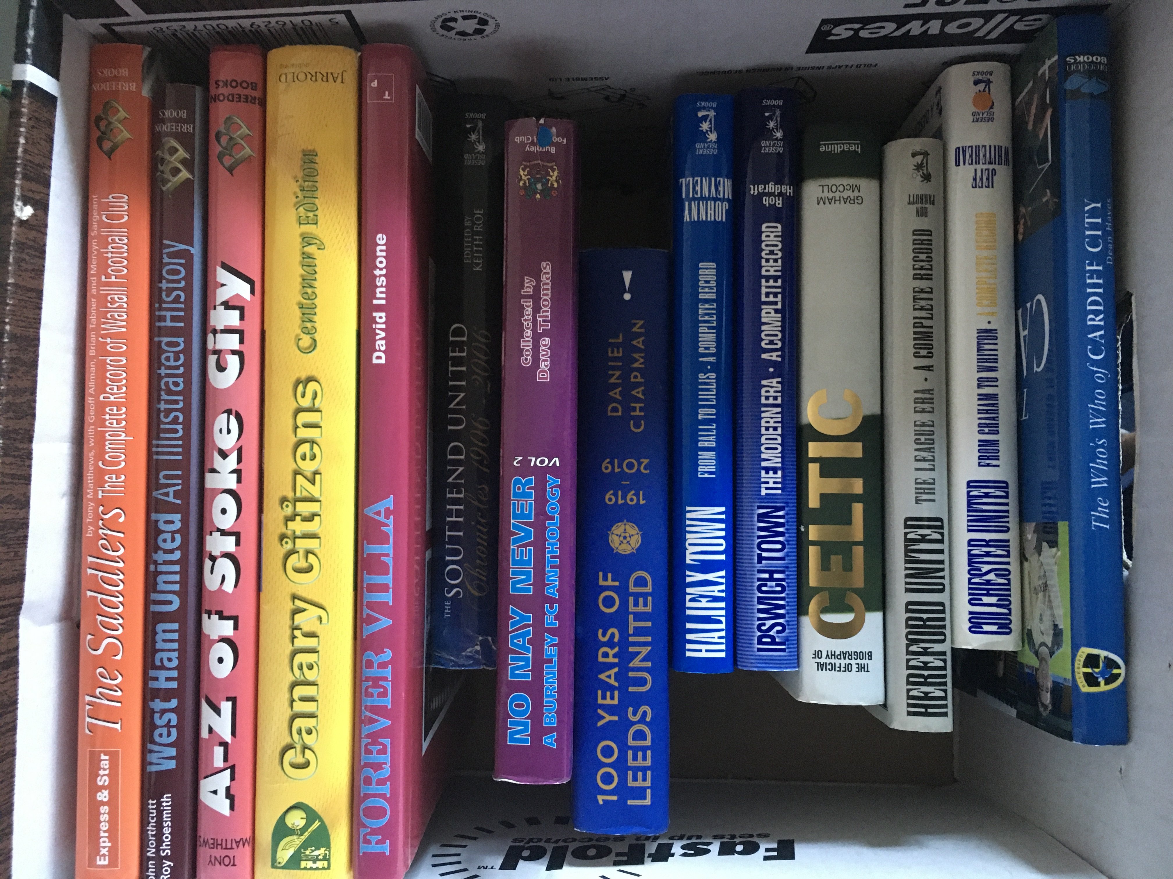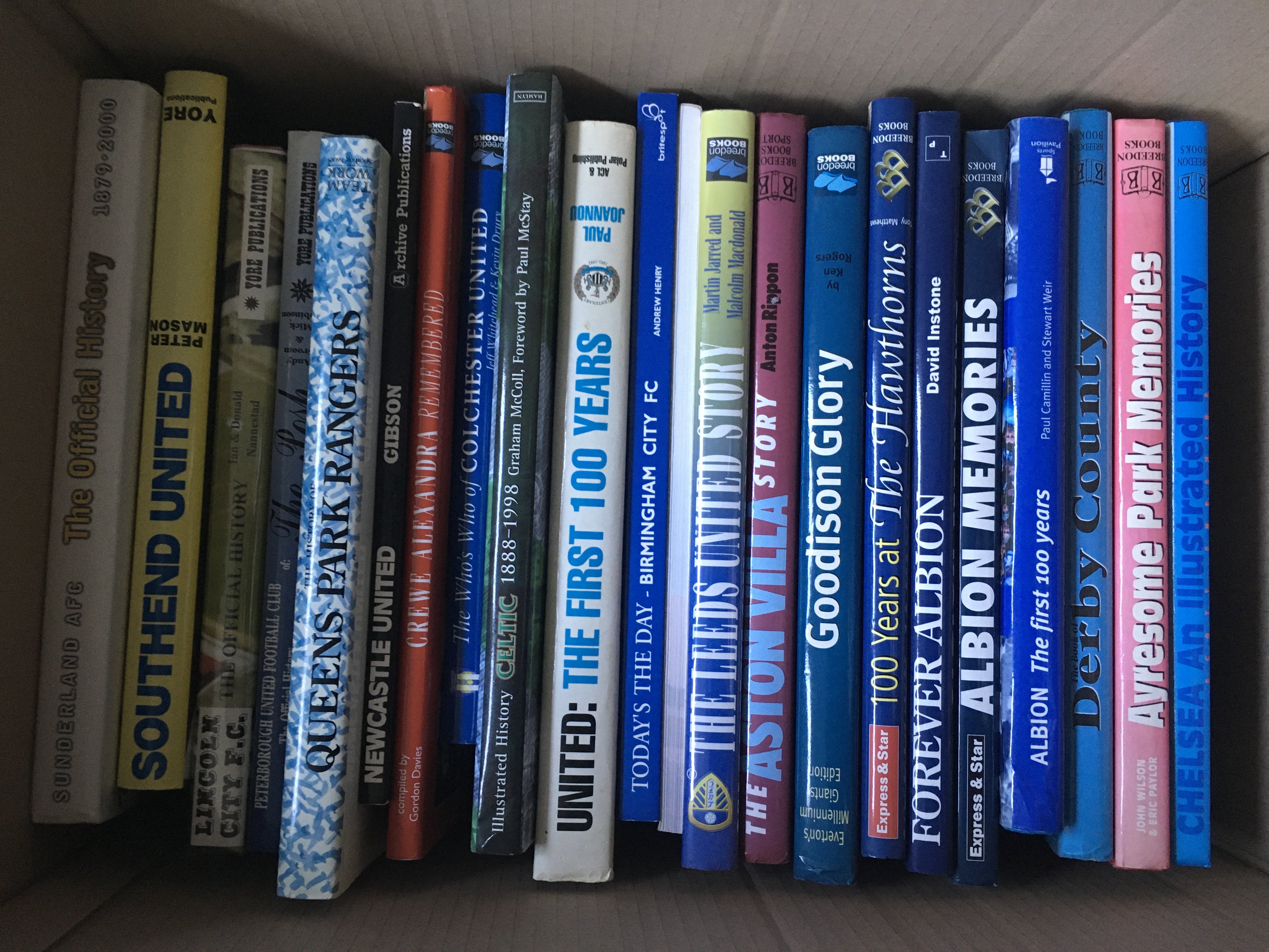 Football History Book Collection: Some great large histories with many from publishers Breedon, Yore and Desert Island Books. Other books include The Best Of Charles Buchan Football Monthly and Breedon Book Of Football Managers. Excellent condition in 3 boxes. (49)