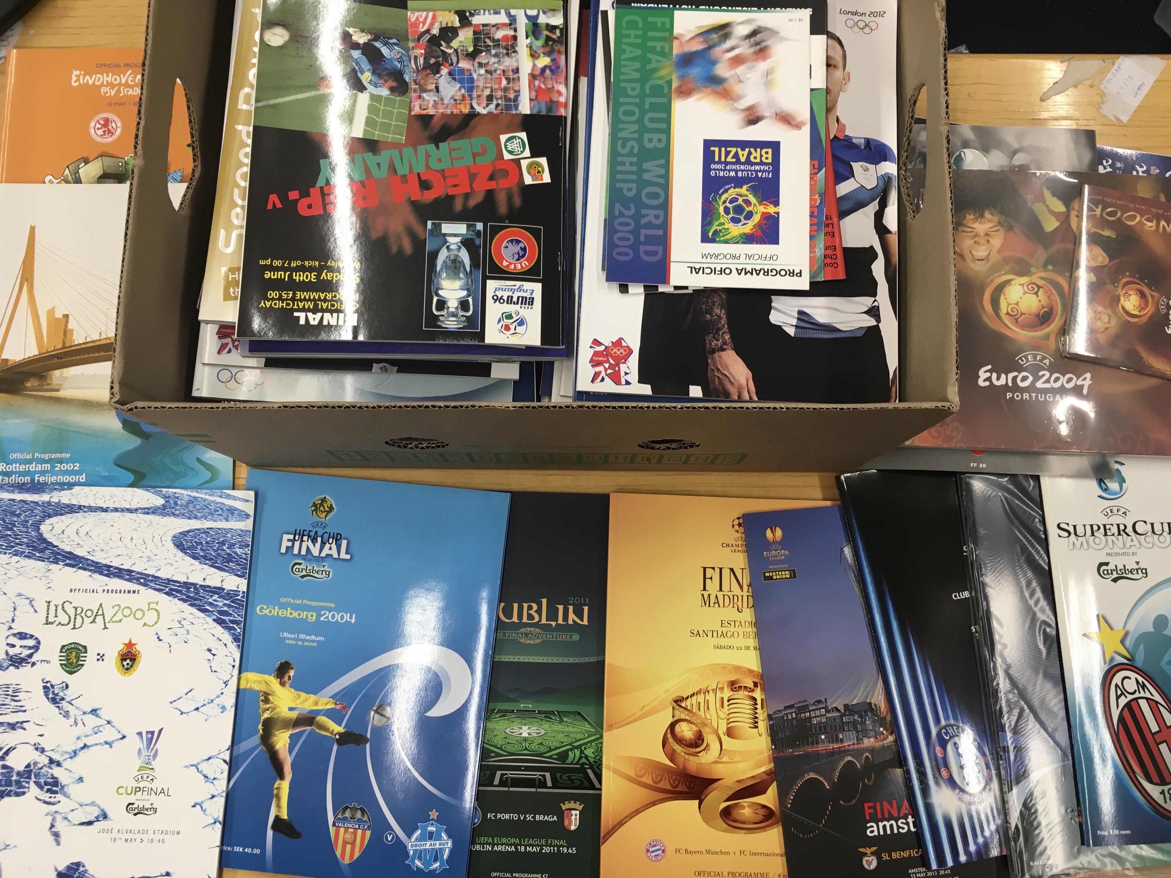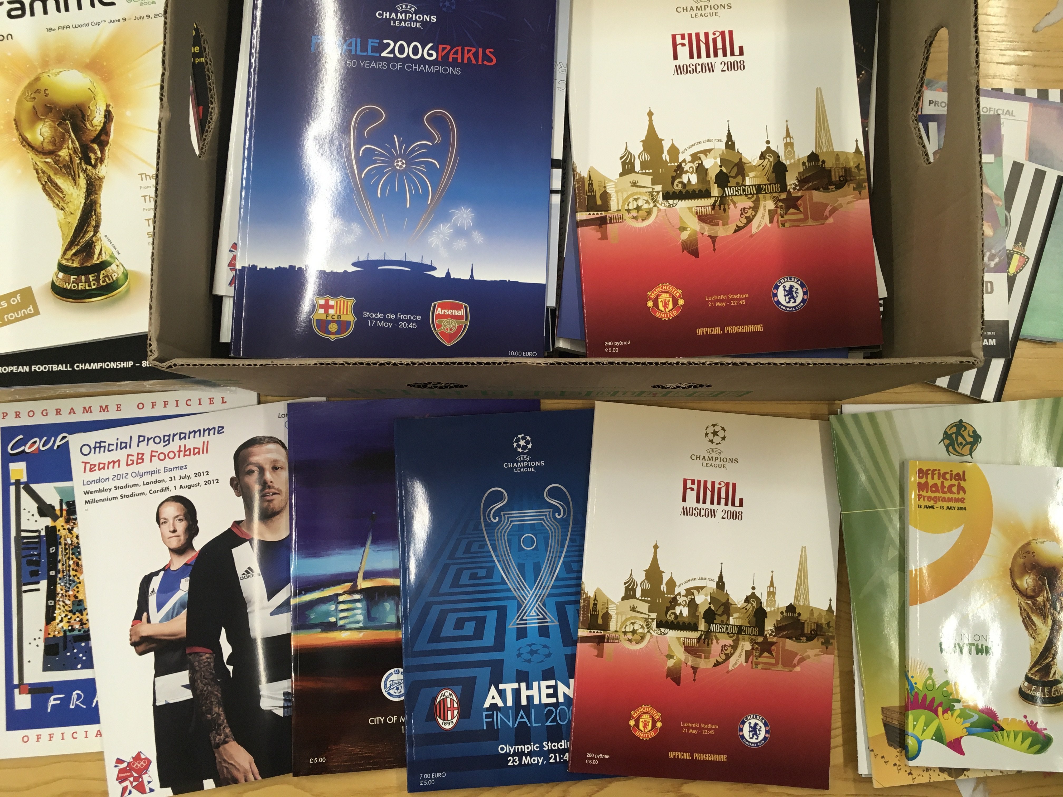 European + World Final Football Programmes: Includes Champions League, Europa League, Euros, World Cup, World Club Cup etc. Excellent condition with duplication. (95)