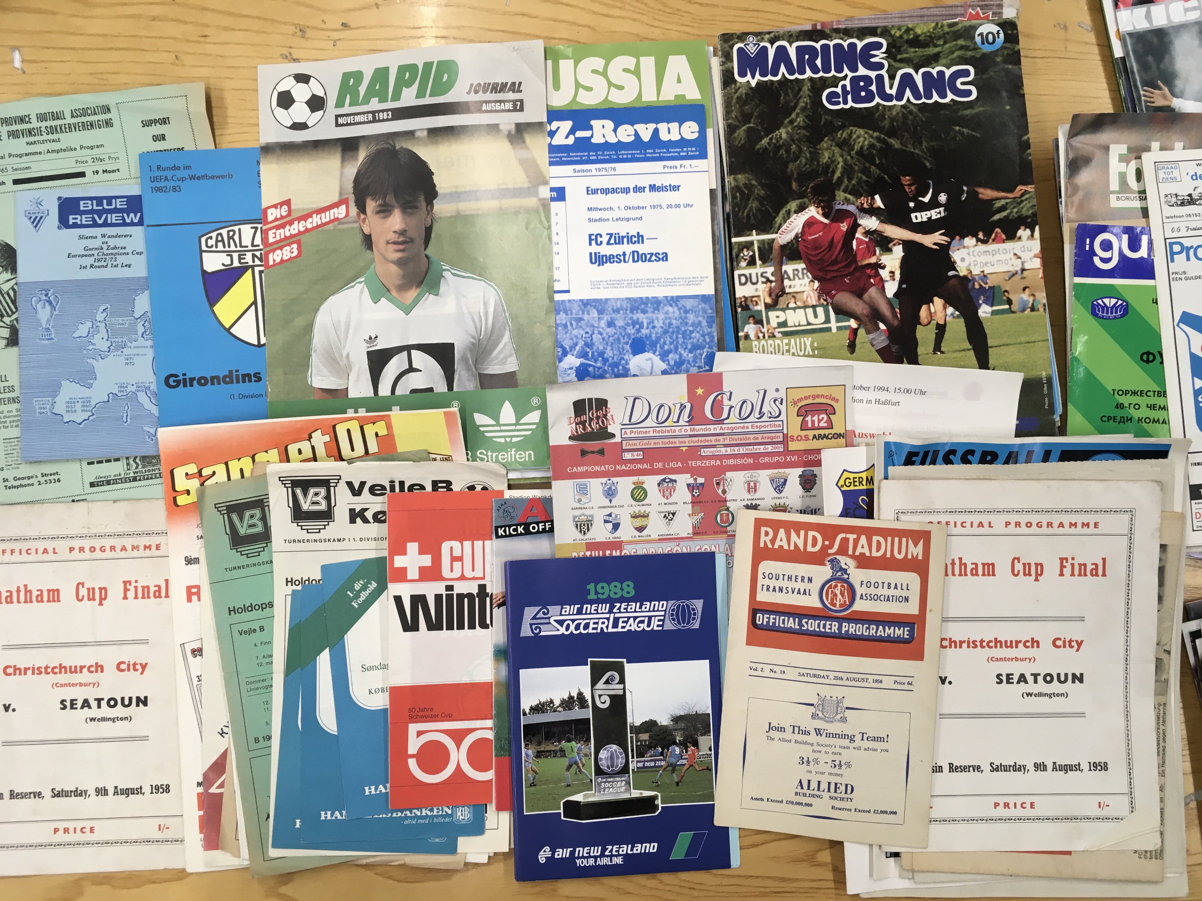 Foreign Club Football Programmes: 21 are in European competitions but no British involvement at all. Includes 72/73 Silema v Gornik and 82/83 Jena v Bordeaux. Very good. (101)