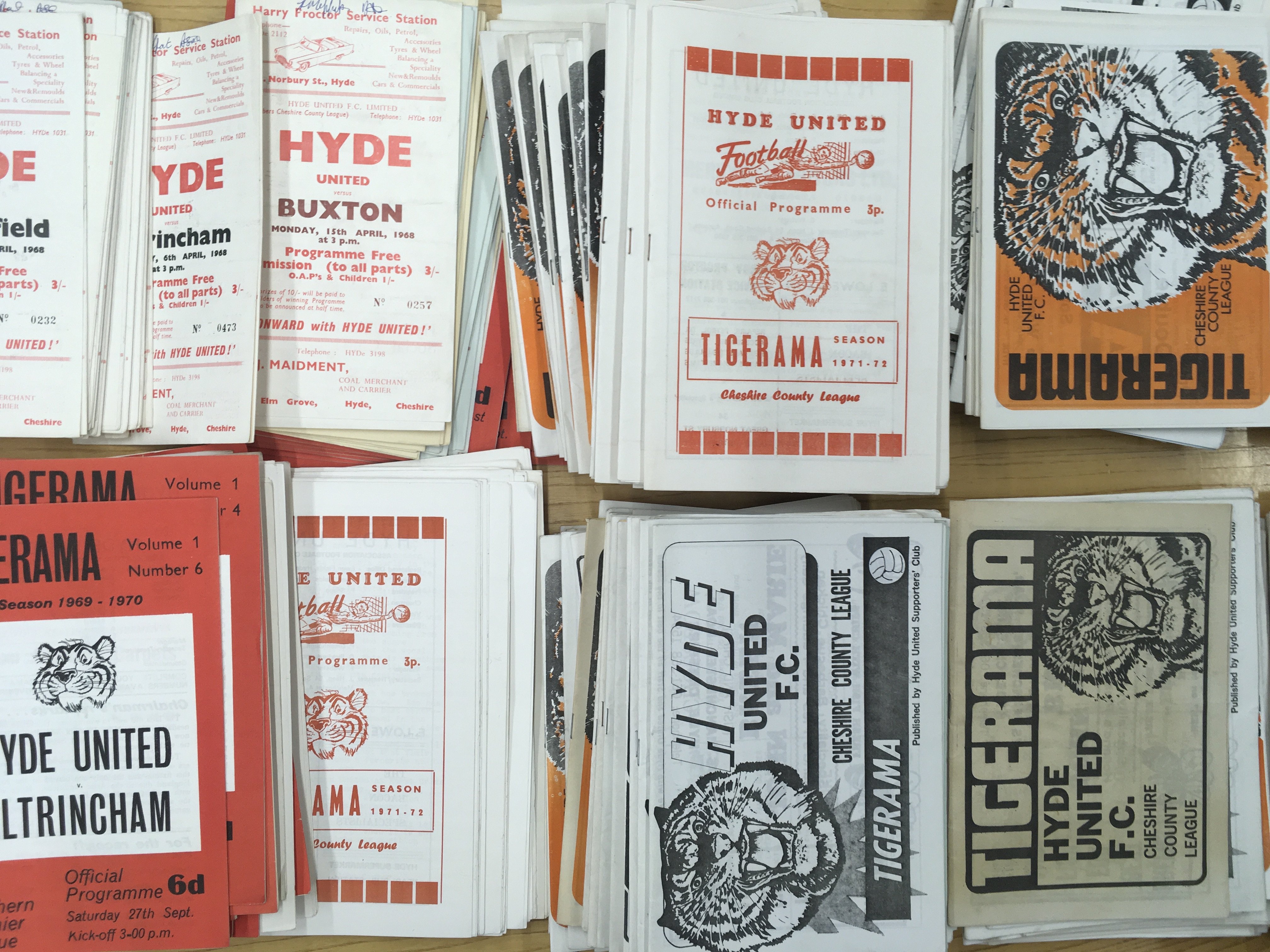 Hyde United Football Programmes: From the 60s to the early 80s in good condition with some having writing to cover. (308)