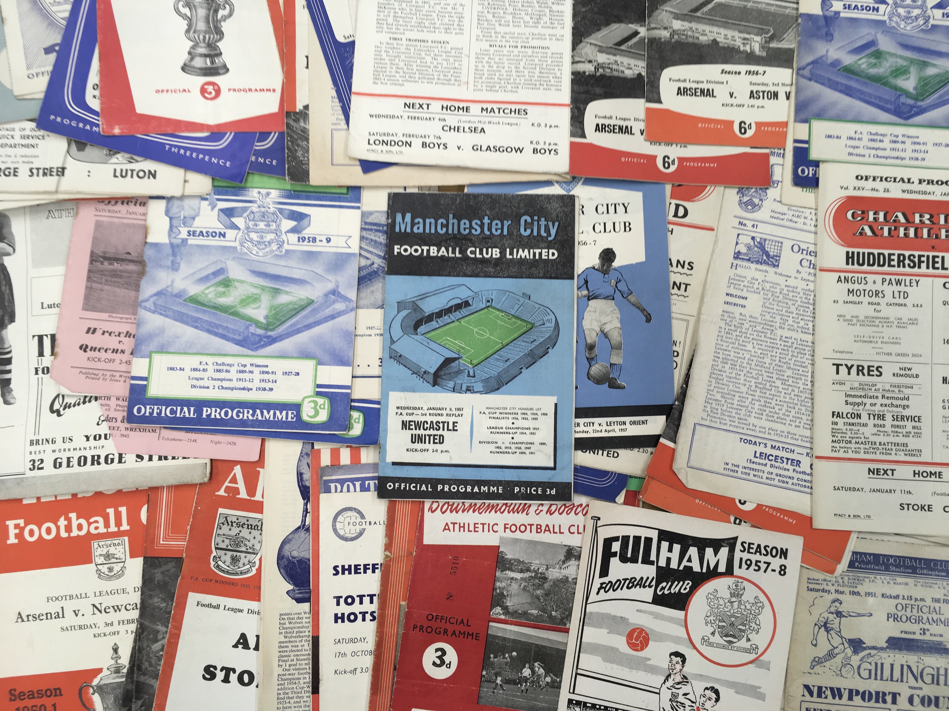 1950s Football Programmes: Includes 50/51 Gillingham, Tottenham Festival of Britain, 52/53 Millwall v Manchester United FA Cup, 54/55 Chelsea and more. Mixed conditions with many sub standard. (120)