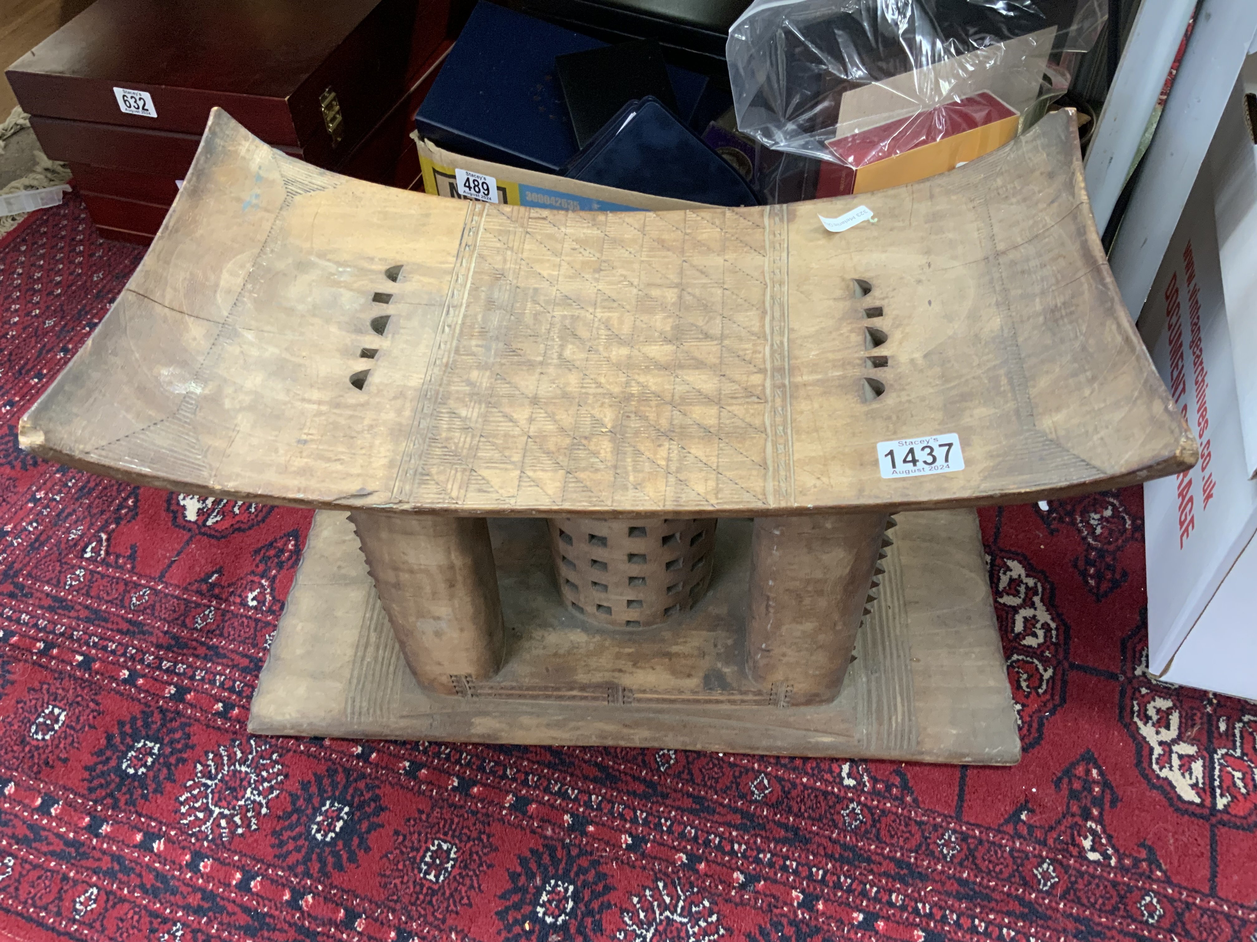 An African 20thC carved Ashanti tribal wooden stool. 52cm x 34cm x 26cm. (D)