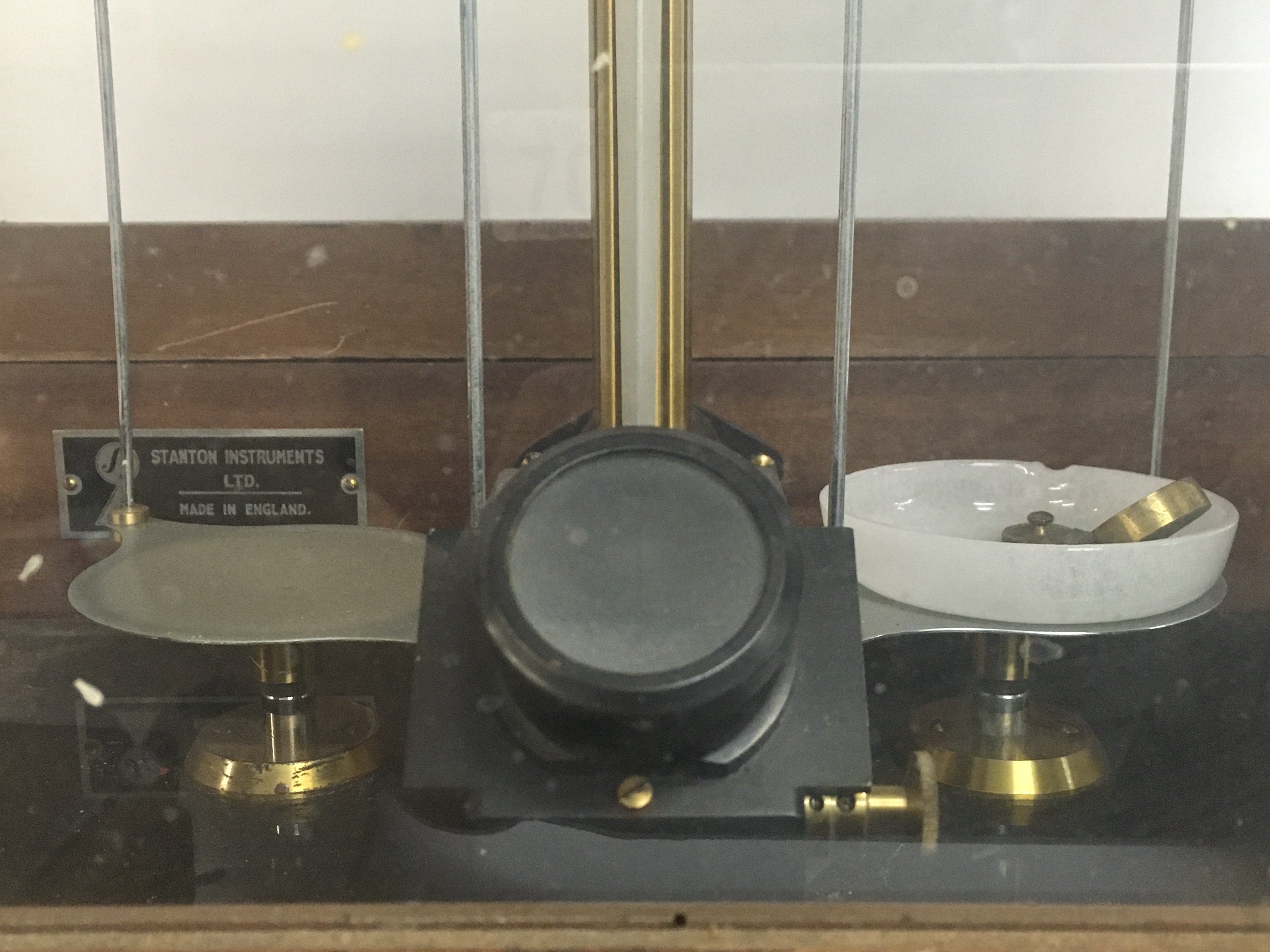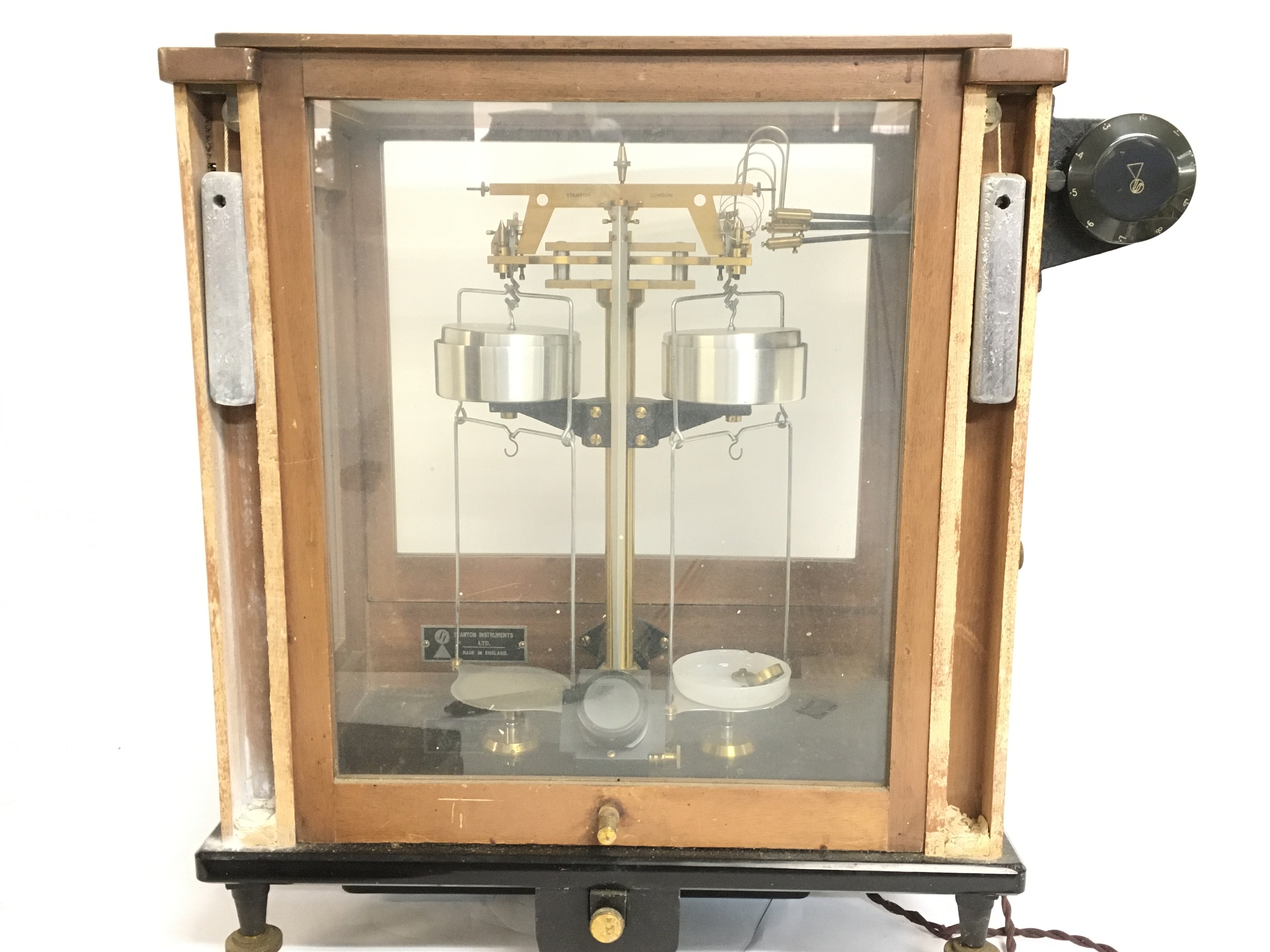 A cased Analytical balance, model number A.D.4. Made by Stanton Instruments Ltd. of London. This lot cannot be posted