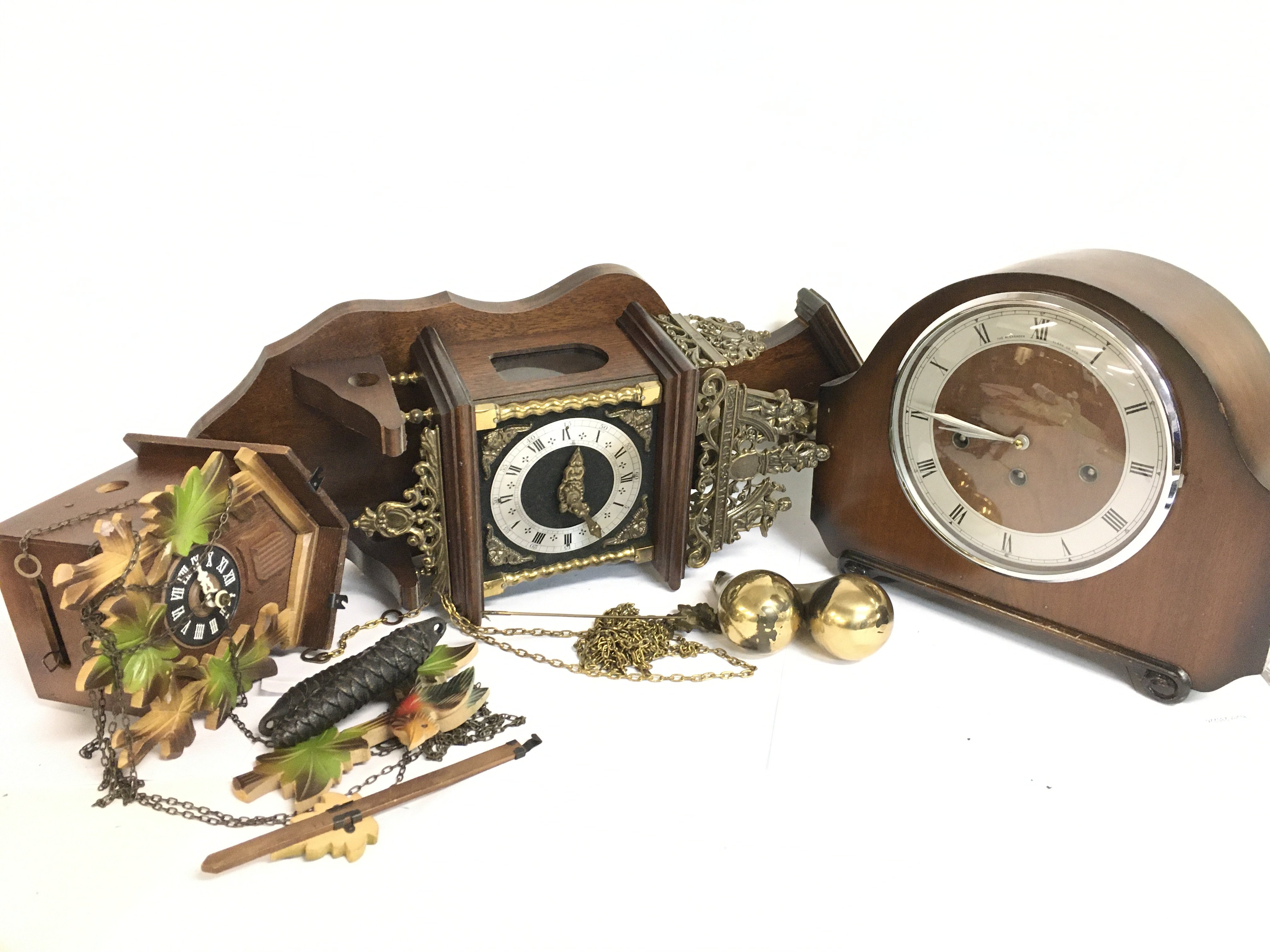 An Alexander Clark mantle clock and two wall clocks. This lot cannot be posted
