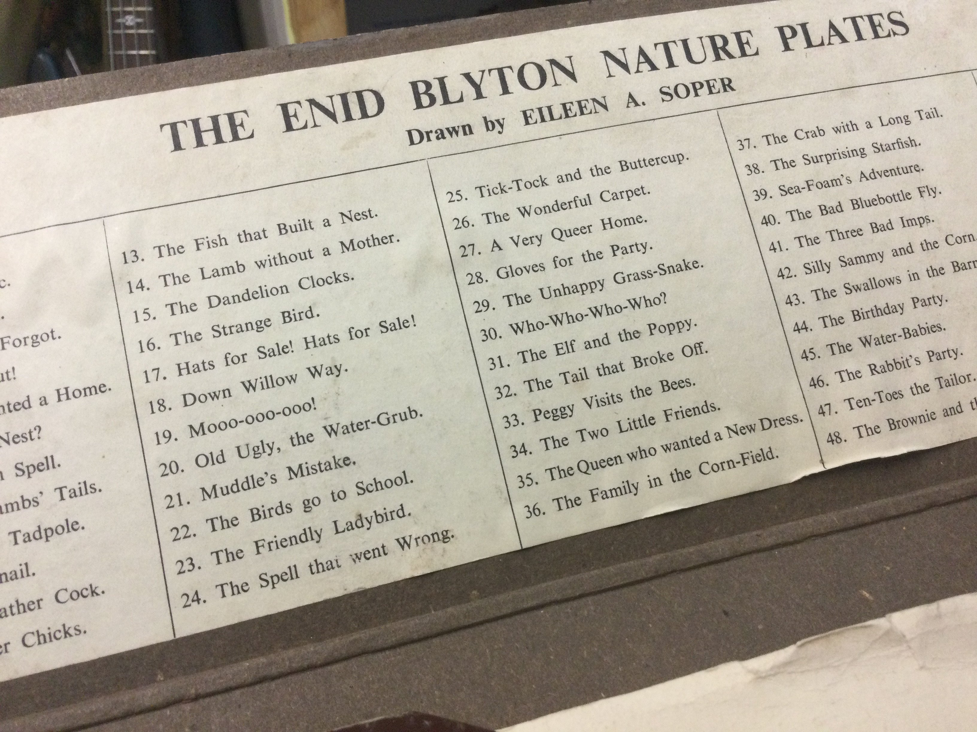 A brown folder containing Enid Blyton nature plates , no reserve.