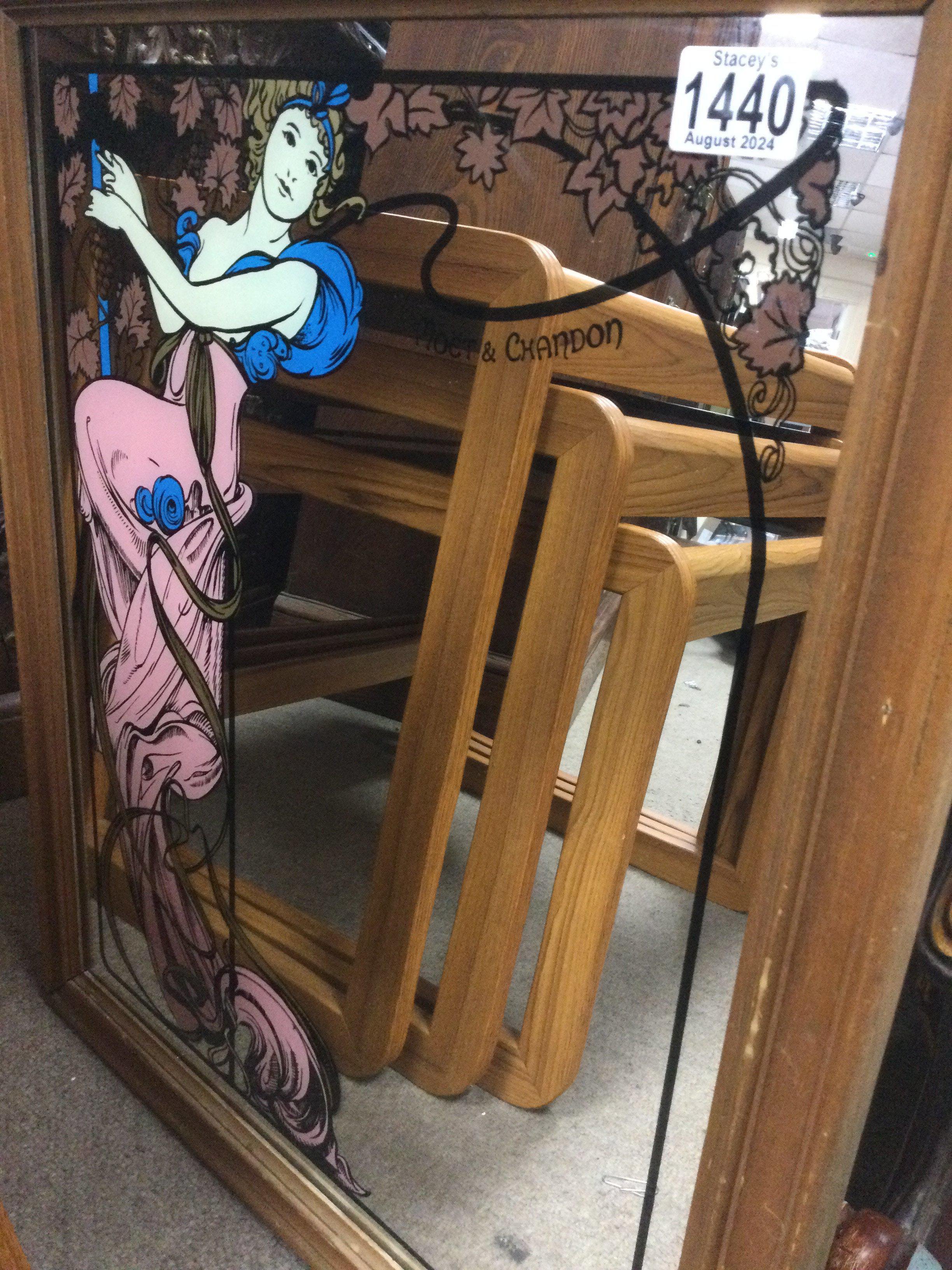 A framed wall mirror Moet Chandon with Art nouveau influence. 50 x 60 cm .
