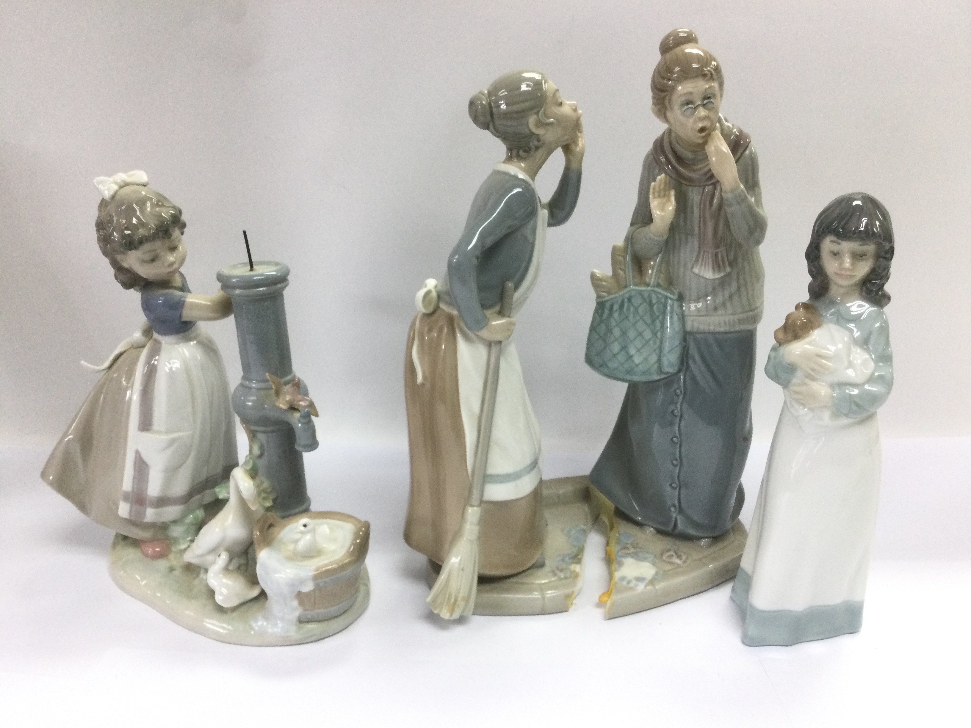 Two boxed Lladro figures and a boxed Nao figure, some damages. Shipping category D.