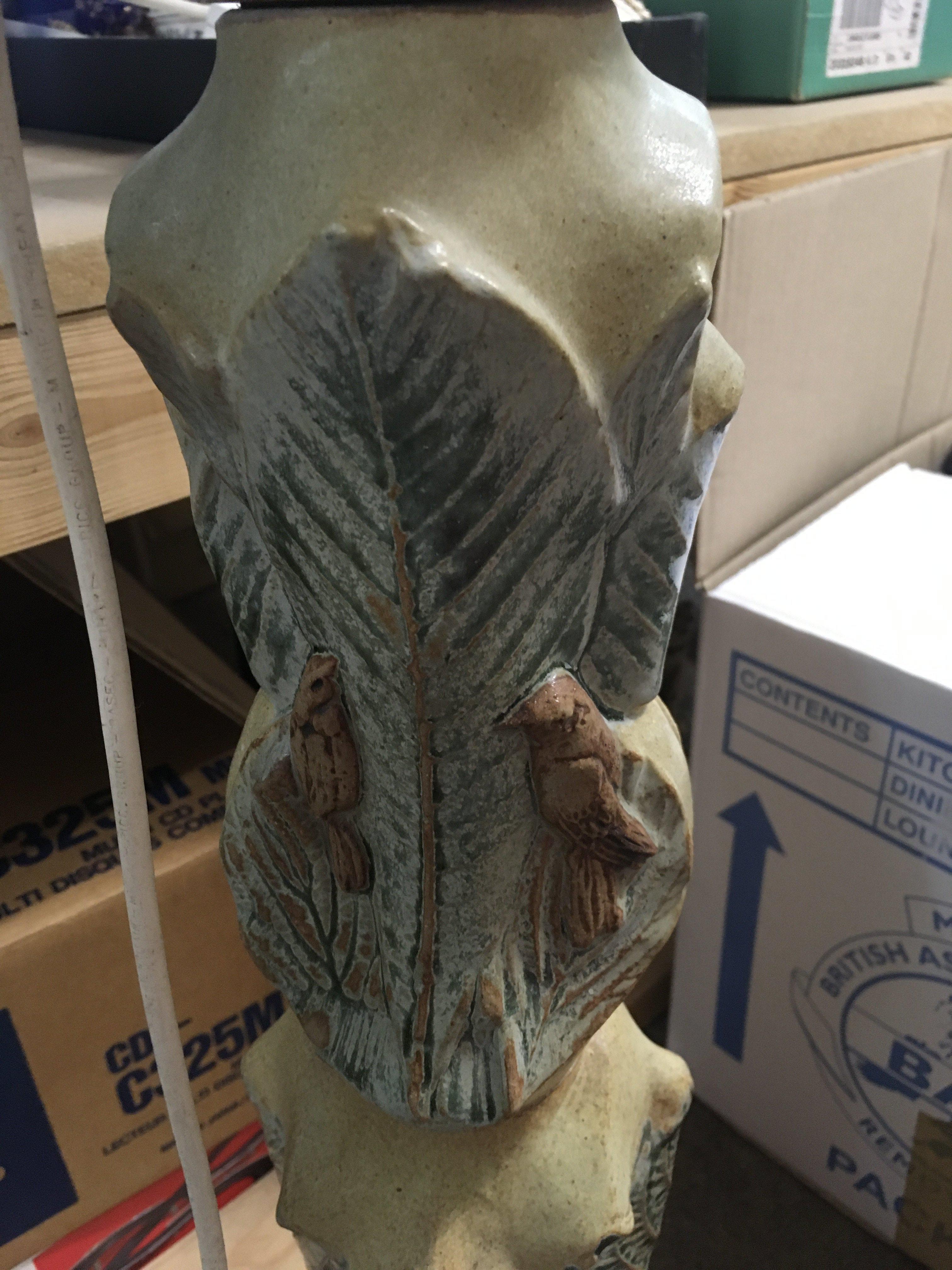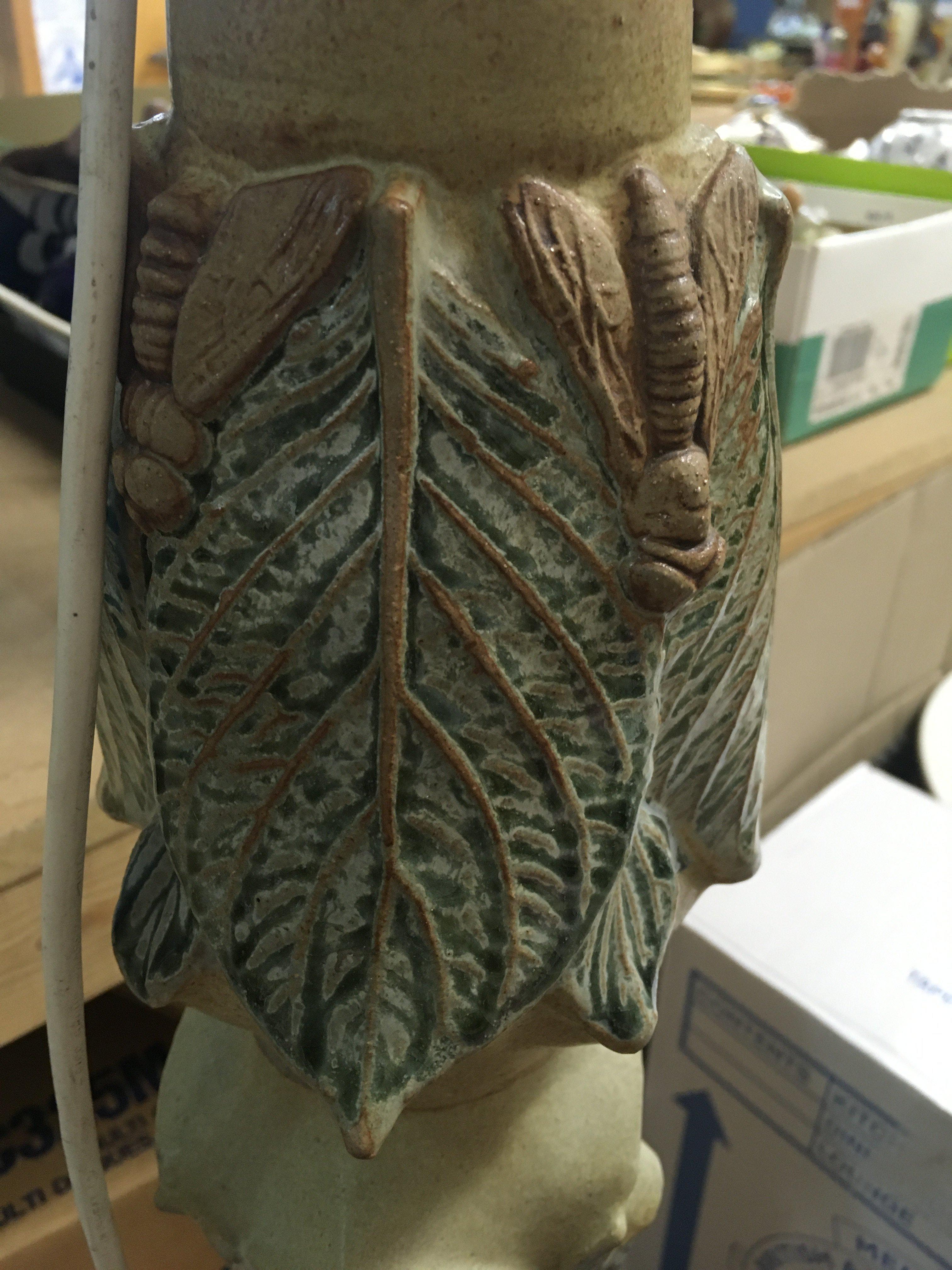 A Bernard Rooke lamp base with raised dragon flys . 100 cm .