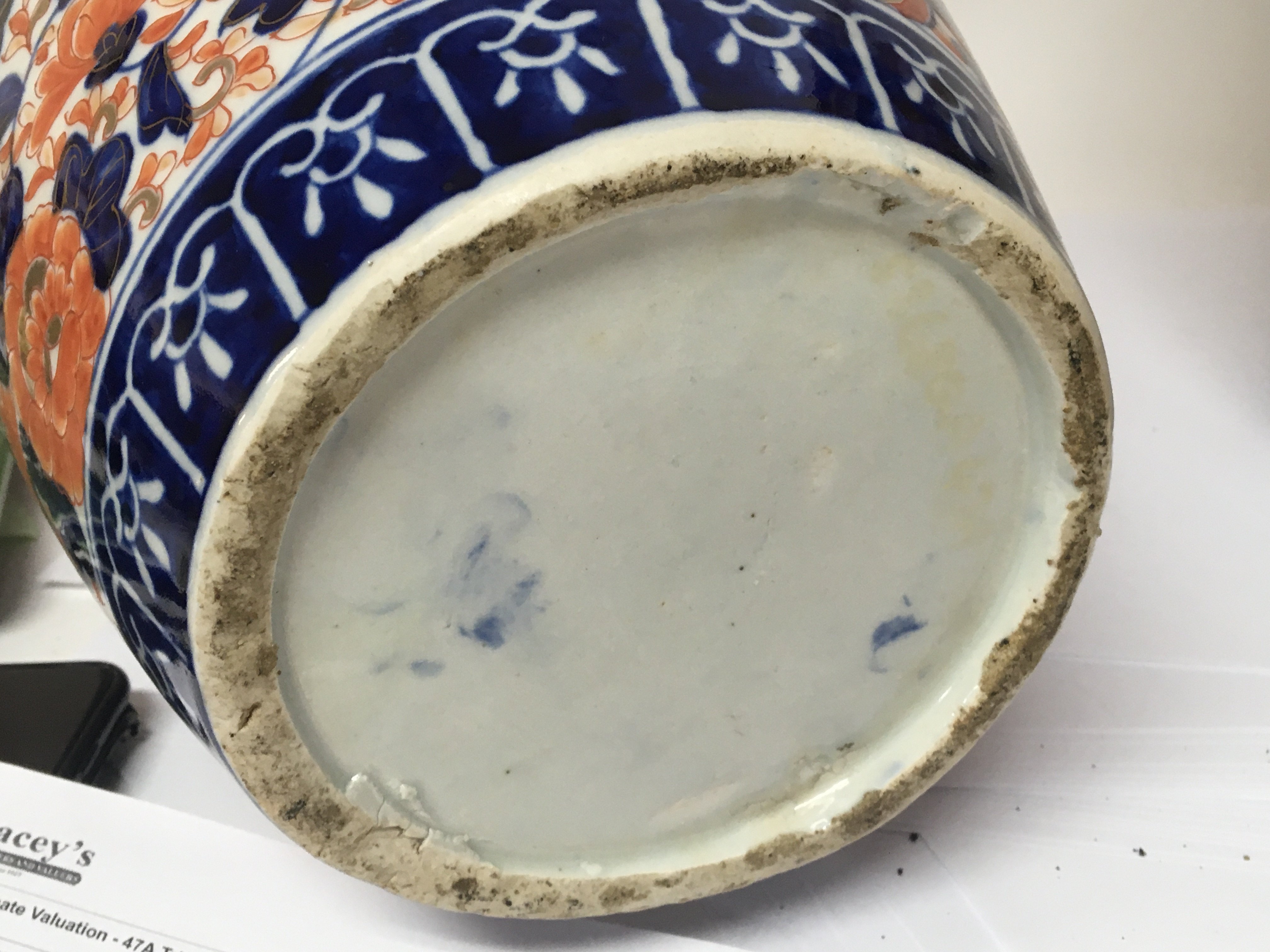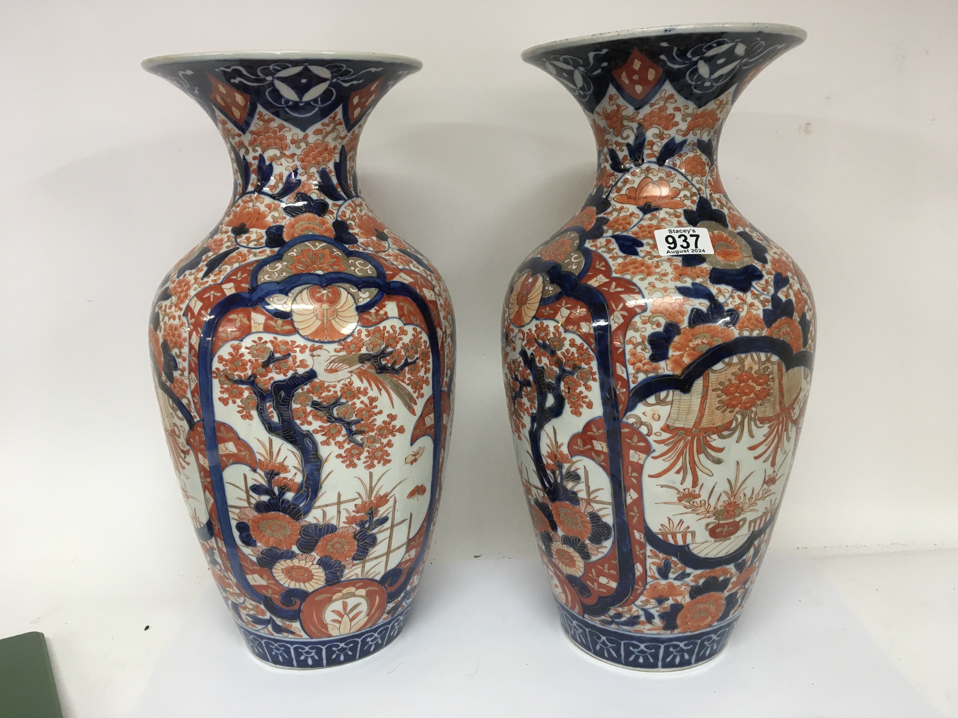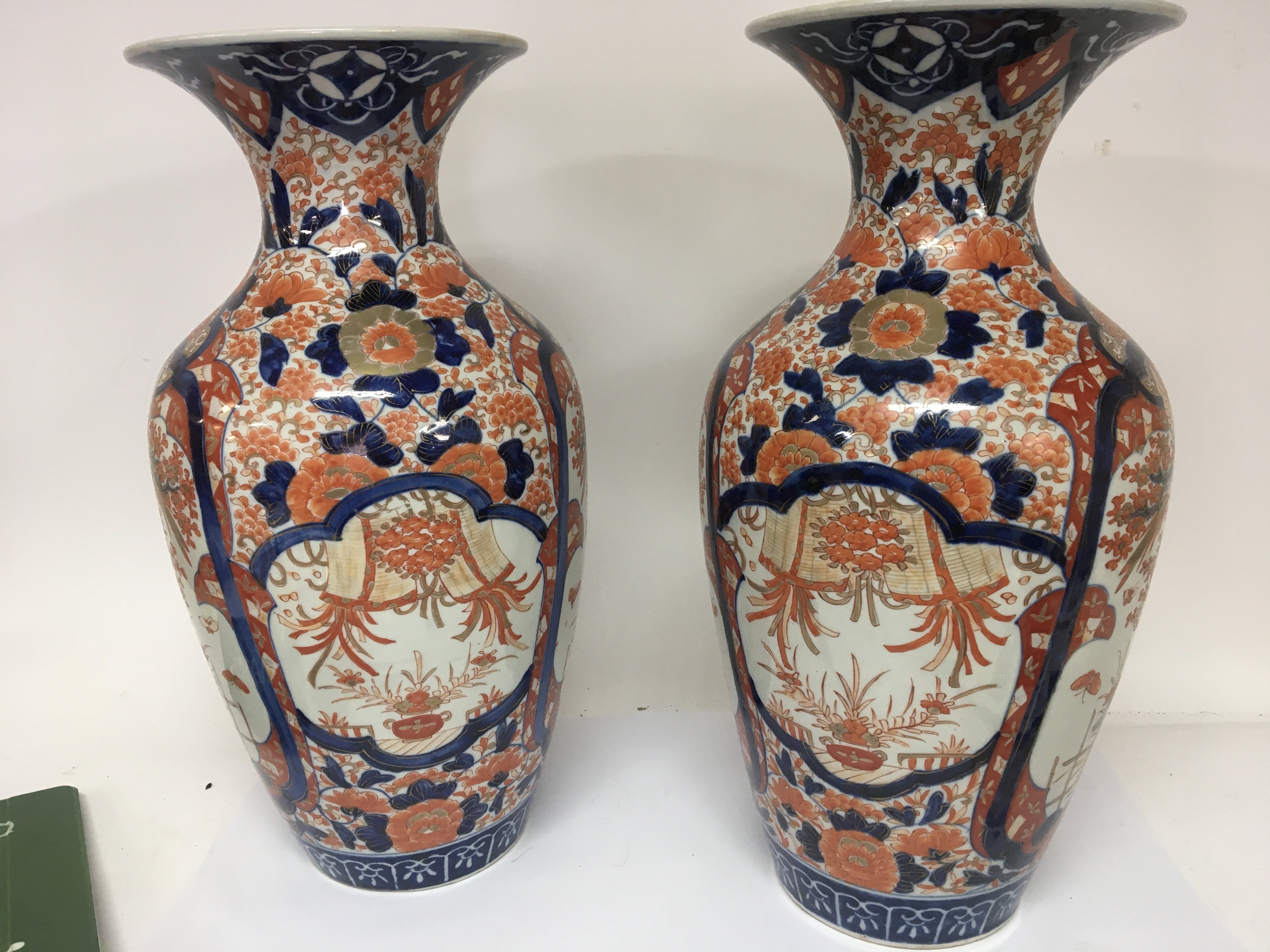 A pair of quality large late 19th Century Japanese Imari vases with floral pattern and colours of iron red and deep blue. Vase Height 50cm no obvious damage or restoration.