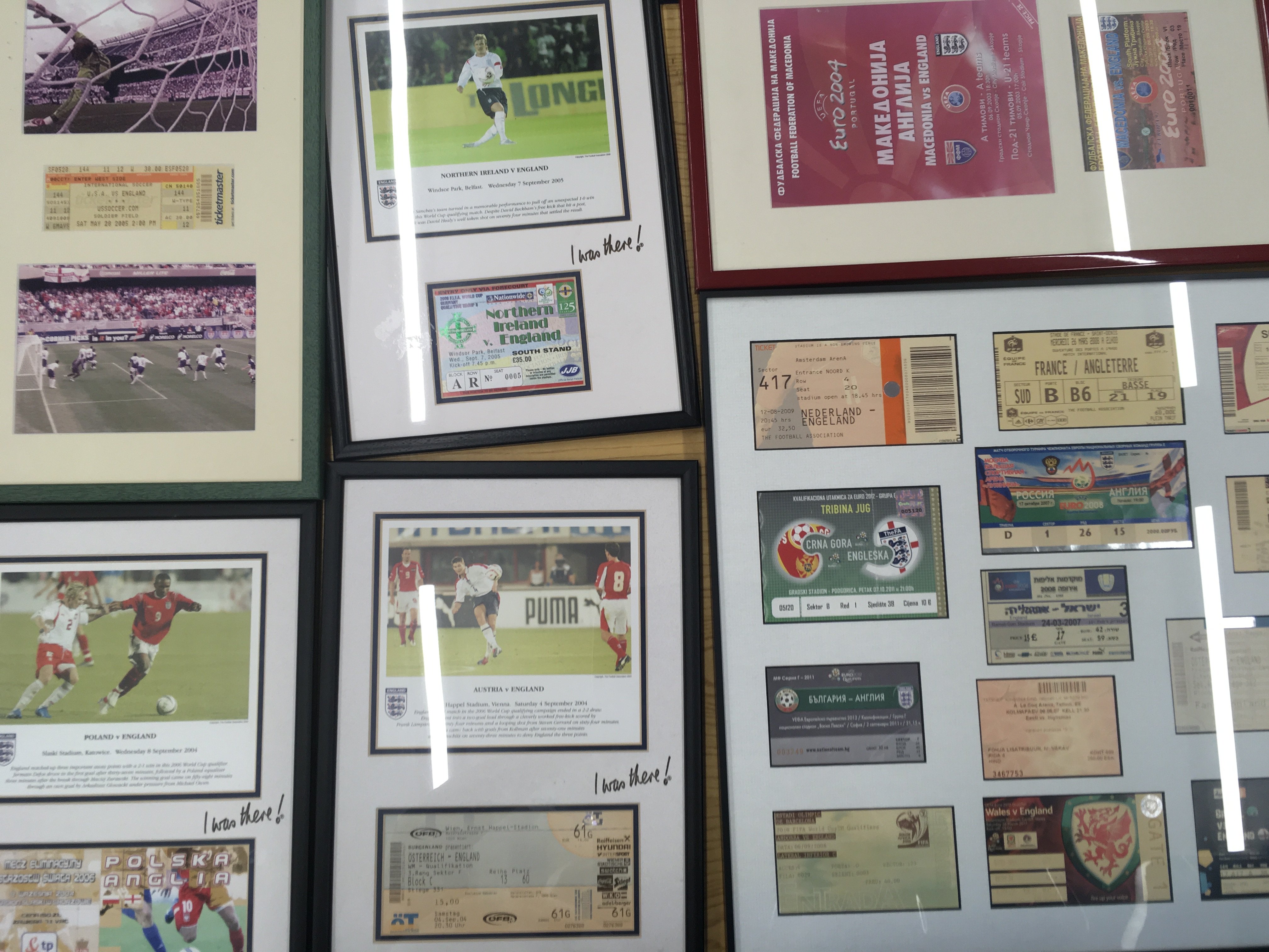 England Away Framed Football Tickets: From the I Was There series where you sent your ticket back to the FA sanctioned company who framed your ticket with a picture of the match. Some hard to obtain tickets. (31)