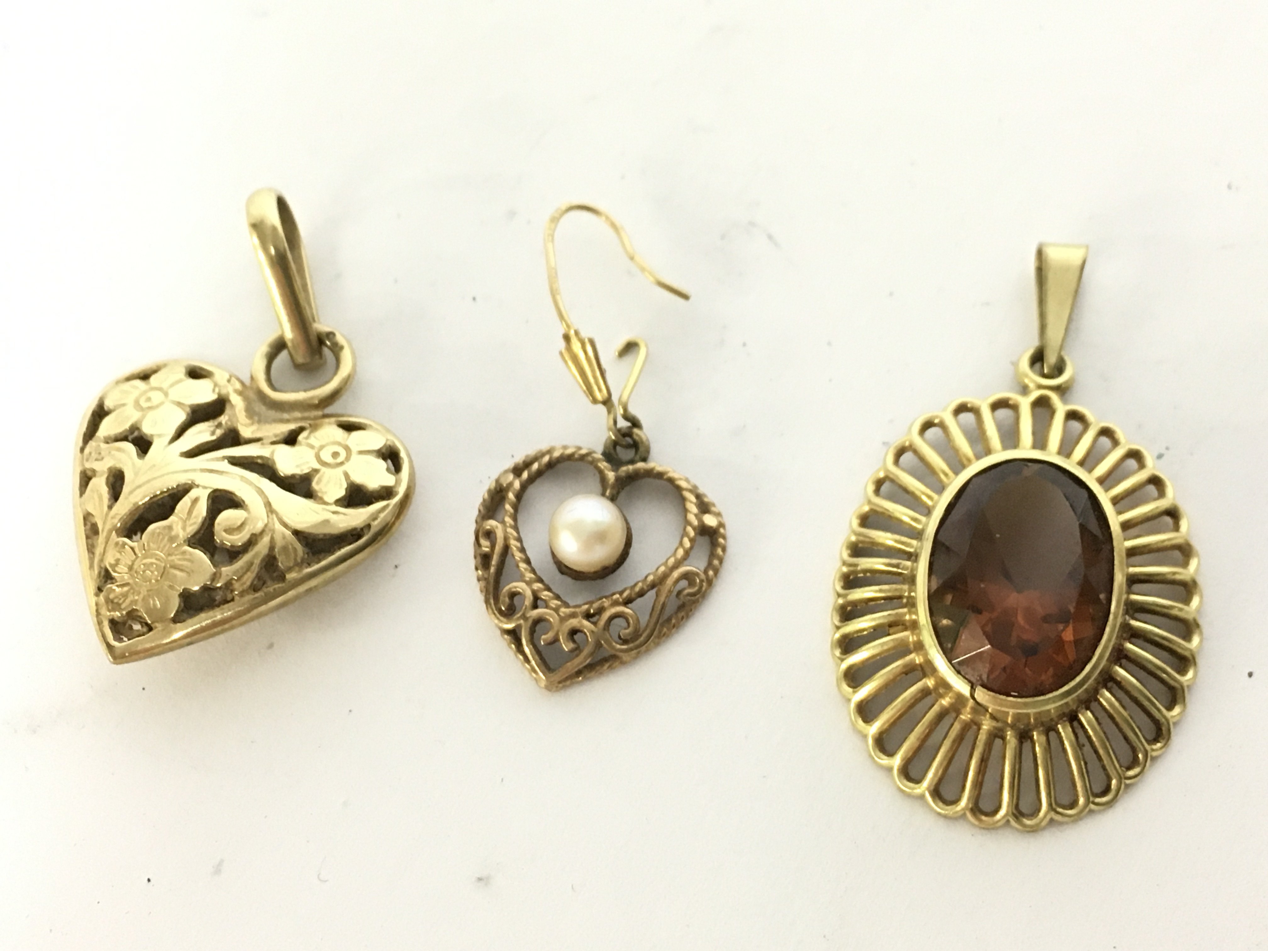 A collection of 9 carat gold pendants, total weight 7.6g. Postage category A