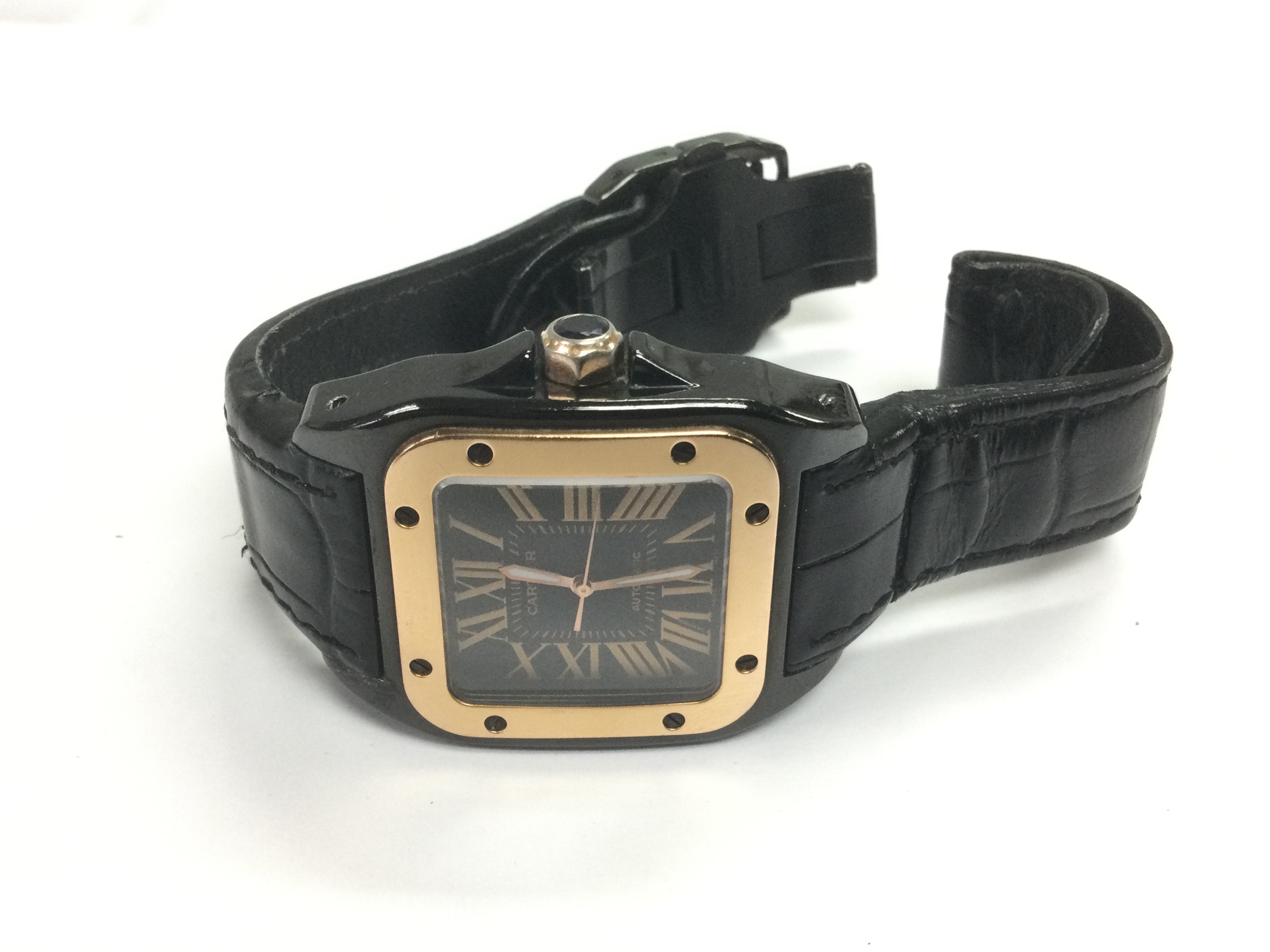 A Cartier 2878 33mm watch in black with a rose gold bezel. Shipping category B.