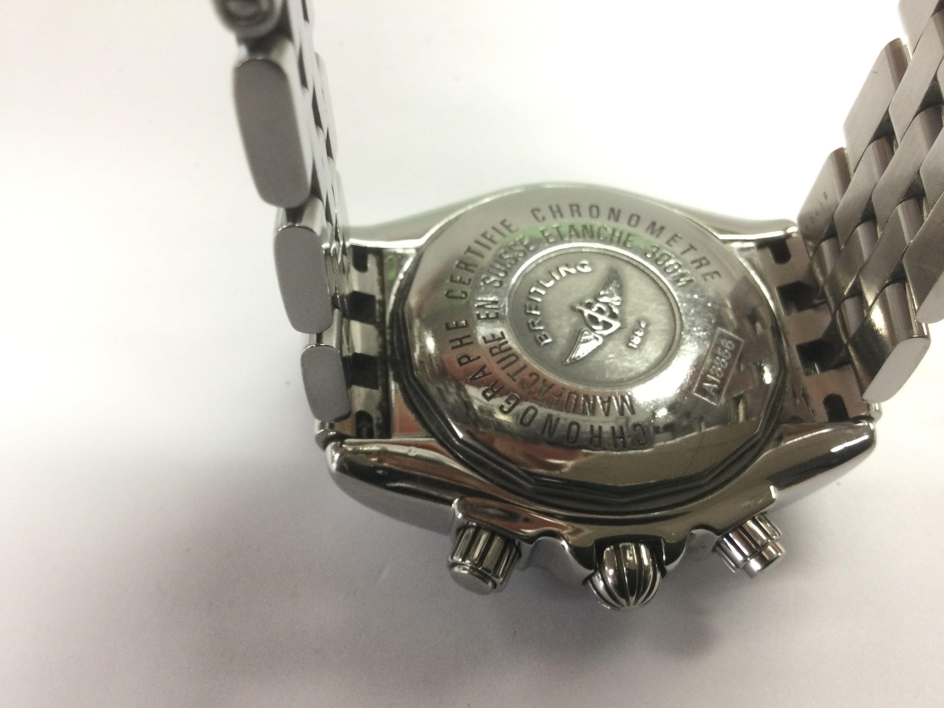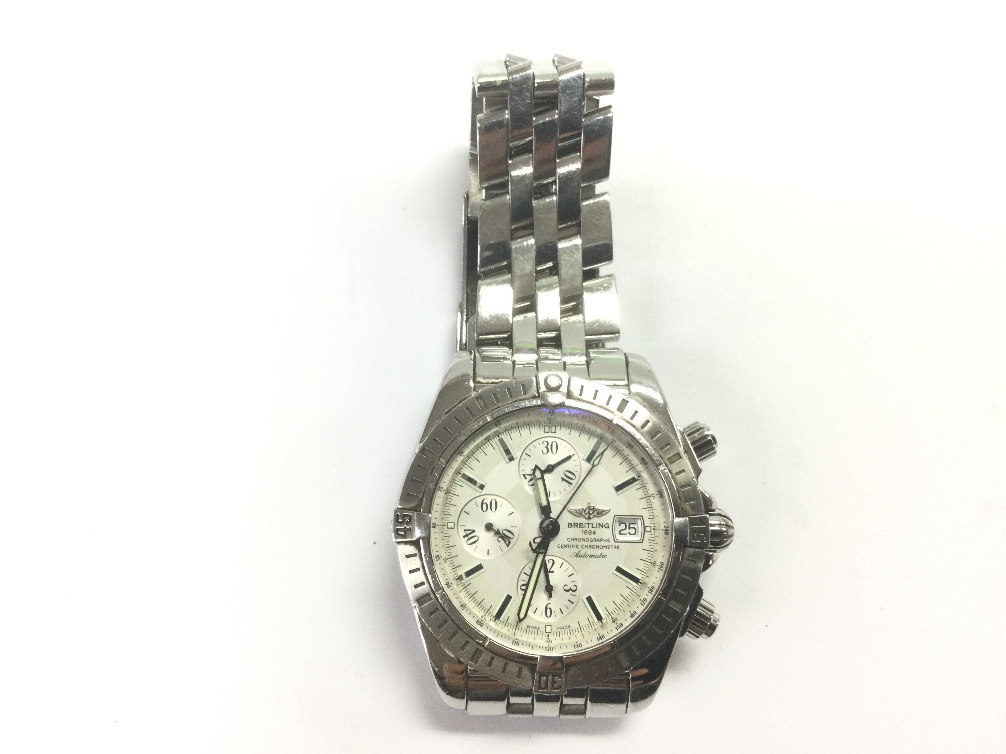 A Breitling A13358 Chronograph watch with champagne dial, date aperture and three subsidiary dials. Shipping category B.