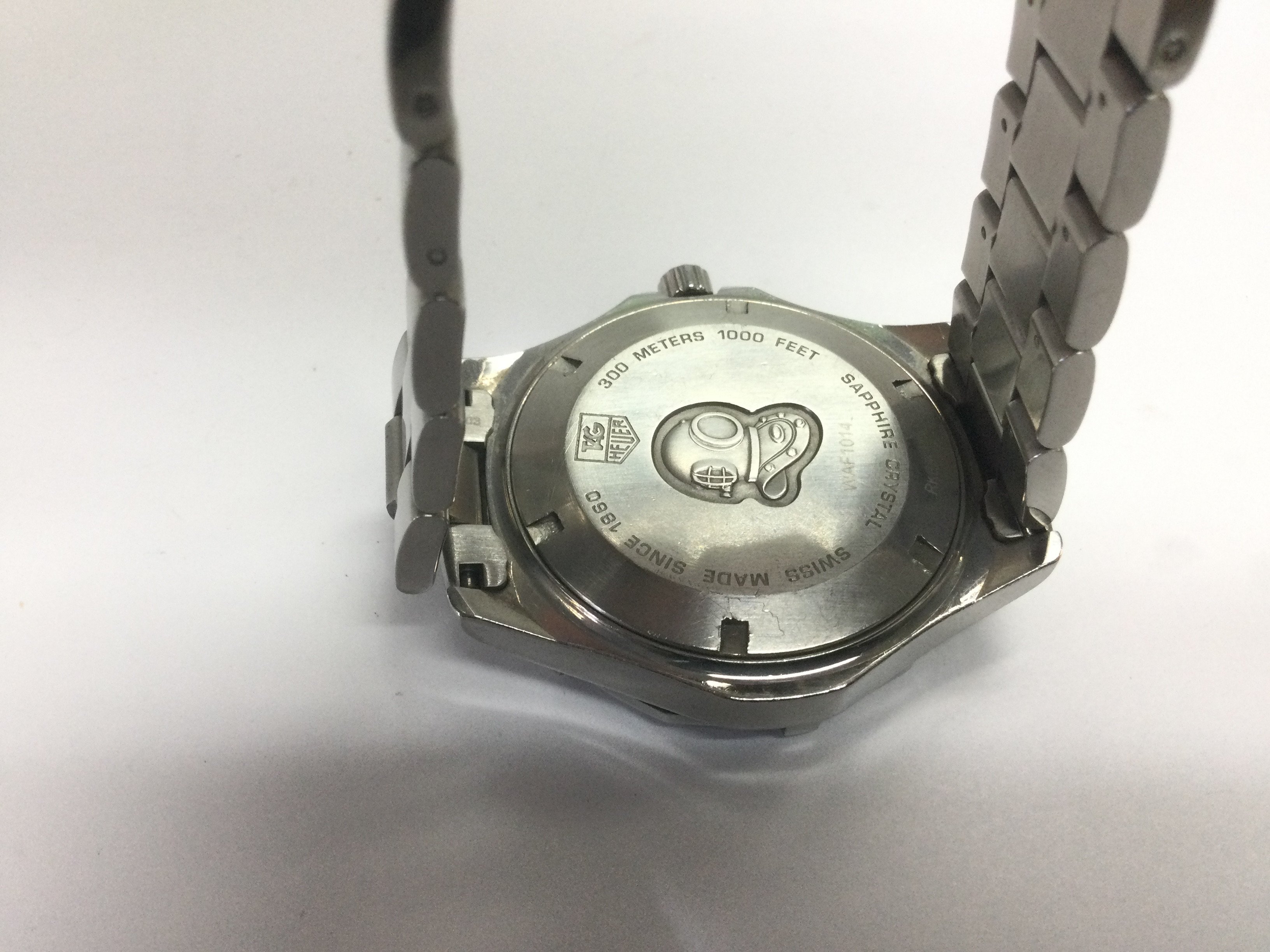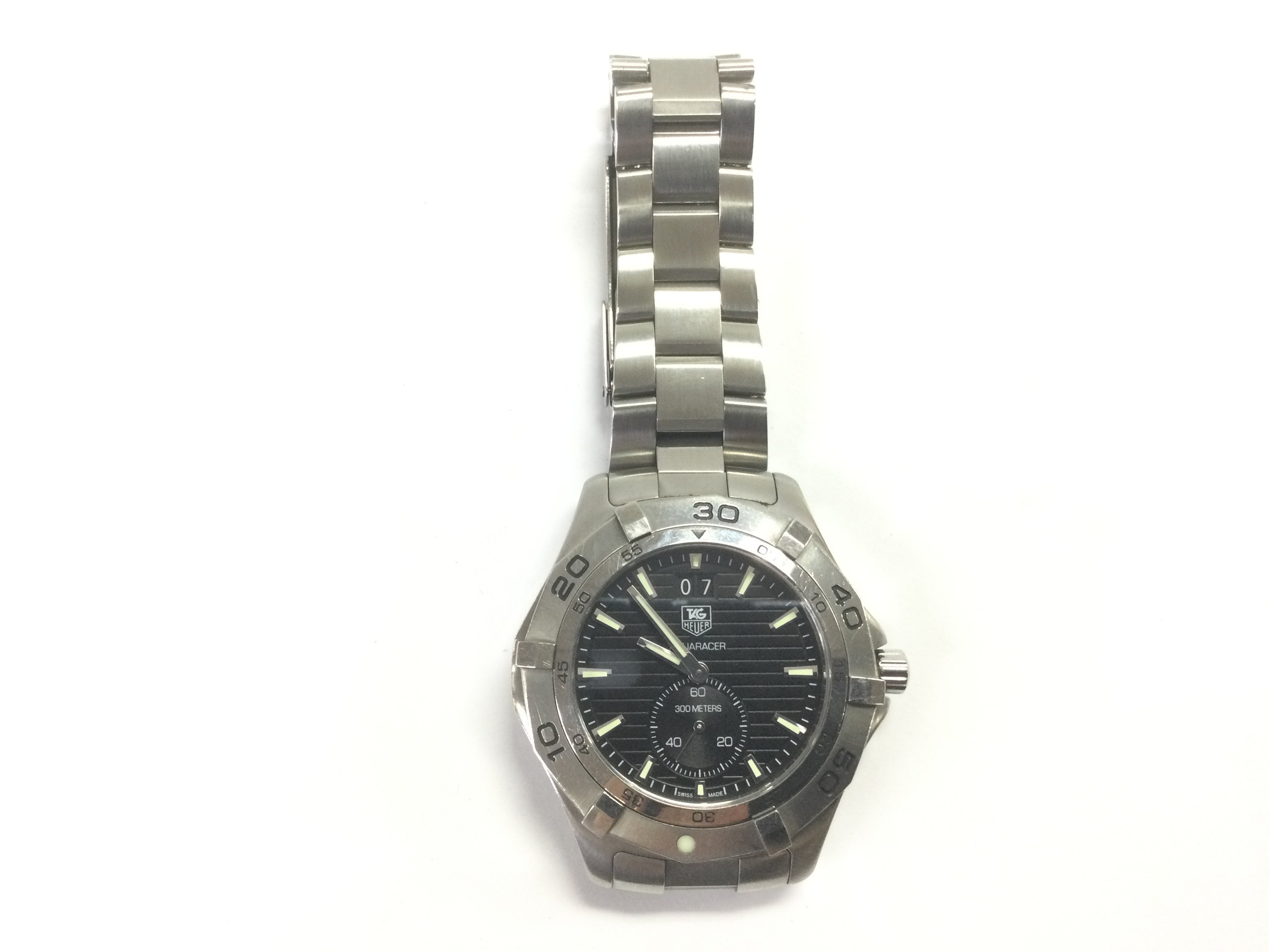 A Tag Heuer WAF1014 Aquaracer watch with black dial, baton numerals and subsidiary dial. Shipping category B.