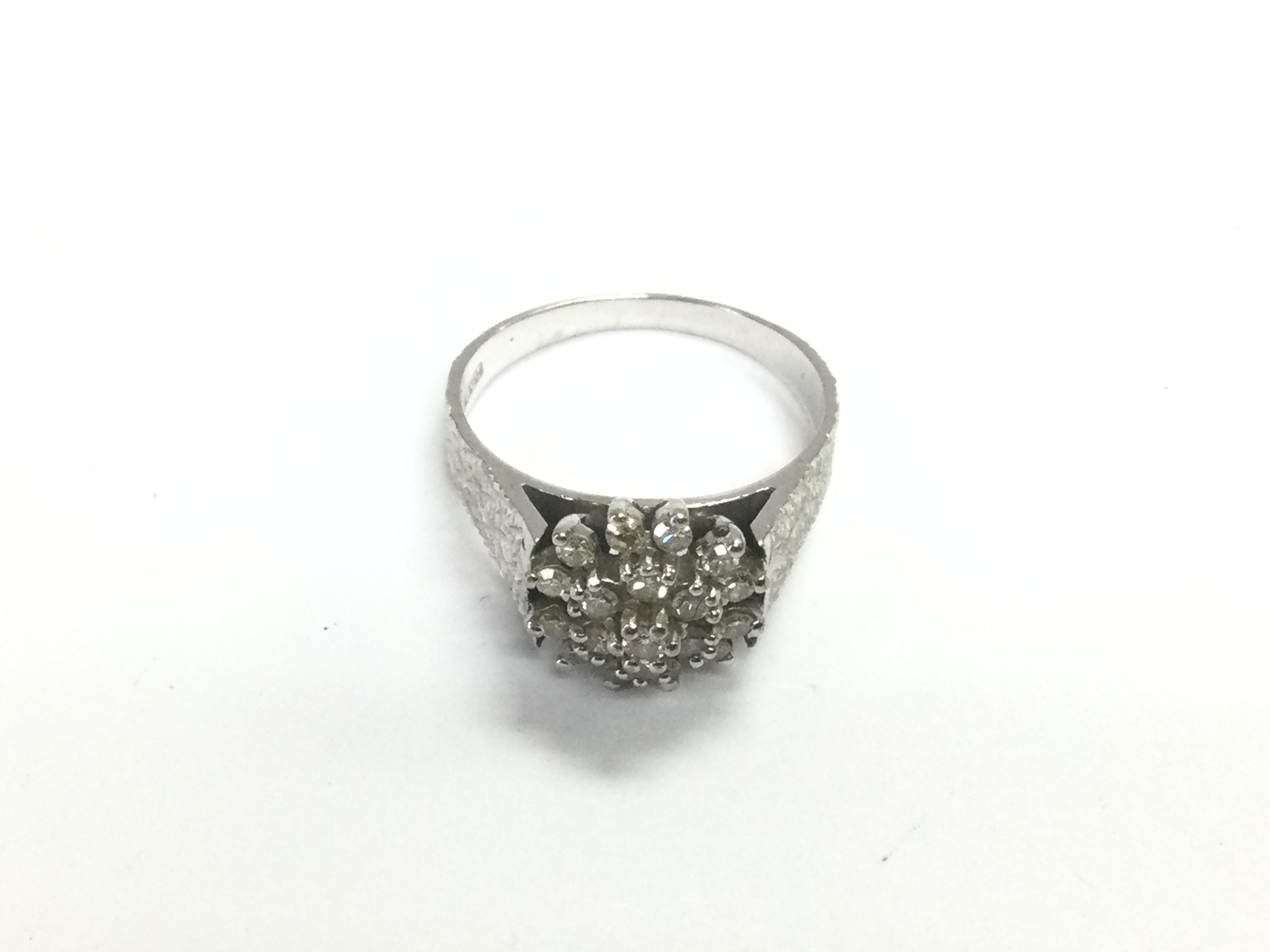 An 18ct white gold cluster diamond ring, approx 5.3g. Shipping category A.