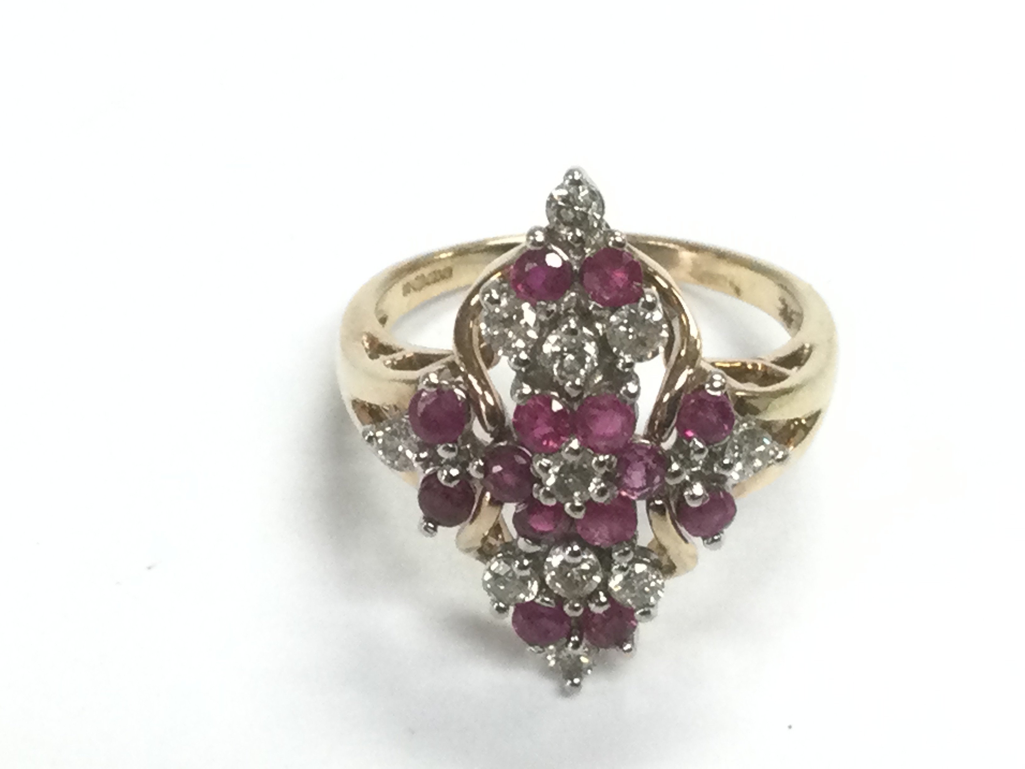 A 9ct gold diamond and ruby cluster ring, approx 3.9g. Shipping category A.