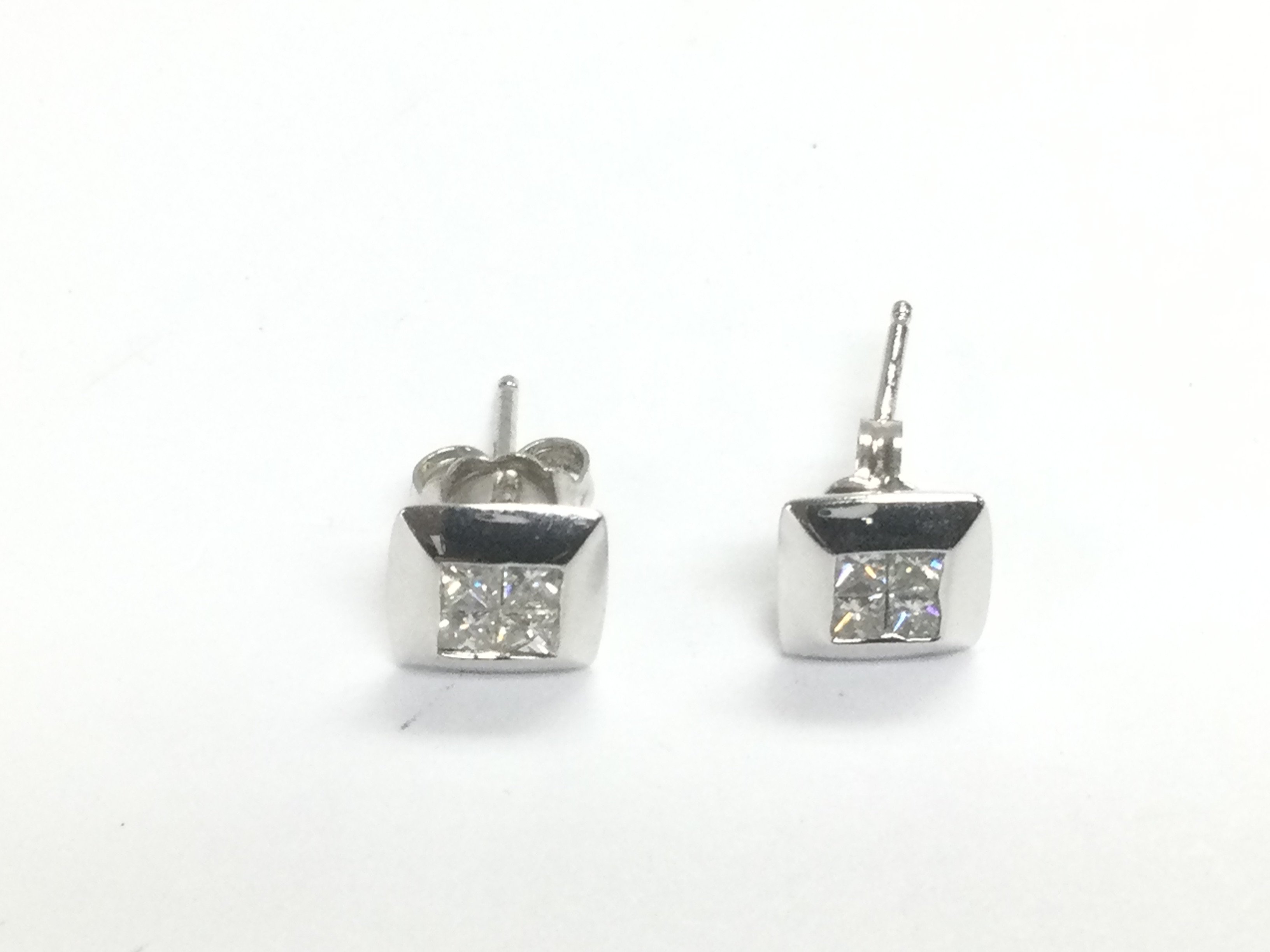A pair of 18ct white gold diamond stud earrings, approx 2.8g. Shipping category A.