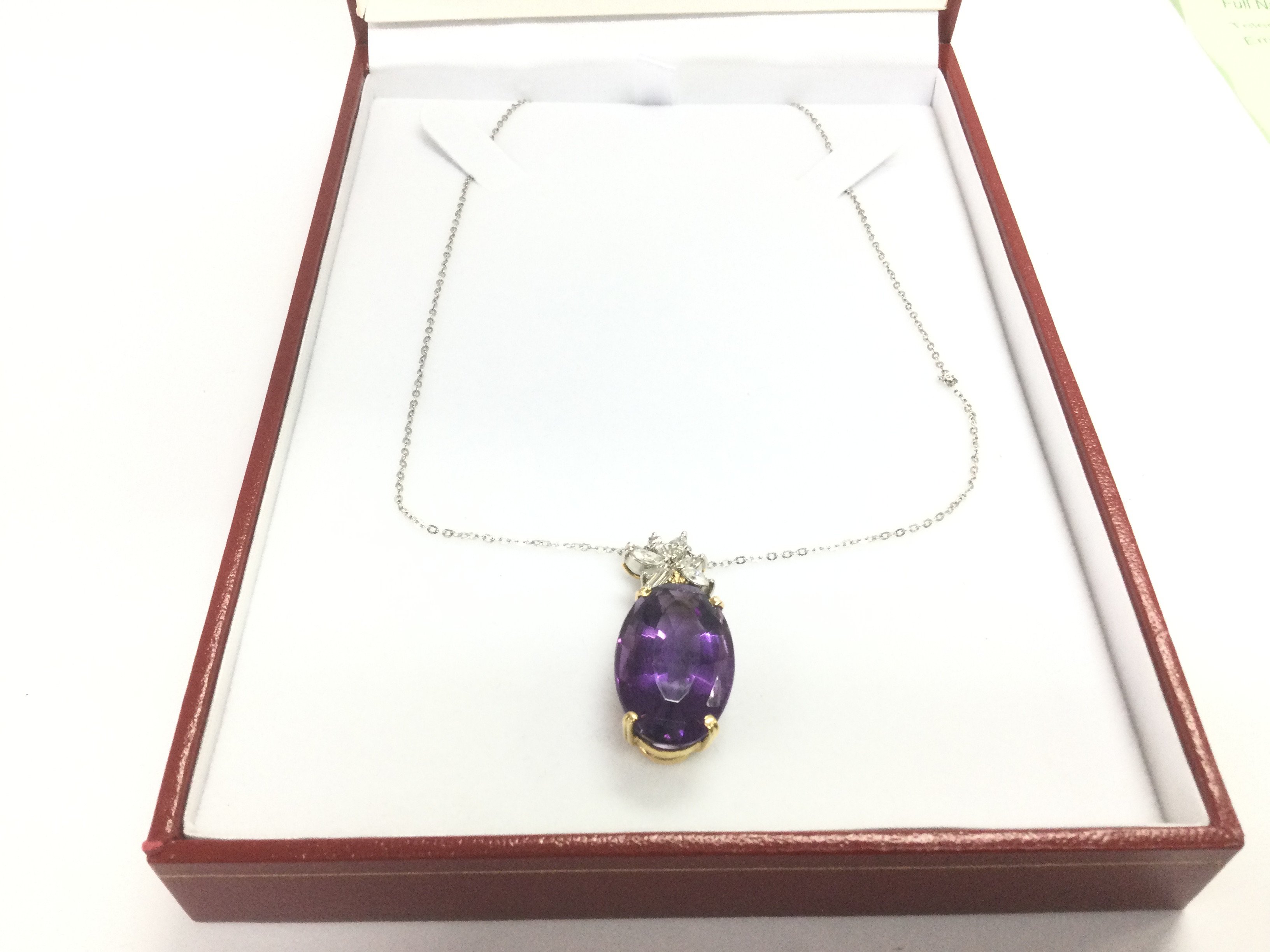 An 18ct gold, amethyst and diamond pendant, approx 7.9g. Shipping category A.