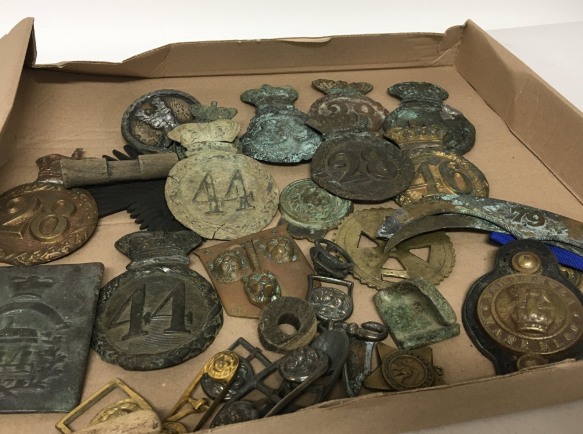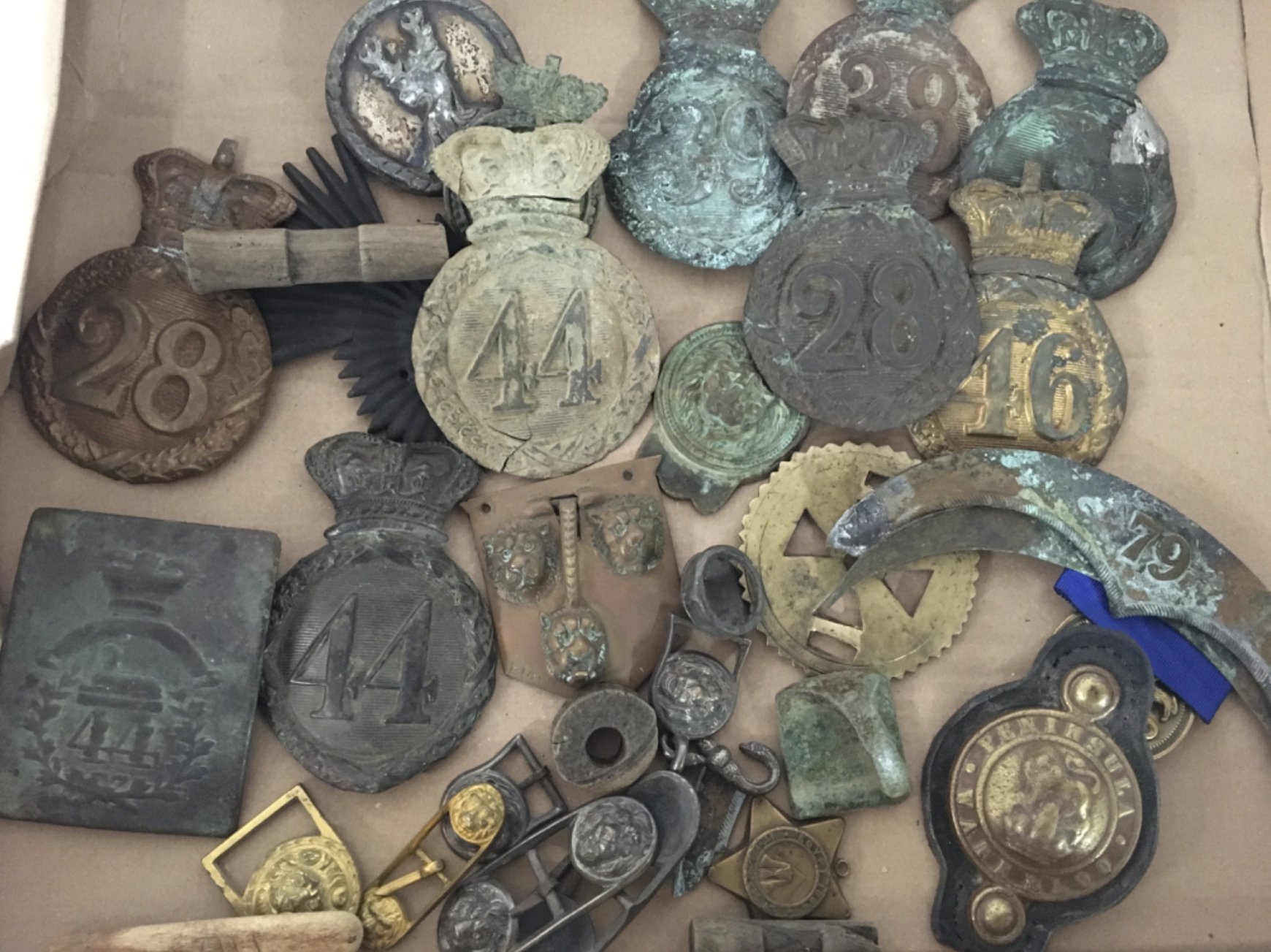 WITHDRAWN - A collection of original 19th Century Military Shako helmet plates and other related oddments.
