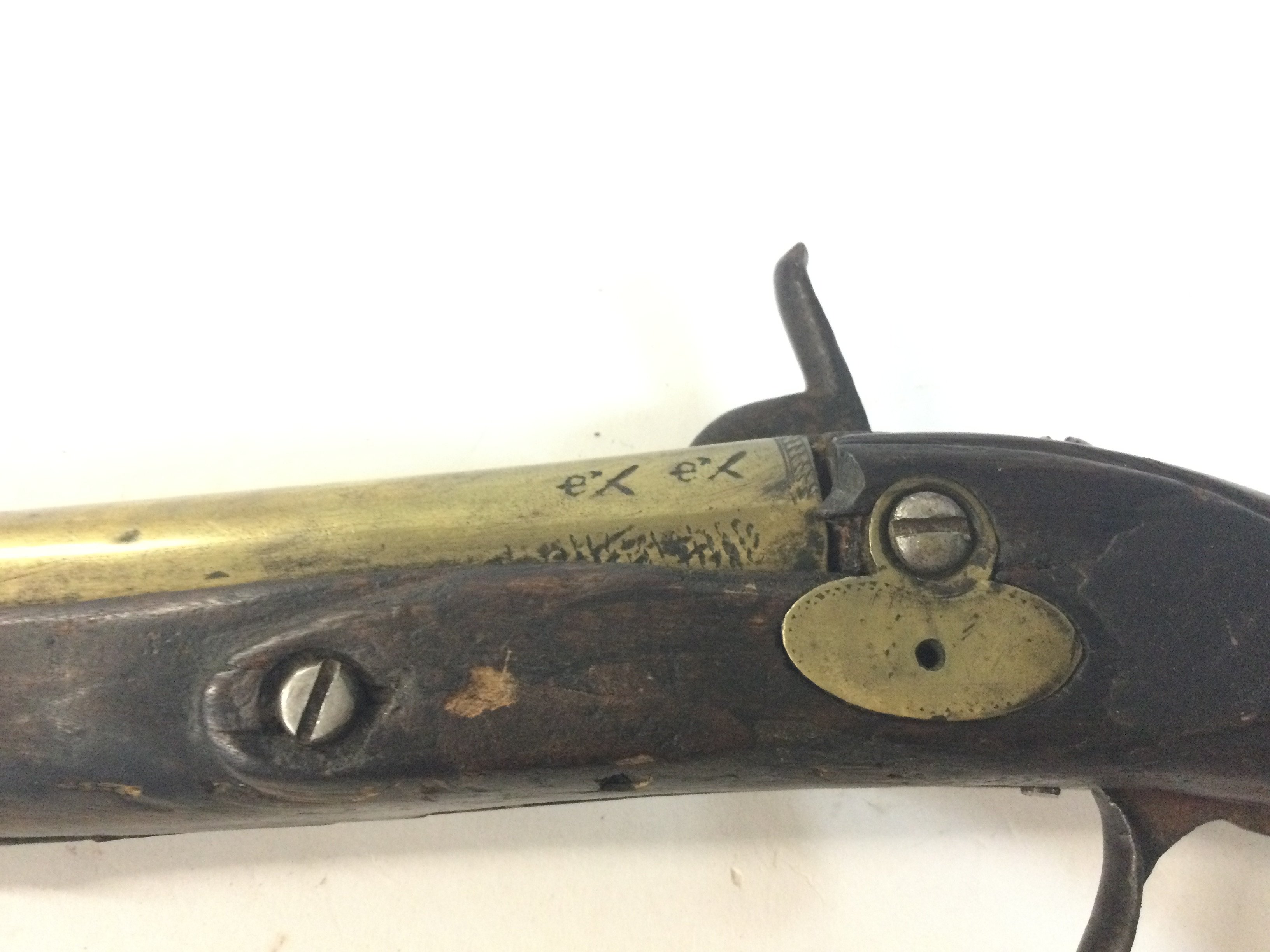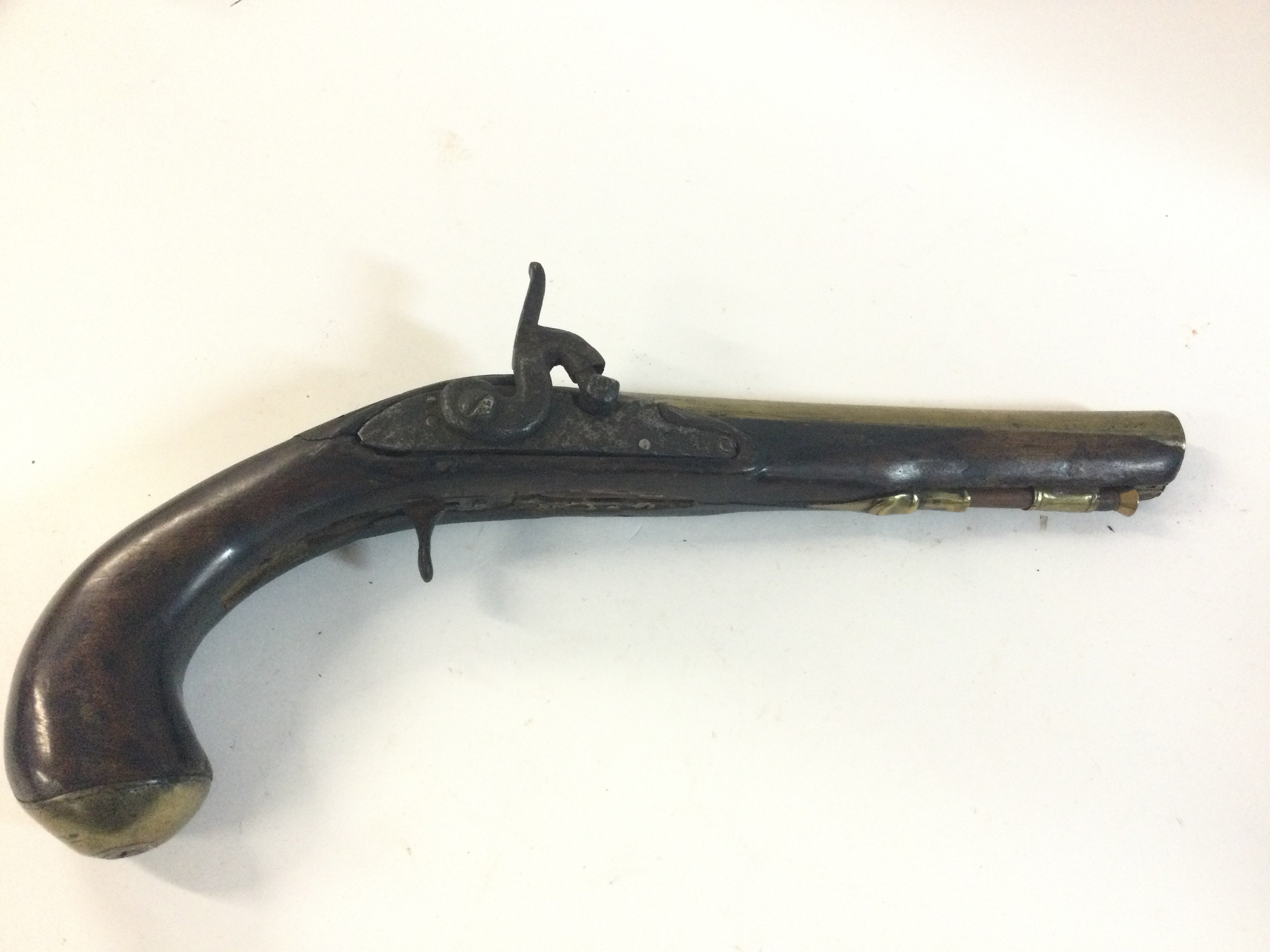 A French flintlock brass barrel percussion pistol.