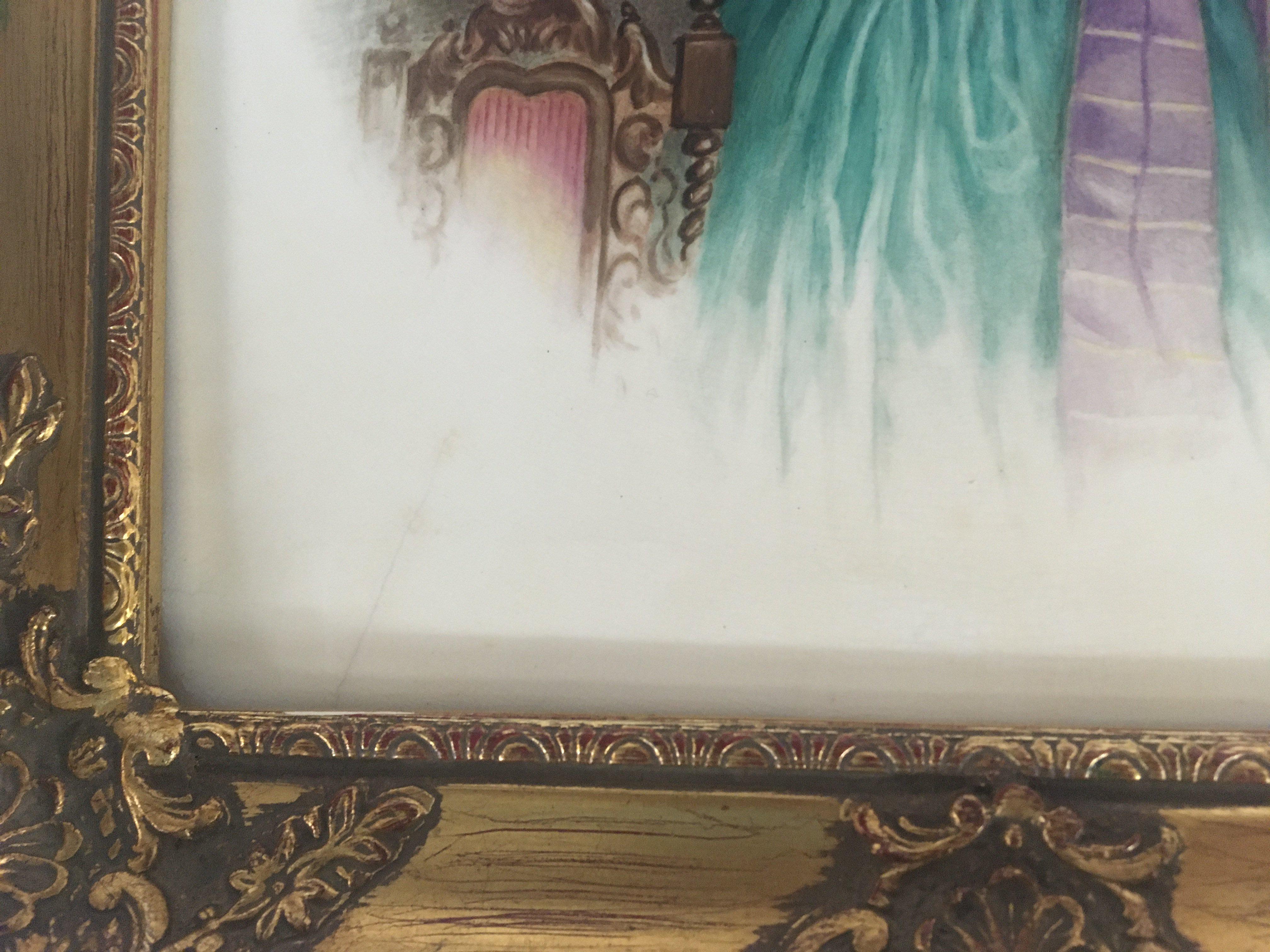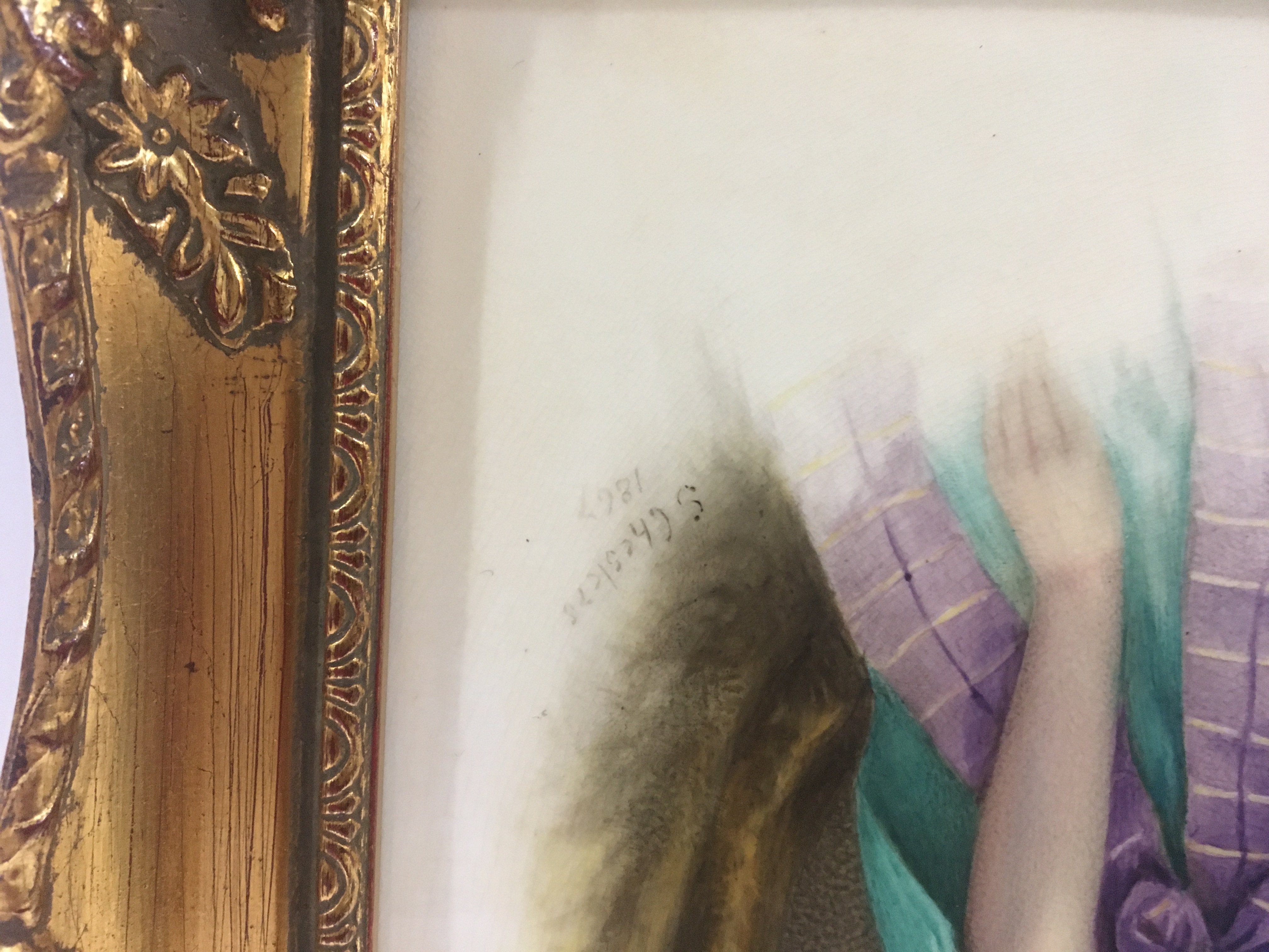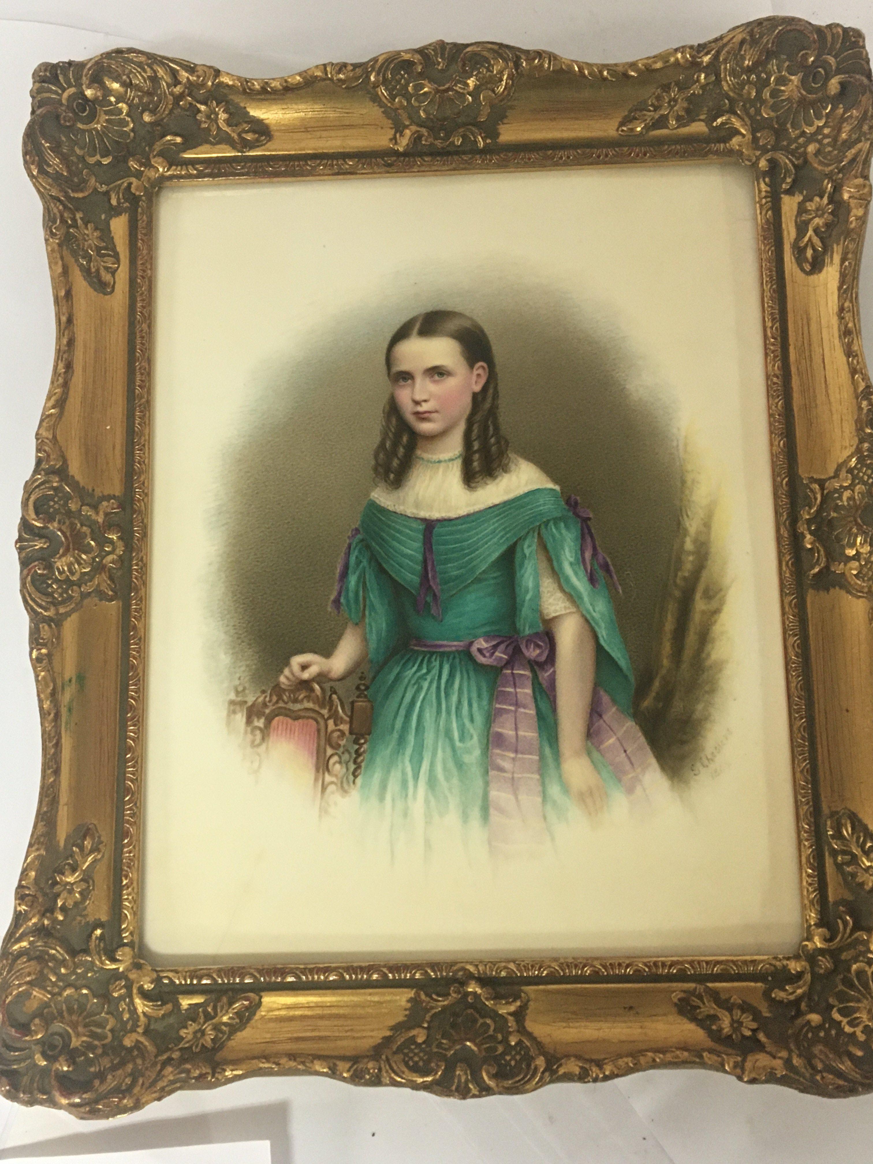 A hand painted Victorian porcelain plaque depicting a young girl signed by the artist and dated 1867. 31x26cm