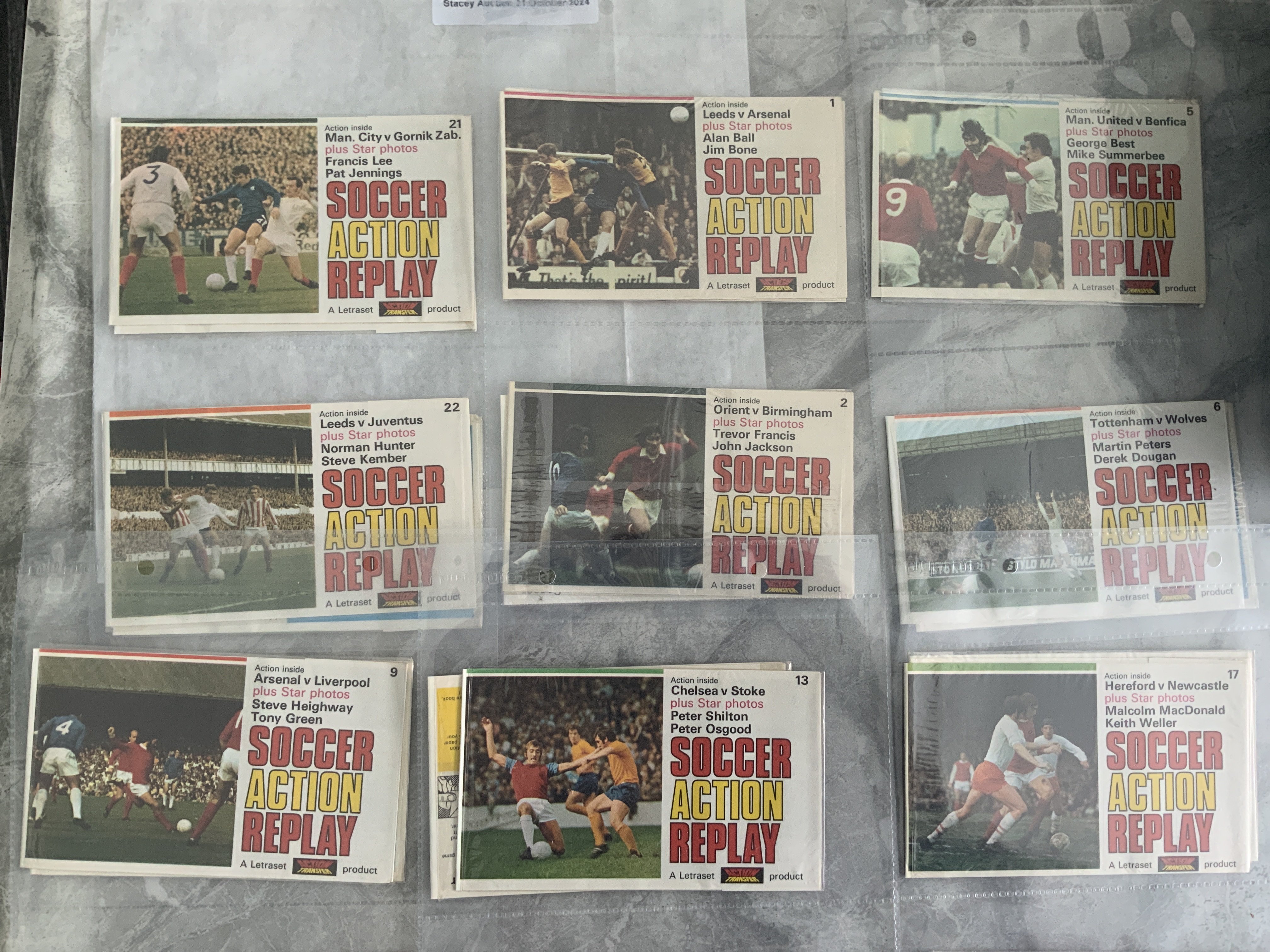 Letraset Action Transfers Complete Unopened Set: Soccer Action Replay rate set from the early 70 of all 24 numbered packs which are unopened. (24)