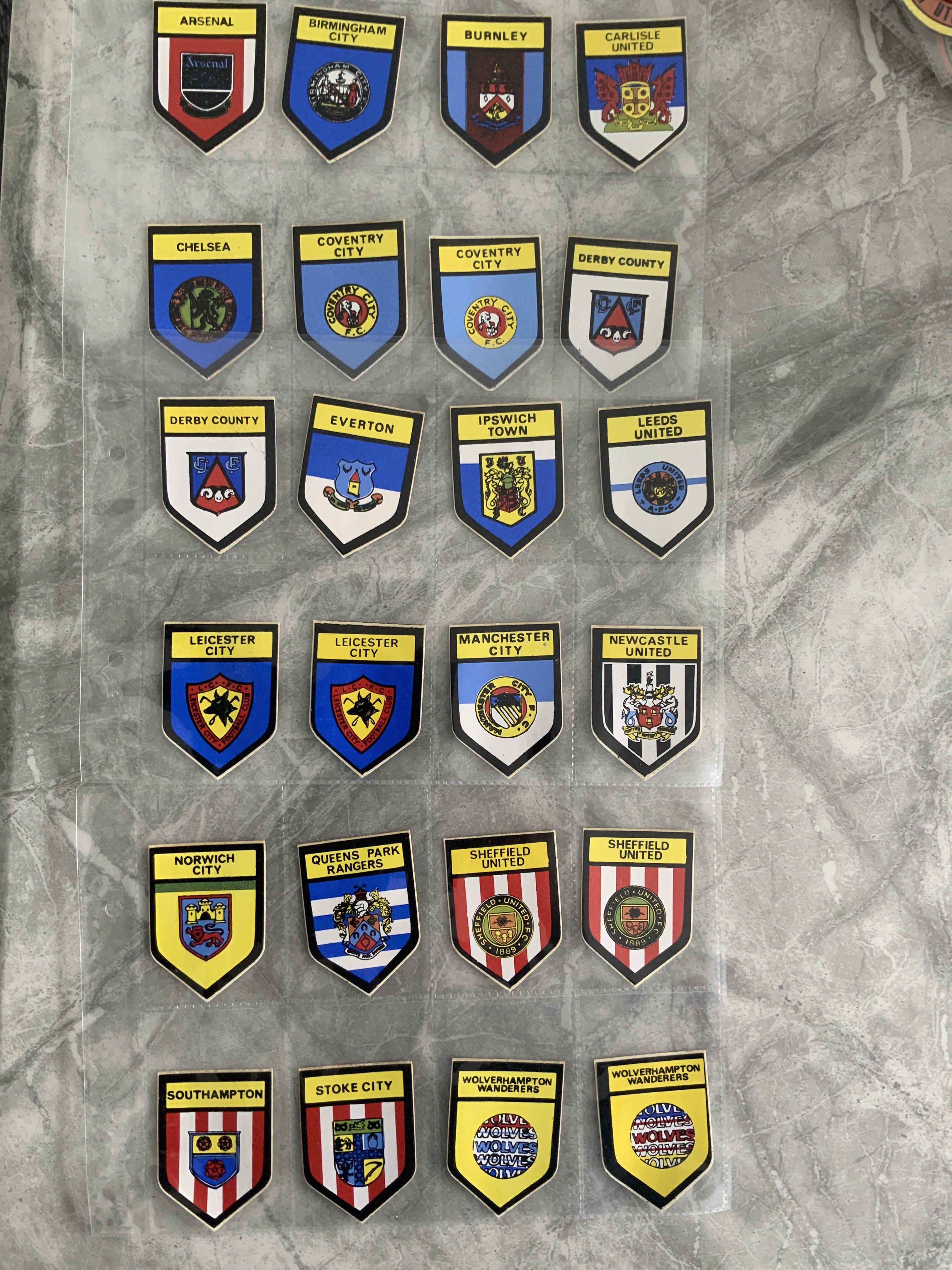 BABS Football Club Badge Cards: Includes Manchester City Wolves Chelsea Leeds Ipswich and Arsenal. Even though there are more than one of a few clubs they always have slight differences. Excellent. (24)