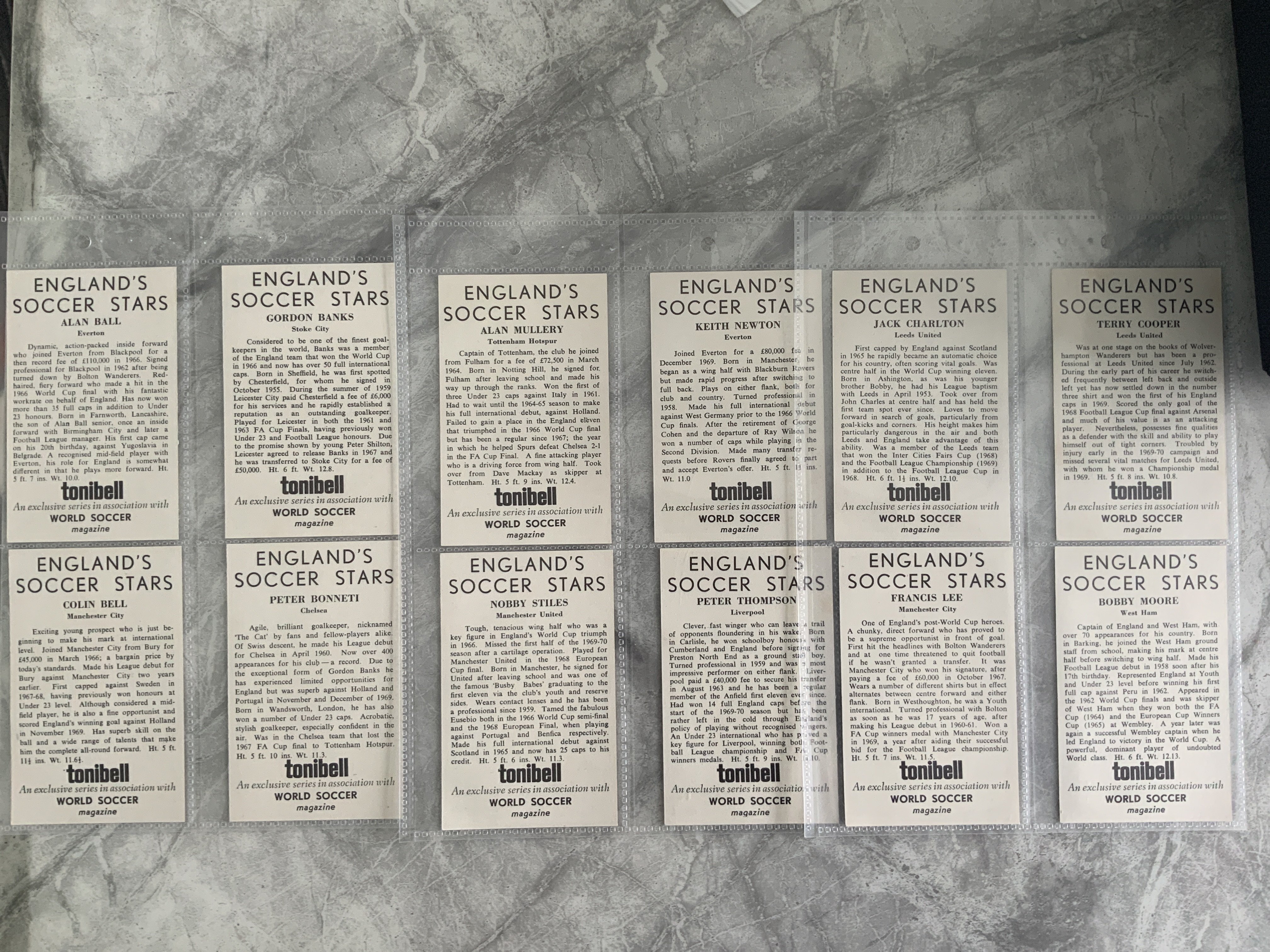 Tonibell England Soccer Stats Complete Football Card Set: Excellent condition produced in association with World Soccer. Includes Moore Ball Bonneti Banks and Lee all in their club colours. (12)